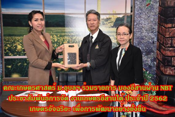 ดร.นรินทร บุญพราหมณ์ คณบดีคณะเกษตรศาสตร์ และ ผศ.ดร. กาญจนา พยุหะ รองคณบดีฝ่ายวิจัยและวิเทศสัมพันธ์ ร่วมรายการ “มองอีสานผ่าน NBT” สถานีโทรทัศน์ช่อง NBT สำนักประชาสัมพันธ์เขต 2 อ.เมือง จังหวัดอุบลราชธานี เพื่อประชาสัมพันธ์การจัดงานเกษตรอีสานใต้ 2562 15 ภาพ