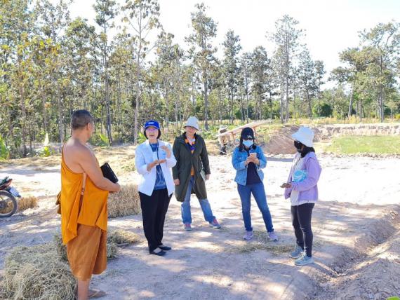 รศ.ดร.อริยาภรณ์ พงษ์รัตน์ รองอธิการบดีมหาวิทยาลัยอุบลราชธานี และคณาจารย์คณะเกษตรศาสตร์ ได้ออกมาสำรวจออกแบบพืชที่จะปลูกในแปลงโคกหนองนาวัดป่าศรีแสงธรรม โดยเป็นความร่วมมือระหว่างโรงเรียนศรีแสงธรรม มหาวิทยาลัยอุบลราชธานี และการไฟฟ้าฝ่ายผลิตแห่งประเทศไทย, 10 มกราคม 2564 4 ภาพ