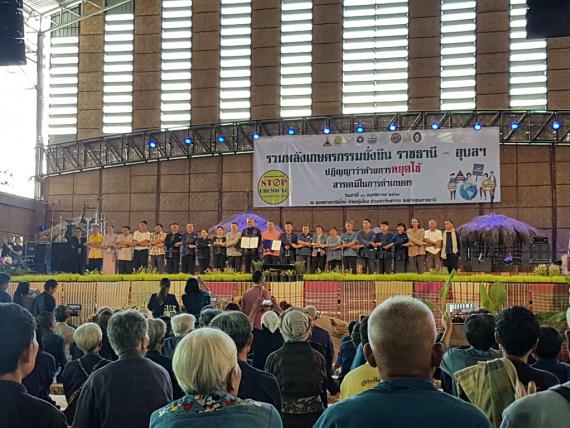 อธิการบดีมหาวิทยาลัยอุบลราชธานี ได้มอบหมาย ดร.นรินทร บุญพราหมณ์ คณบดีคณะเกษตรศาสตร์ พร้อมด้วยบุลากรและนักศึกษา ร่วมงานรวมพลังเกษตรกรรมยั่งยืน ราชธานี-อุบลฯ โดยมีรัฐมนตรีช่วยว่าการกระทรวงเกษตรและสหกรณ์ นายวิวัฒน์ ศิลยกำธร กล่าวเปิดงานและปาฐกถาพิเศษ เรื่อง ผลการใช้สารเคมีอันตรายต่อคนไทย ณ ชุมชนราชธานีอโศก ต.บุ่งไหม อ.วารินชำราบ จ.อุบลราชธานี, 10 พฤศจิกายน 2561 8 ภาพ
