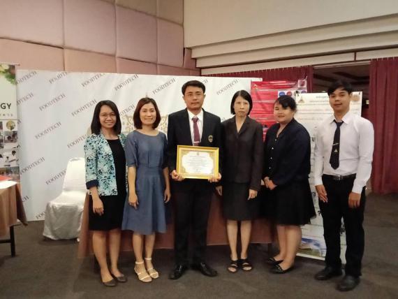 นส. พัชรี มะลิลา นักศึกษา ปริญญาเอก สาขาวิชาเทคโนโลยีการอาหาร ได้รับรางวัลชมเชย ภาคบรรยาย ในการประชุมวิชาการระดับชาติ ครั้งที่ 9 และ ผู้ช่วยศาสตราจารย์ ดร. วีรเวทย์ อุทโธ สาขาวิชาอุตสาหกรรมเกษตร ได้รับรางวัลที่ 2 ภาคบรรยาย (Oral presentation) ในการประชุมวิชาการนานาชาติ ครั้งที่ 1 The 1st Rajamangala Surin International Conference 2018 การประชุมทั้งสองจัด ณ มหาวิทยาลัยเทคโนโลยีราชมงคลอีสาน วิทยาเขตสุรินทร์ วันที่ 29-31 สิงหาคม 2561 4 ภาพ