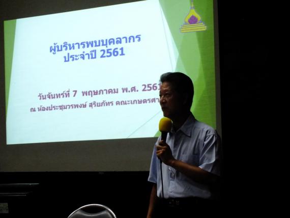 ผู้บริหารพบบุคลากร โดย ดร.นรินทร บุญพราหมณ์ คณบดี และ ผศ.พิทักษ์ สิงห์ทองลา หัวหน้าสำนักงานไร่ฝึกฯ พบปะบุคลากรสำนักงานไร่ฝึกฯ ณ ห้องประชุมวรพงษ์ สุริยภัทร คณะเกษตรศาสตร์ มหาวิทยาลัยอุบลราชธานี, 7 พฤษภาคม 2561 32 ภาพ