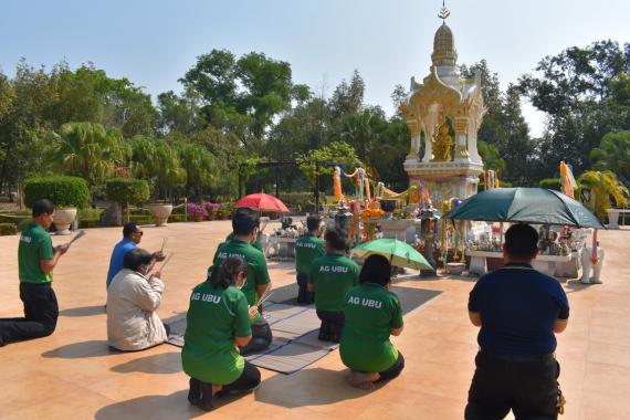 คณะเกษตรศาสตร์ นำโดย ดร.นรินทร บุญพราหมณ์ คณบดีคณะเกษตรศาสตร์ พร้อมด้วยบุคลากร เข้าสักการะองค์ท้าวพระพรหม, เจ้าที่ และศาลตา-ยาย หลังจากเสร็จสิ้นการจัดงานเกษตรอีสานใต้ เพื่อเป็นการไหว้ลาและขอบคุณที่ท่านได้ดูแลการจัดงานจนประสบความสำเร็จได้เป็นอย่างดี, 22 มีนาคม 2566 51 ภาพ