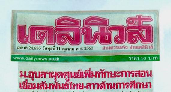 ม.อุบลฯ ผุดศูนย์เพิ่มทักษะการสอน เชื่อมสัมพันธ์ ไทย-ลาว ด้านการศึกษา ข่าวเดลินิวส์ ฉบับที่ 24,835 วันที่ 11 ตุลาคม 2560 3 ภาพ