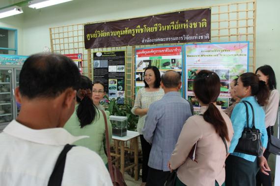 ศูนย์วิจัยควบคุมศัตรูพืชโดยชีวินทรีย์แห่งชาติ ภาคตะวันออกเฉียงเหนือตอนล่าง จัดแสดงและให้ความรู้เกี่ยวกับแมลงตัวห้ำ และจุลินทรีย์ปฏิปักษ์ต่อศัตรูพืช ให้กับเจ้าหน้าที่เกษตรจากราชอาณาจักรกัมพูชา จำนวน 13 ราย ในวันที่ 7 มิถุนายน 2558 ที่เข้าร่วมฝึกอบรม เรื่อง การควบคุมศัตรูพืชโดยชีววิธี ในโครงการ GAP Program for Cambodian Government officials ภายใต้โครงการพัฒนากลุ่มเกษตรกรปลูกผักและผลไม้เพื่อยกระดับมาตรฐานการผลิตสินค้าเกษตรของราชอาณาจักรกัมพูชา” ณ คณะเกษตรศาสตร์ มหาวิทยาลัยอุบลราชธานี 13 ภาพ