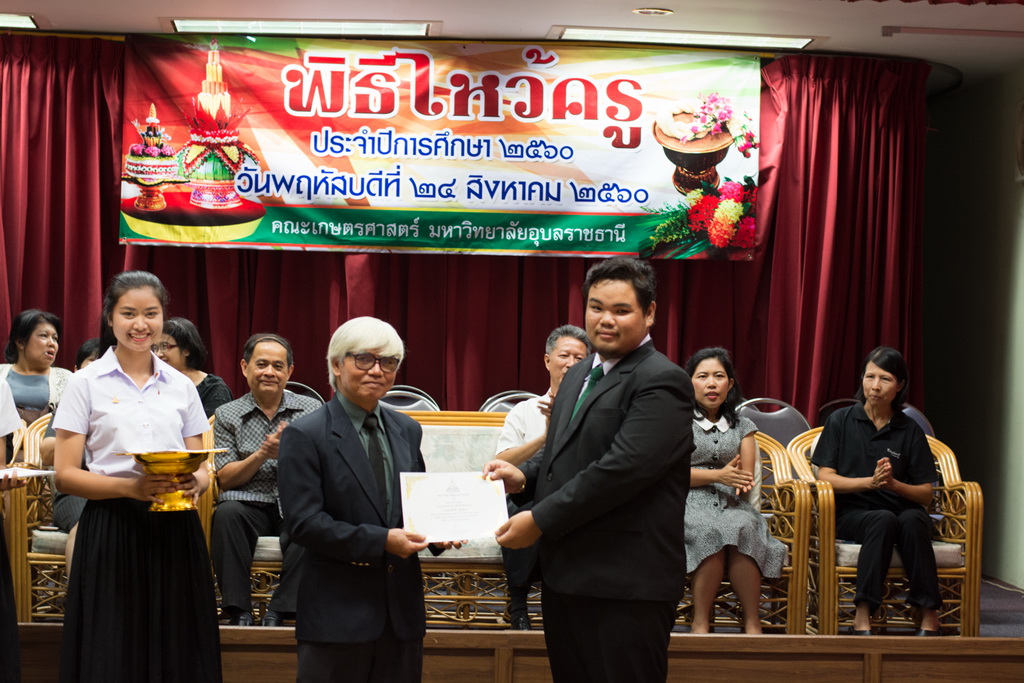 รายละเอียดกิจกรรม : โครงการไหว้ครู ประจำปีการศึกษา 2560 วันพฤหัสบดีที่ 24 สิงหาคม 2560 ณ ห้องประชุมวรพงษ์ สุริยภัทร โดยมีวัตถุประสงค์เพื่อรักษาขนบธรรมเนียมประเพณี การแสดงออกถึงการเคารพจากศิษย์ที่มีต่อคณาจารย์ การทำกิจกรรมร่วมกันในการจัดทำพานไหว้ครู อีกทั้งได้ใช้ความคิดสร้างสรรค์ในทางที่ดี และมีความรู้รักสามัคคีในรุ่น มีคณาจารย์ บุคลากร และนักศึกษาร่วมกิจกรรม ประมาณ 300 คน กลุ่มด้านประกันคุณภาพ : 3. กิจกรรมการพัฒนานิสิตนักศึกษา 6. การทำนุบำรุงศิลปวัฒนธรรม จำนวน 26 ภาพ |