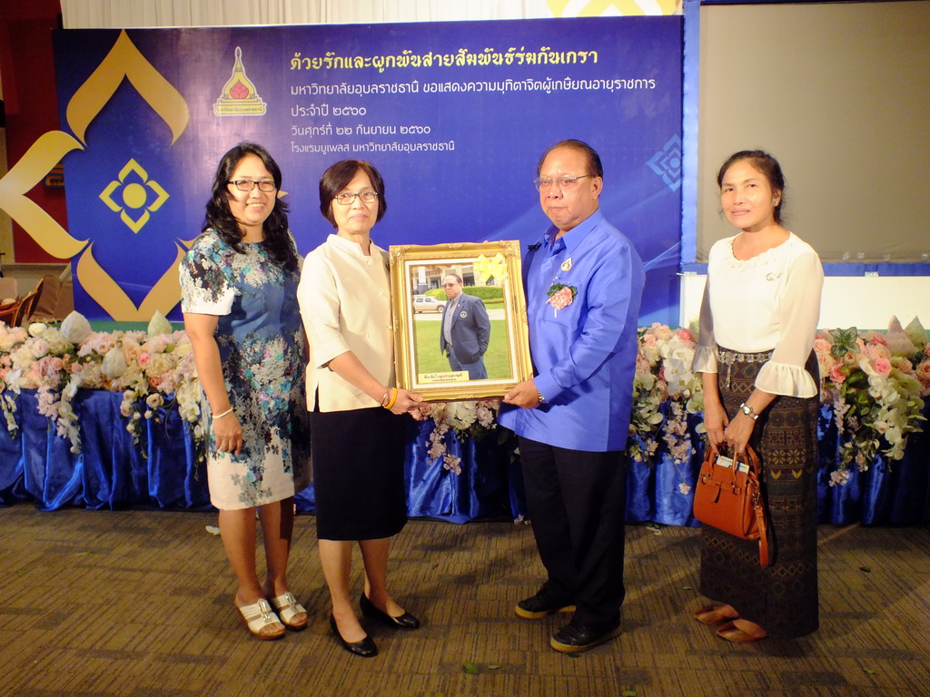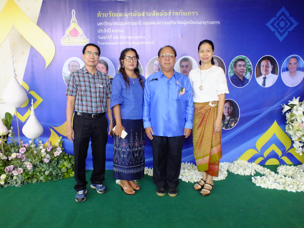 รายละเอียดกิจกรรม : ด้วยรักและผูกพันสายสัมพันธ์ร่มกันเกรา คณะเกษตรศาสตร์ มหาวิทยาลัยอุบลราชธานี ขอแสดงความมุทิตาจิตแก่ นายเทวัญ ตติยรัตน์ หัวหน้าสำนักงานเลขานุการ คณะเกษตรศาสตร์ และผู้เกษียณอายุราชการ ประจำปี 2560 ณ โรงแรมยูเพลส มหาวิทยาลัยอุบลราชธานี โดยคณะเกษตรศาสตร์, 22 กันยายน 2560 กลุ่มด้านประกันคุณภาพ : 6. การทำนุบำรุงศิลปวัฒนธรรม จำนวน 137 ภาพ