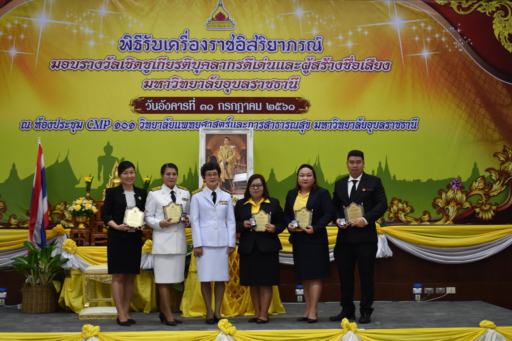 รายละเอียดกิจกรรม : พิธีรับเครื่องราชอิสริยาภรณ์และมอบรางวัลเชิดชูเกียรติบุคลากรดีเด่นและผู้สร้างชื่อเสียงมหาวิทยาลัยอุบลราชธานี ณ ห้องประชุม CMP 101 วิทยาลัยแพทย์ศาสตร์และการสาธารณสุข มหาวิทยาลัยอุบลราชธานี, 31 กรกฎาคม 2561 กลุ่มด้านประกันคุณภาพ : 6. การทำนุบำรุงศิลปวัฒนธรรม จำนวน 44 ภาพ |