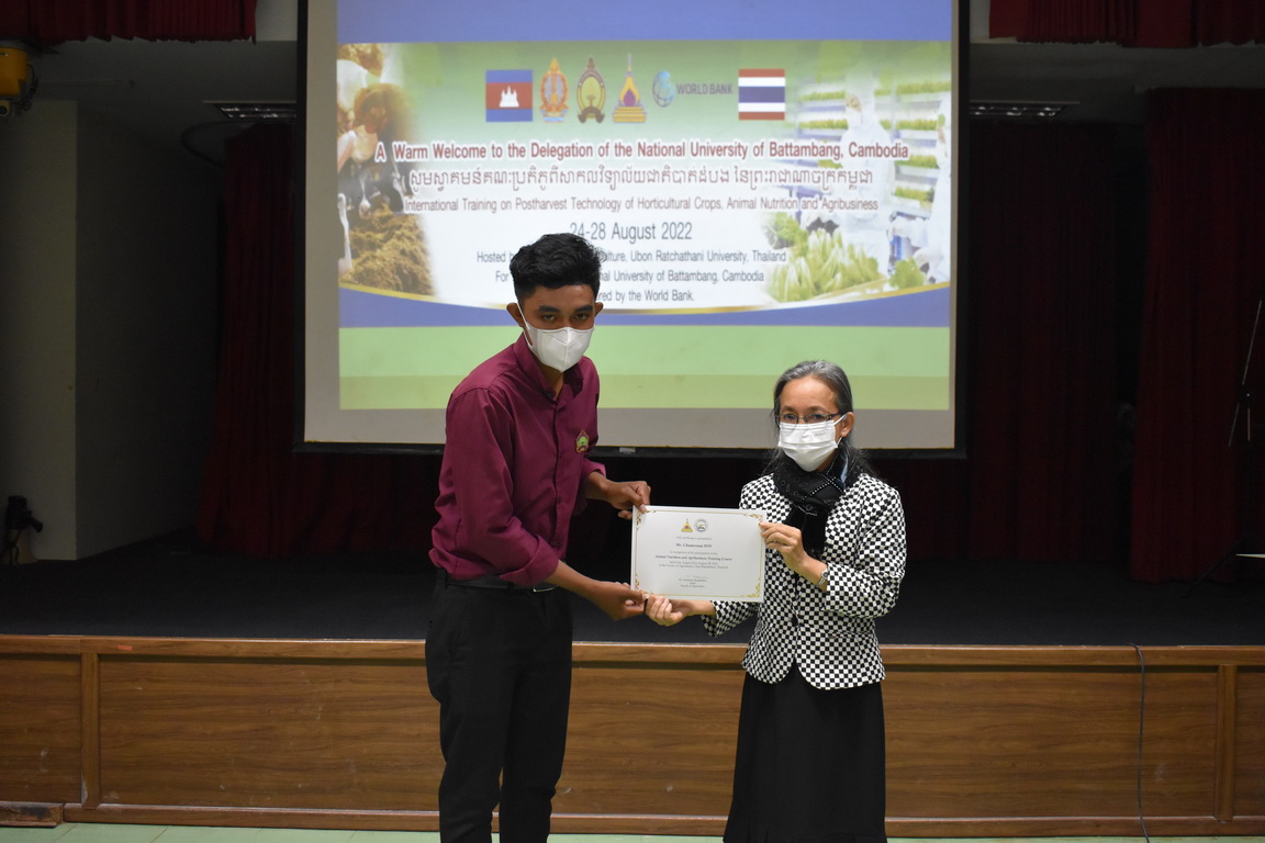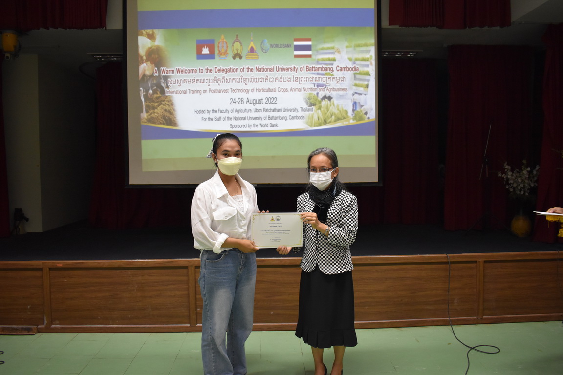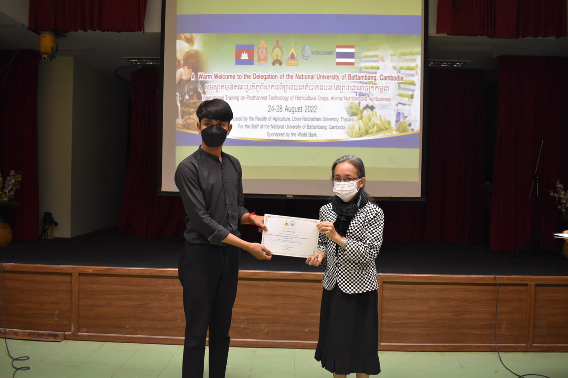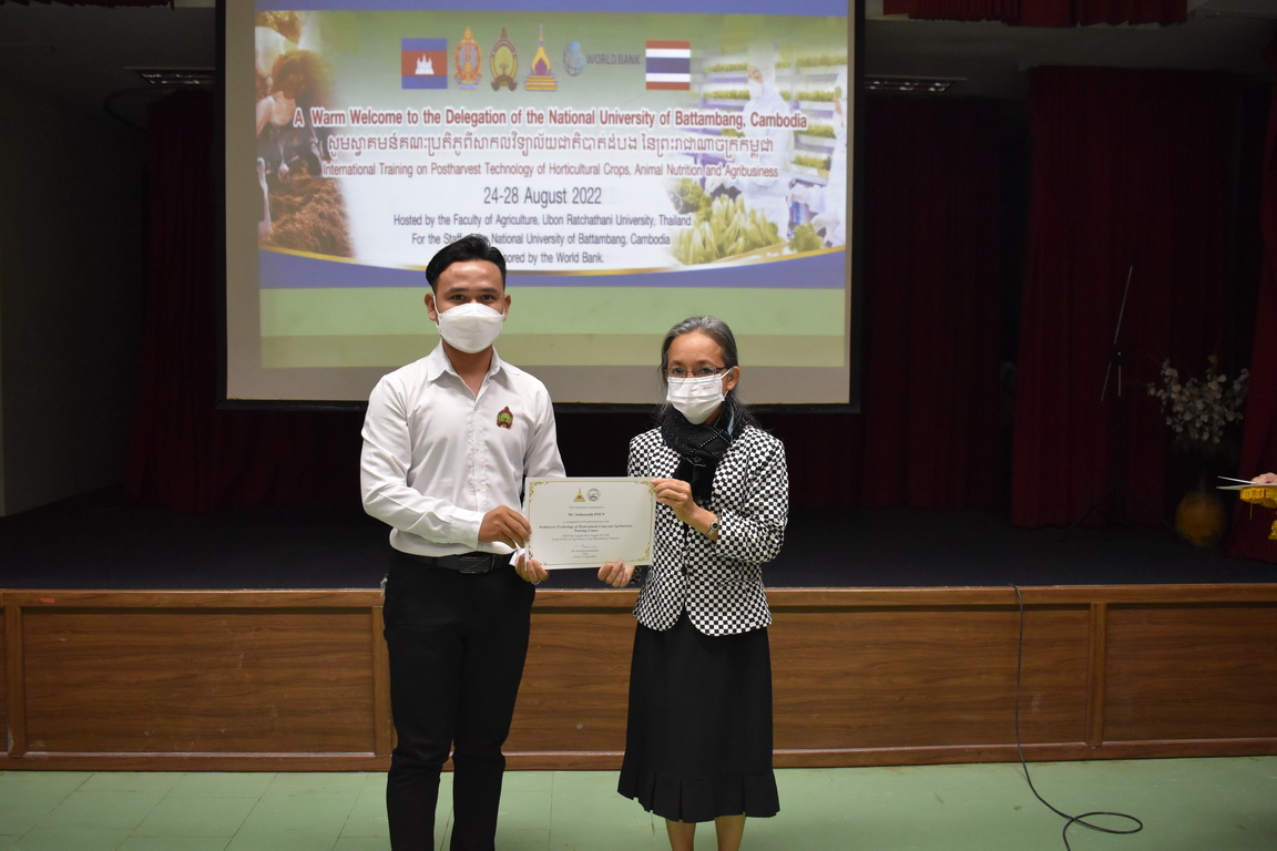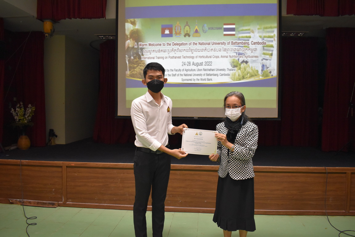 รายละเอียดกิจกรรม : พิธีปิดและมอบใบประกาศ การอบรมระดับนานาชาติ หัวข้อ Postharvest Technology of Horticultural Crops, Animal Nutrition and Agribusiness ให้แก่ อาจารย์ นักวิชาการ และนักศึกษา จากมหาวิทยาลัยแห่งชาติพระตะบอง (National University of Battambang) ประเทศกัมพูชา โดยได้รับงบประมาณสนับสนุนการดำเนินงานจากธนาคารโลก (World Bank) ทั้งนี้คณะเกษตรศาสตร์ได้มีการจัดการอบรมดังกล่าวในระหว่างวันที่ 24-28 สิงหาคม 2565, 26 สิงหาคม 2565 กลุ่มด้านประกันคุณภาพ : 4. การวิจัย 5. การบริการทางวิชาการแก่สังคม จำนวน 34 ภาพ |