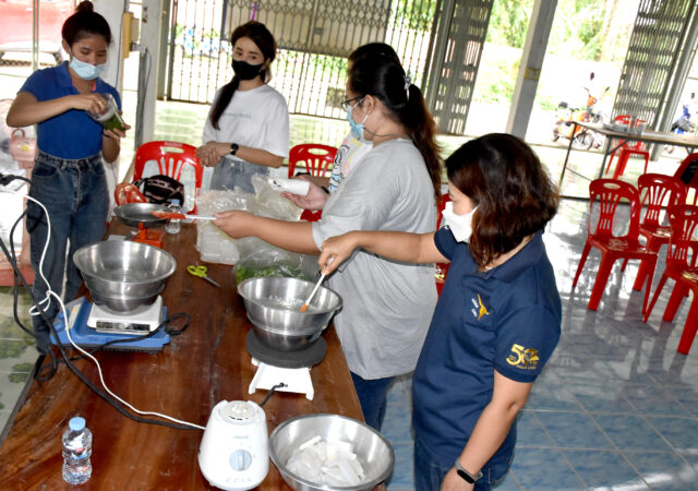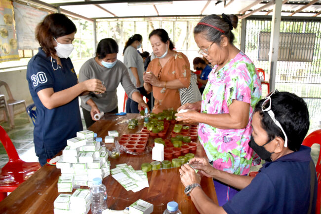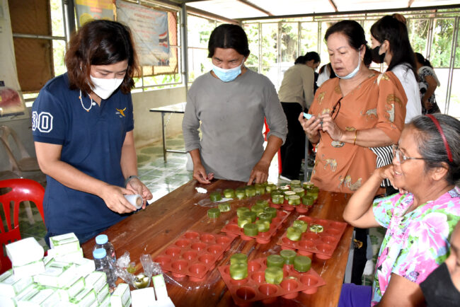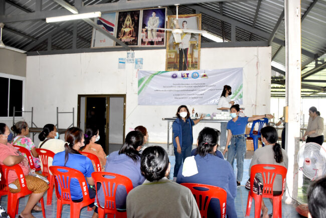 รายละเอียดกิจกรรม : เมื่อวันที่ 6 กันยายน 2565 คณะเกษตรศาสตร์ มหาวิทยาลัยอุบลราชธานี ลงพื้นที่บริการวิชาการแก่ชุมชน ประจำปีงบประมาณ 2565 อบรมเชิงปฏิบัติการ “การถ่ายทอดเทคโนโลยีการผลิตสบู่สมุนไพรใบบัวบก” ณ ตำบลบุงหวาย อำเภอวารินชำราบ จังหวัดอุบลราชธานี ให้แก่ เกษตรกรและประชาชนทั่วไป ภายใต้ “โครงการขับเคลื่อนเศรษฐกิจและสังคมฐานรากหลังโควิดด้วยเศรษฐกิจ BCG” (U2T for BCG and Regional Development) หรือโครงการ “มหาวิทยาลัยสู่ตำบล U2T for BCG” โดยมี ผู้ช่วยศาสตราจารย์ ดร.ทินน์ พรหมโชติ และ ดร.สุกัญญา คลังสินศิริกุล อาจารย์ประจำคณะเกษตรศาสตร์ มหาวิทยาลัยอุบลราชธานี เป็นวิทยากรร่วมกับบัณฑิตจบใหม่ โครงการ “มหาวิทยาลัยสู่ตำบล U2T for BCG” ในการให้ความรู้และถ่ายทอดเทคโนโลยีการผลิตสบู่สมุนไพรใบบัวบก เพื่อพัฒนาคุณภาพชีวิตของประชาชนและยกระดับเศรษฐกิจของอีสานใต้ จากฐาน BCG
