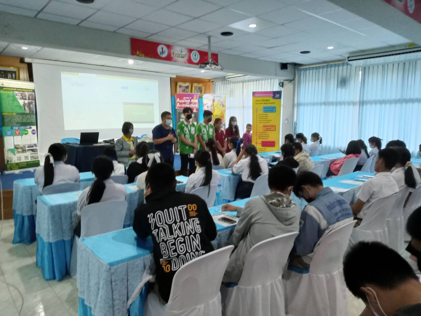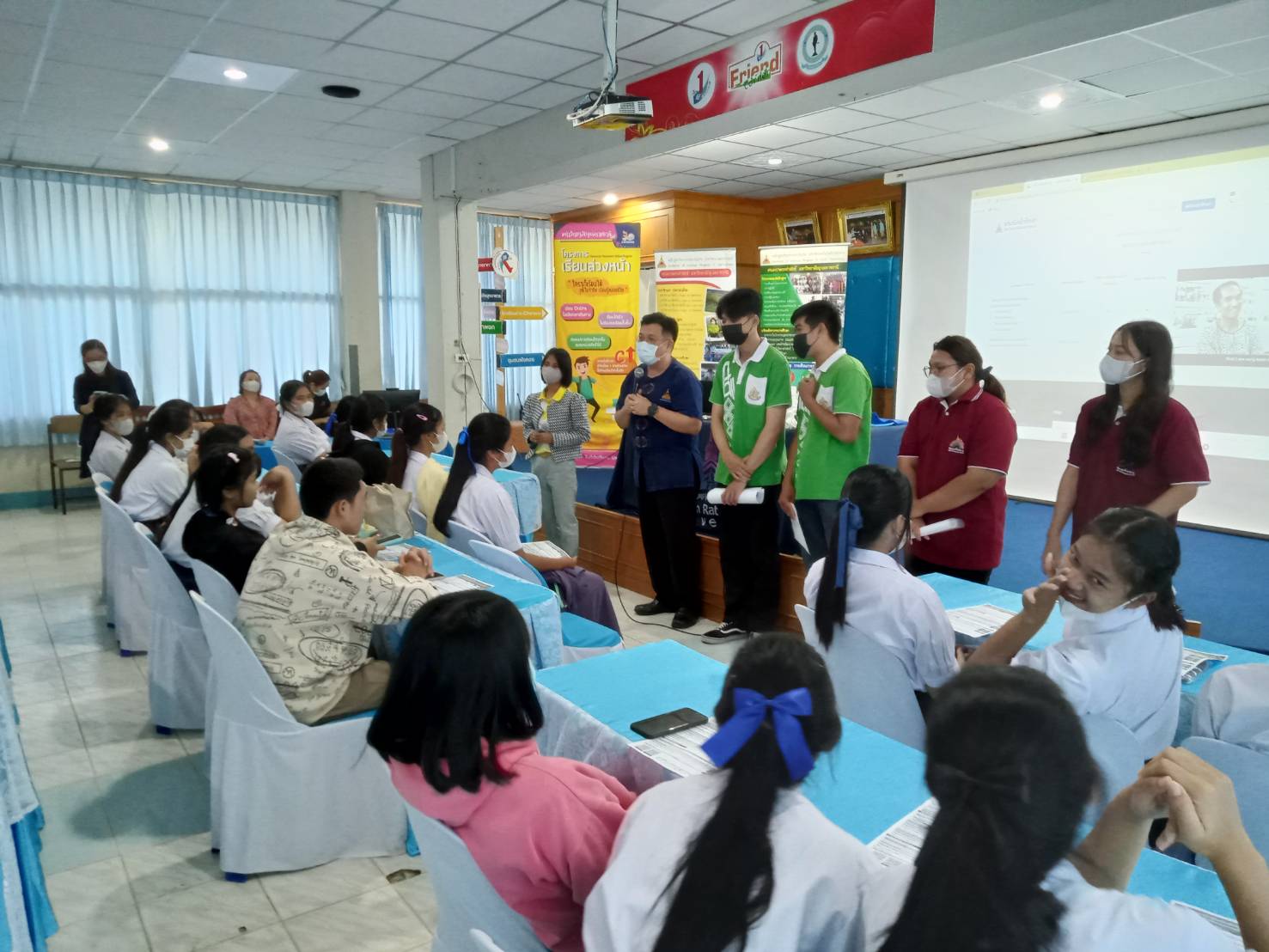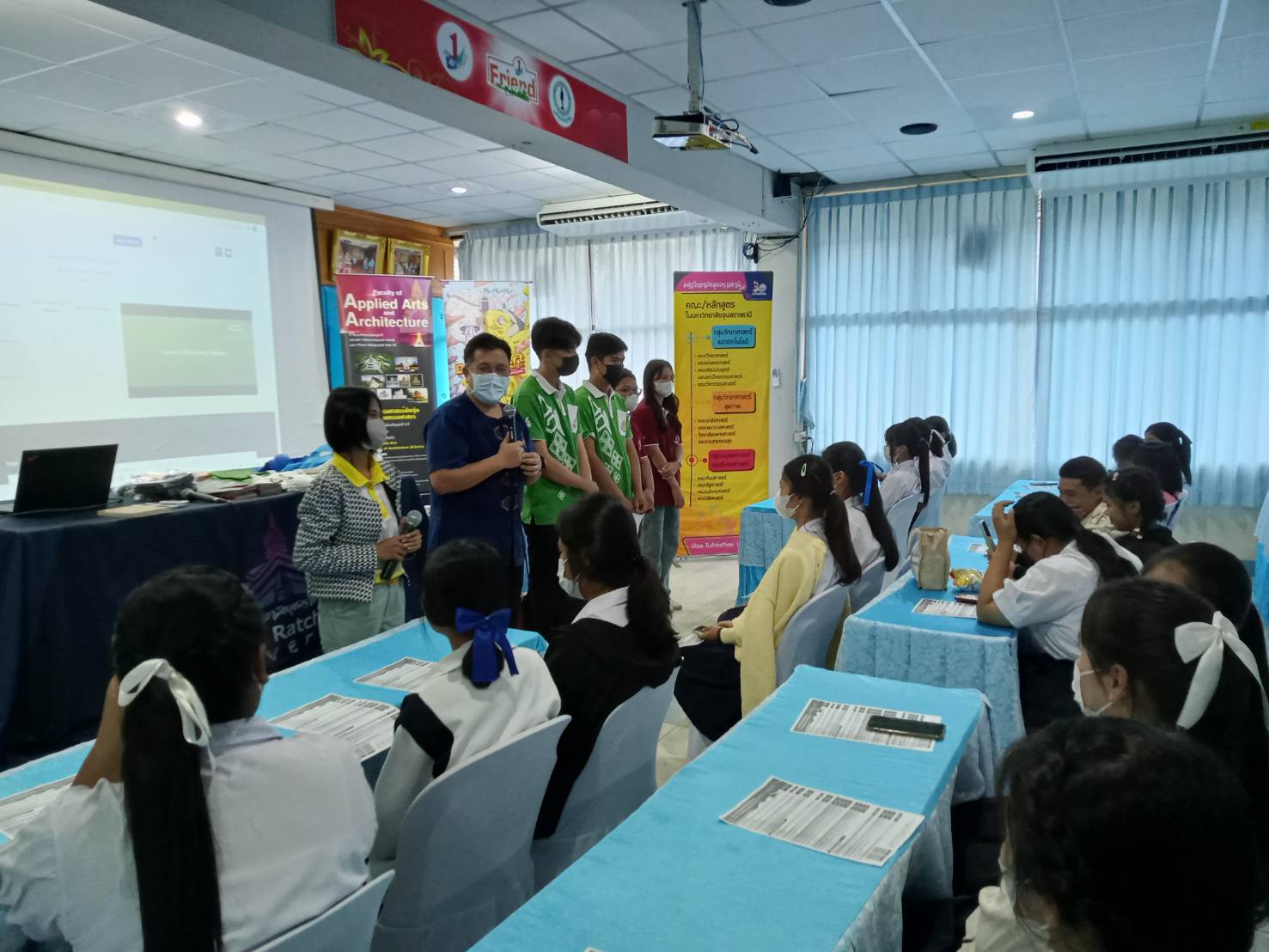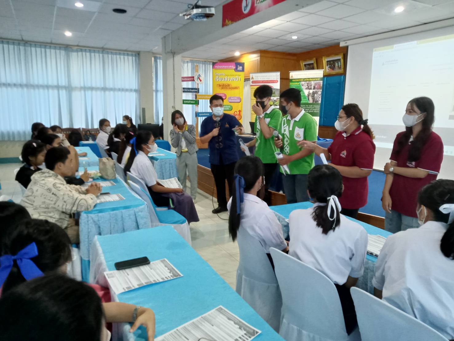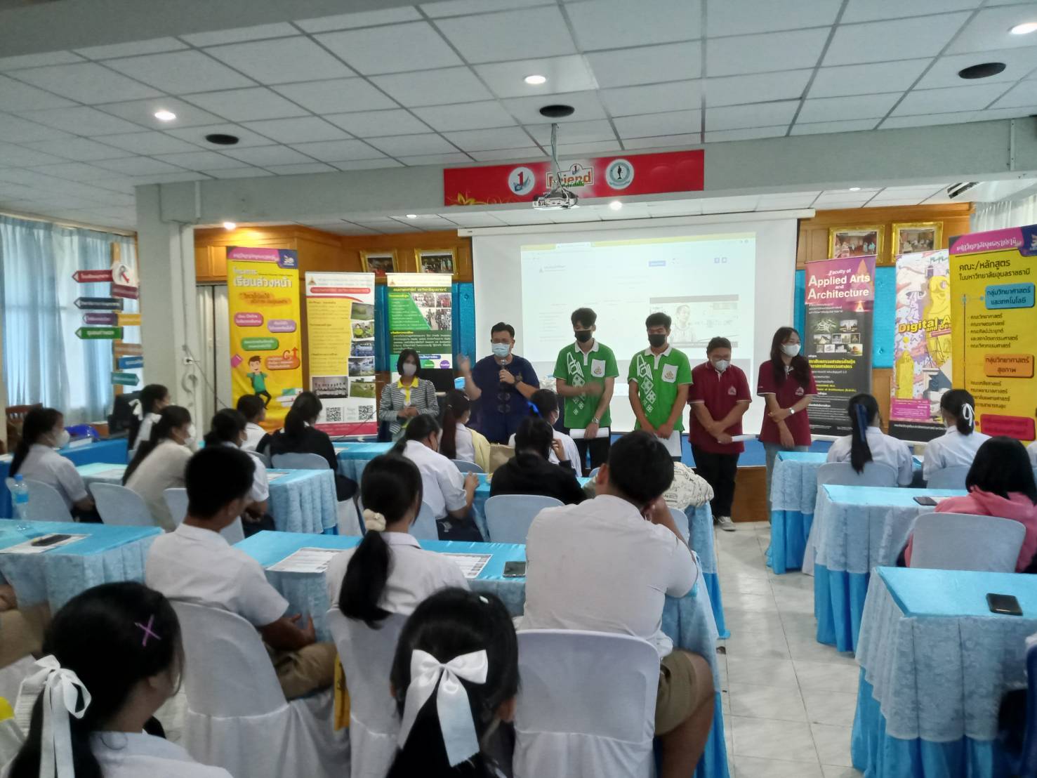รายละเอียดกิจกรรม : การแนะแนวเข้าศึกษาต่อคณะเกษตรศาสตร์ มหาวิทยาลัยอุบลราชธานี โดย รองศาสตราจารย์ ดร.วีระเวทย์ อุทโธ หัวหน้าสาขาวิชาอุตสาหกรรมเกษตร, ดร.นิมมานรดี พรหมทอง หัวหน้าภาควิชาพืชสวน ตลอดจนอาจารย์และนักศึกษาร่วมแนะแนวการศึกษาต่อให้กับโรงเรียนปทุมราชวงศา จังหวัดอำนาจเจริญ, 28 พฤศจกายน 2565 กลุ่มด้านประกันคุณภาพ : 1. ปรัชญา ปณิธาน วัตถุประสงค์ และแผนการดำเนินการ 3. กิจกรรมการพัฒนานิสิตนักศึกษา 5. การบริการทางวิชาการแก่สังคม จำนวน 10 ภาพ |