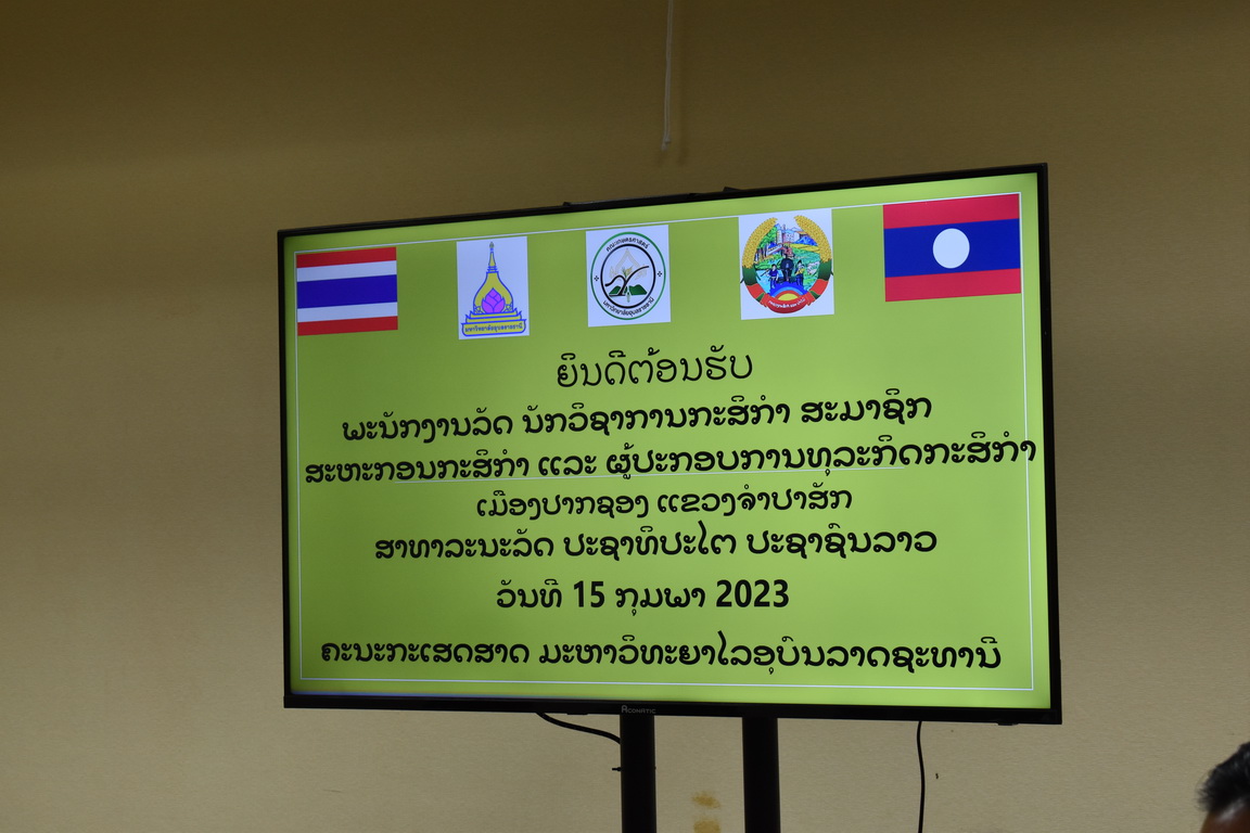 รายละเอียดกิจกรรม : ดร.นรินทร บุญพราหมณ์ คณบดีคณะเกษตรศาสตร์ พร้อมด้วยผู้บริหาร ให้การต้อนรับ ท่านสีใส ทองปัดสา หัวหน้าห้องว่าการเมืองปากซอง ท่านทะนงสัก อินทิสาน หัวหน้าห้องการอุตสาหกรรมและการค้าเมืองปากซอง ท่านคำฮู้ มุกดารา หัวหน้าห้องการกสิกรรมและป่าไม้เมืองปากซอง นักวิชาการเกษตร ปศุสัตว์และประมง สมาชิกสหกรณ์การเกษตร ผู้ประกอบการธุรกิจเกษตร เมืองปากซอง แขวงจำปาสัก สปป.ลาว ในโอกาสเดินทางมาประชุมเพื่อหารือความร่วมมือทางวิชาการระหว่างเมืองปากซองซึ่งเป็นแหล่งผลิตทางการเกษตรที่สำคัญของแขวงจำปาสักและคณะเกษตรศาสตร์ มหาวิทยาลัยอุบลราชธานี และการเที่ยวชมงานเกษตรอีสานใต้ประจำปี พ.ศ. 2566, 15 ก.พ.2566 กลุ่มด้านประกันคุณภาพ : 5. การบริการทางวิชาการแก่สังคม 6. การทำนุบำรุงศิลปวัฒนธรรม จำนวน 78 ภาพ