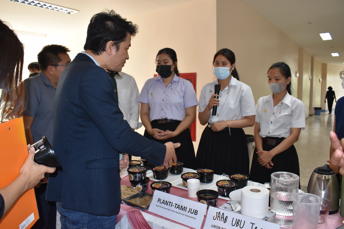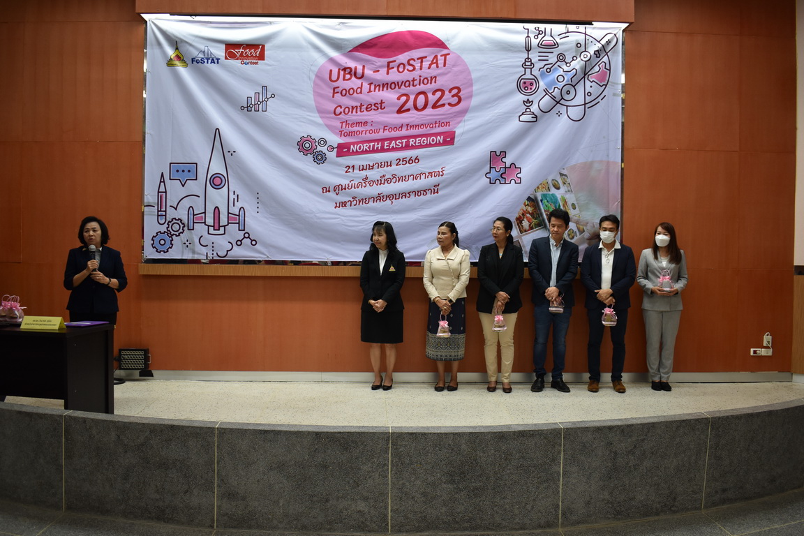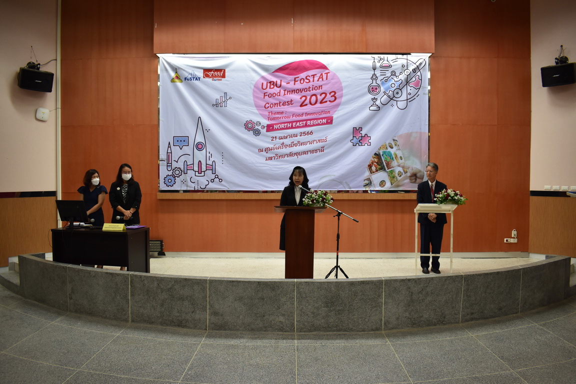 รายละเอียดกิจกรรม : คณะเกษตรศาสตร์ มหาวิทยาลัยอุบลราชธานี ได้ร่วมมือกับ สมาคมวิทยาศาสตร์และเทคโนโลยีทางอาหารแห่งประเทศไทยจัดกิจกรรมการประกวดนวัตกรรมผลิตภัณฑ์อาหาร ระดับภูมิภาคตะวันออกเฉียงเหนือ หรือ UBU-FoSTAT Food Innovation Contest 2023 ในวันที่ 21 เมษายน 2566 โดยมีท่านอธิการบดี มหาวิทยาลัยอุบลราชธานีเป็นประธานในพิธีเปิดกิจกรรม ซึ่งคณบดี คณะเกษตรศาสตร์ เป็นผู้กล่าวรายงาน พร้อมกับรองคณบดี คณะเกษตรศาสตร์ เป็นผู้กล่าวต้อนรับ ทั้งนี้มีทีมจากสถาบันอุดมศึกษาในภาคตะวันออกเฉียงเหนือจำนวน 6 ทีม เข้าทำการแข่งขัน และได้รับคัดเลือกจากคณะกรรมการผู้ทรงคุณวุฒิจำนวน 3 ทีม ประกอบด้วยทีม UniFy มหาวิทยาลัยมหาสารคาม ทีม Shake Shake มหาวิทยาลัยขอนแก่น และ ทีม JAAB UBU มหาวิทยาลัยอุบลราชธานี เพื่อไปแข่งในระดับชาติต่อไป กลุ่มด้านประกันคุณภาพ : 3. กิจกรรมการพัฒนานิสิตนักศึกษา 4. การวิจัย จำนวน 162 ภาพ