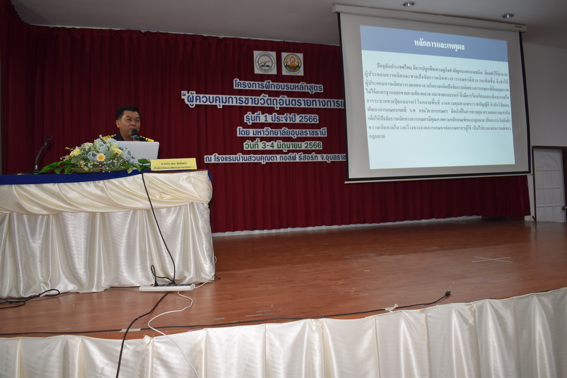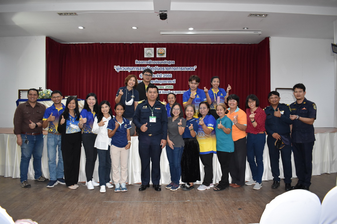 รายละเอียดกิจกรรม : การฝึกอบรมหลักสูตร ผู้ควบคุมการขายวัตถุอันตรายทางการเกษตร ปี 2566 ณ โรงแรมบ้านสวนคุณตา อ.วารินชำราบ จ.อุบลราชธานี รุ่นที่ 1 วันที่ 3-4 มิถุนายน 2566 จำนวน 200 - 250 คน, 4 มิถุนายน 2566 กลุ่มด้านประกันคุณภาพ : 5. การบริการทางวิชาการแก่สังคม จำนวน 38 ภาพ |