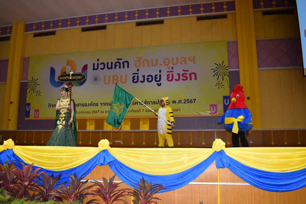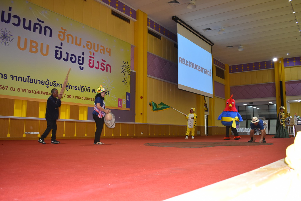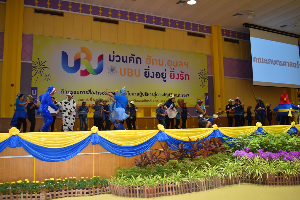 รายละเอียดกิจกรรม : คณะเกษตรศาสตร์ มหาวิทยาลัยอุบลราชธานี นำโดย ดร.นรินทร บุญพราหมณ์ คณบดี พร้อมด้วยผู้บริหารคณะ และบุคลากร เข้าร่วม กิจกรรม ม่วนคัก ฮัก ม.อุบลฯ UBU ยิ่งอยู่ยิ่งรัก ซึ่งเป็นกิจกรรมสื่อสารองค์กร จากนโยบายผู้บริหารสู่การปฏิบัติ พ.ศ. 2567 วันศุกร์ ที่ 5 มกราคม 2567 ณ อาคารเฉลิมพระเกียรติ 7 พระชนมพรรษา, 5 มกราคม 2567 กลุ่มด้านประกันคุณภาพ : 6. การทำนุบำรุงศิลปวัฒนธรรม จำนวน 72 ภาพ