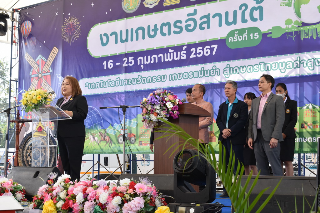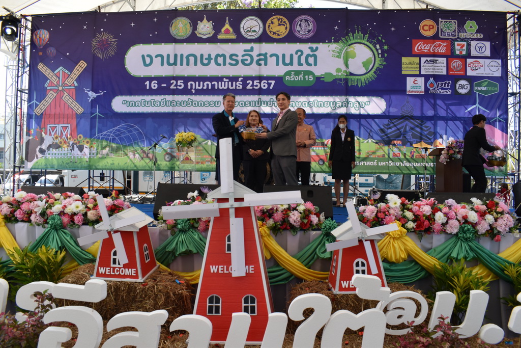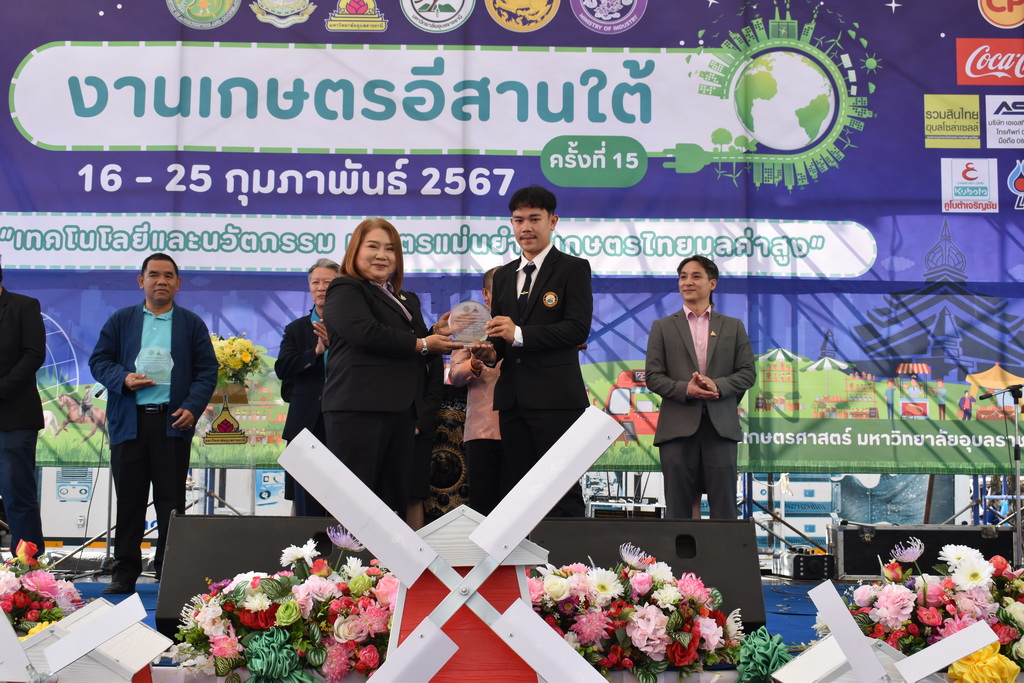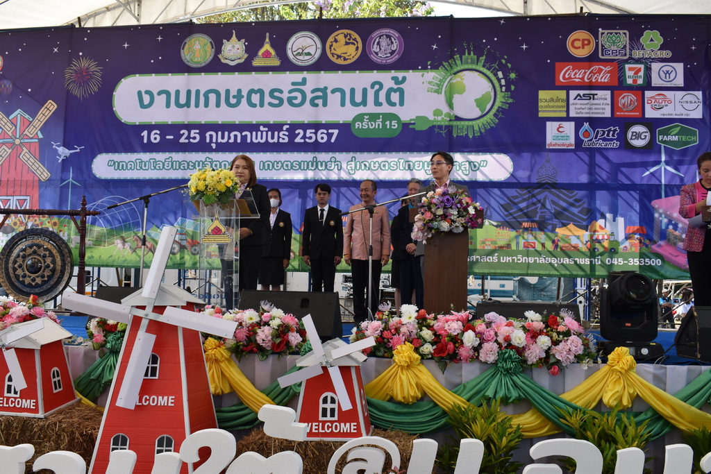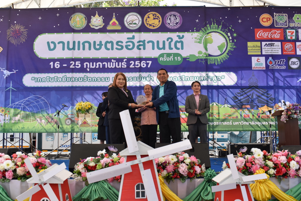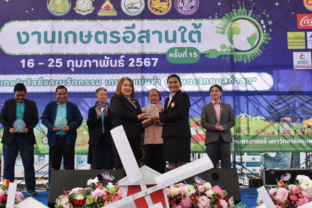 รายละเอียดกิจกรรม : มหาวิทยาลัยอุบลราชธานี โดย คณะเกษตรศาสตร์ ร่วมกับ กระทรวงเกษตรและสหกรณ์ สถาบันการศึกษา กระทรวงสาธารณสุข องค์กรปกครองส่วนท้องถิ่น ตลอดจนภาคเอกชน ร่วมจัดงานเกษตรอีสานใต้ ประจำปี 2567 ครั้งที่ 15 ภายใต้แนวคิด “เทคโนโลยีและนวัตกรรมเกษตรแม่นยำสู่เกษตรไทยมูลค่าสูง" ระหว่างวันที่ 16-25 กุมภาพันธ์ 2567 ณ คณะเกษตรศาสตร์ มหาวิทยาลัยอุบลราชธานี โดยมี ดร.จอมขวัญ กลับบ้านเกาะ ผู้ช่วยรัฐมนตรีว่าการกระทรวงเกษตรและสหกรณ์ ให้เกียรติเป็นประธานและมอบโล่เกียรติคุณผู้ให้การสนับสนุนการจัดงาน นายสำเริง ม่วงสังข์ รองผู้ว่าราชการจังหวัดอุบลราชธานี กล่าวต้อนรับ ดร.นรินทร บุญพราหมณ์ คณบดีคณะเกษตรศาสตร์ มอบของที่ระลึกและ ผู้ช่วยศาสตราจารย์ ดร.เกรียงศักดิ์ แก้วกุลชัย รองอธิการบดีฝ่ายบริหาร มหาวิทยาลัยอุบลราชธานี กล่าวรายงานและวัตถุประสงค์การจัดงาน “งานเกษตรอีสานใต้ ประจำปี 2567” ครั้งนี้, 16 กุมภาพันธ์ 2567 กลุ่มด้านประกันคุณภาพ : 5. การบริการทางวิชาการแก่สังคม จำนวน 101 ภาพ