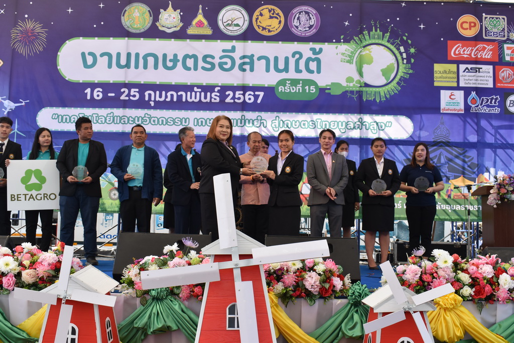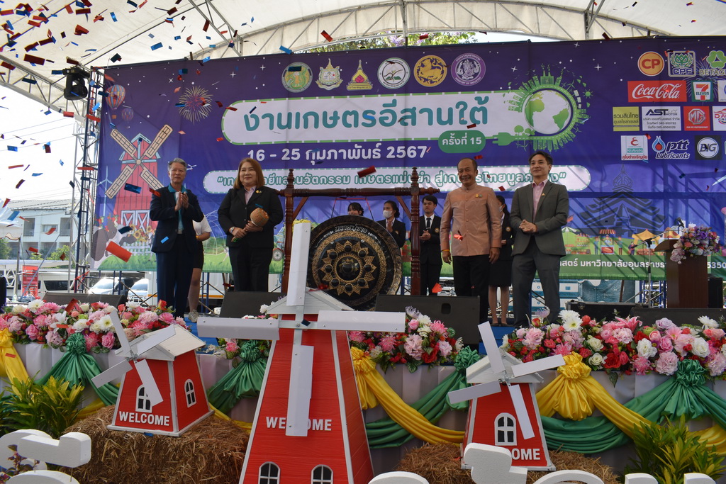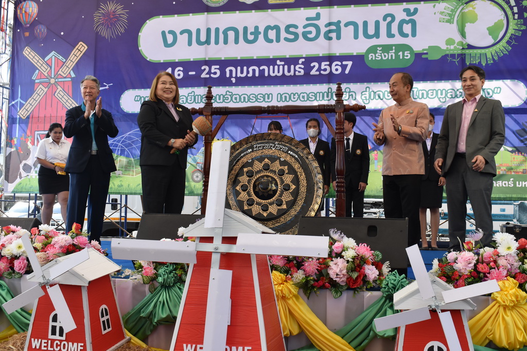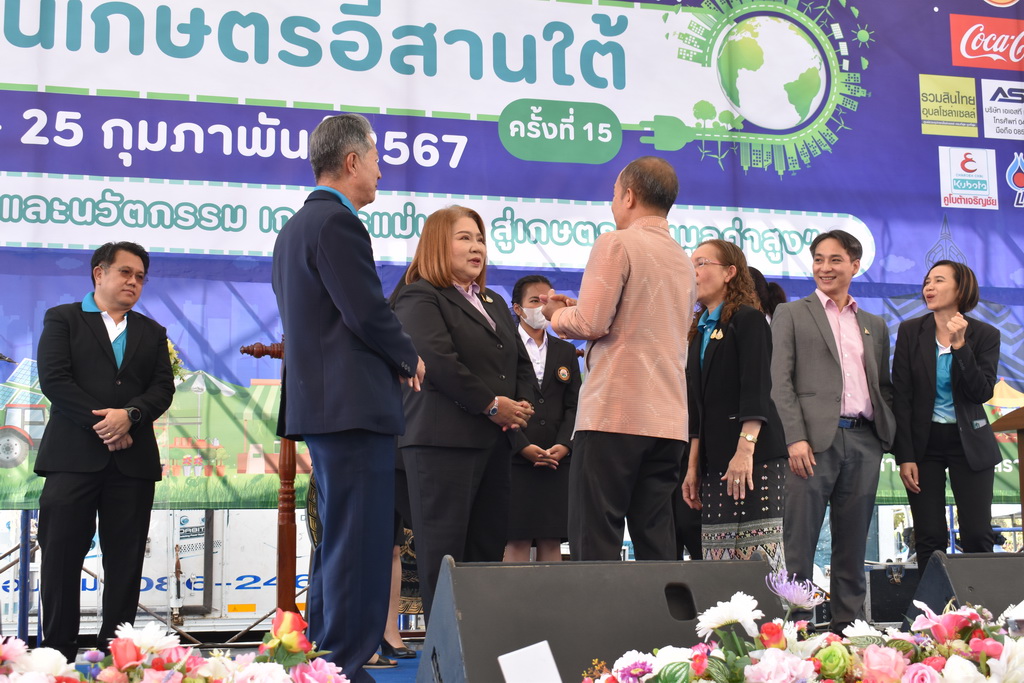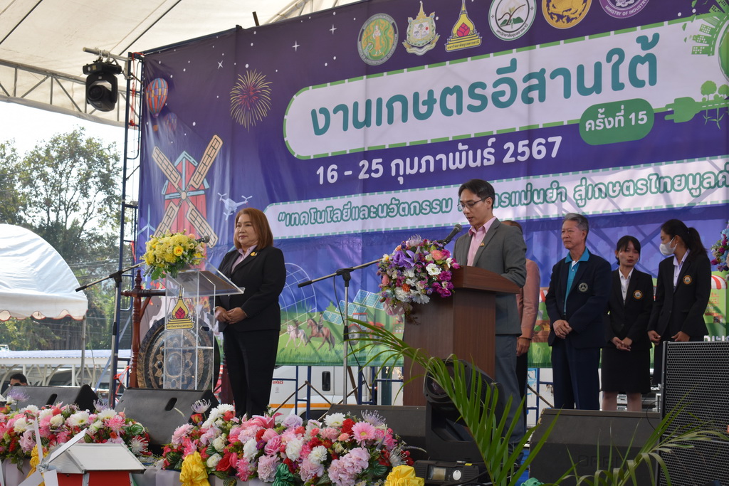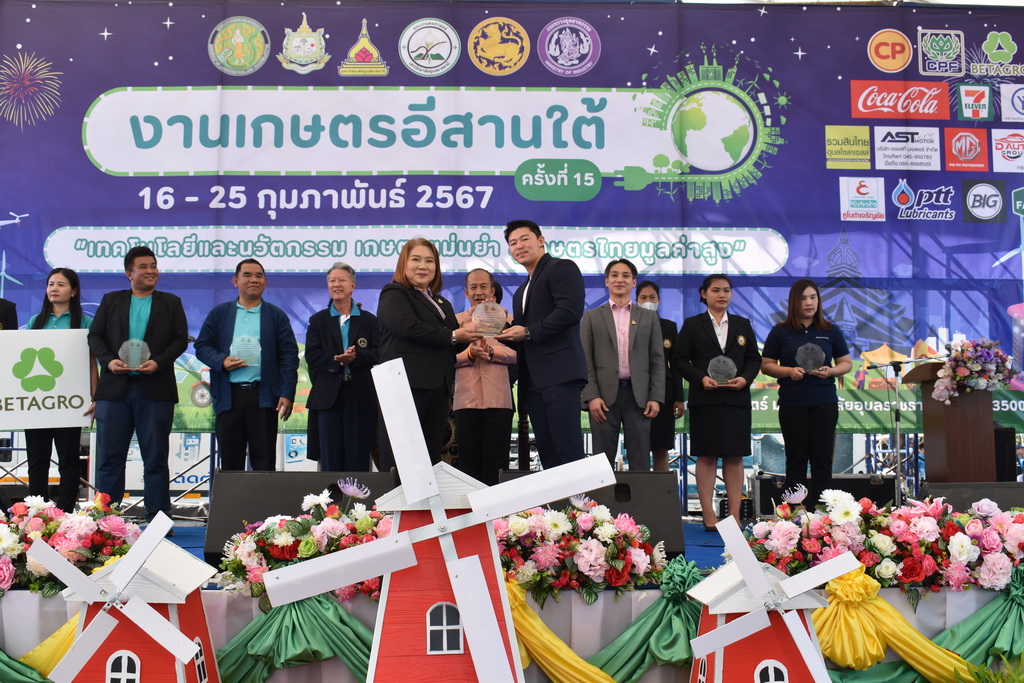รายละเอียดกิจกรรม : มหาวิทยาลัยอุบลราชธานี โดย คณะเกษตรศาสตร์ ร่วมกับ กระทรวงเกษตรและสหกรณ์ สถาบันการศึกษา กระทรวงสาธารณสุข องค์กรปกครองส่วนท้องถิ่น ตลอดจนภาคเอกชน ร่วมจัดงานเกษตรอีสานใต้ ประจำปี 2567 ครั้งที่ 15 ภายใต้แนวคิด “เทคโนโลยีและนวัตกรรมเกษตรแม่นยำสู่เกษตรไทยมูลค่าสูง" ระหว่างวันที่ 16-25 กุมภาพันธ์ 2567 ณ คณะเกษตรศาสตร์ มหาวิทยาลัยอุบลราชธานี โดยมี ดร.จอมขวัญ กลับบ้านเกาะ ผู้ช่วยรัฐมนตรีว่าการกระทรวงเกษตรและสหกรณ์ ให้เกียรติเป็นประธานและมอบโล่เกียรติคุณผู้ให้การสนับสนุนการจัดงาน นายสำเริง ม่วงสังข์ รองผู้ว่าราชการจังหวัดอุบลราชธานี กล่าวต้อนรับ ดร.นรินทร บุญพราหมณ์ คณบดีคณะเกษตรศาสตร์ มอบของที่ระลึกและ ผู้ช่วยศาสตราจารย์ ดร.เกรียงศักดิ์ แก้วกุลชัย รองอธิการบดีฝ่ายบริหาร มหาวิทยาลัยอุบลราชธานี กล่าวรายงานและวัตถุประสงค์การจัดงาน “งานเกษตรอีสานใต้ ประจำปี 2567” ครั้งนี้, 16 กุมภาพันธ์ 2567 กลุ่มด้านประกันคุณภาพ : 5. การบริการทางวิชาการแก่สังคม จำนวน 101 ภาพ