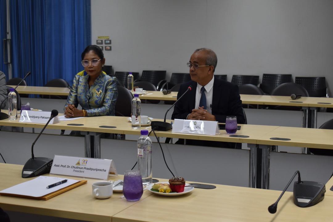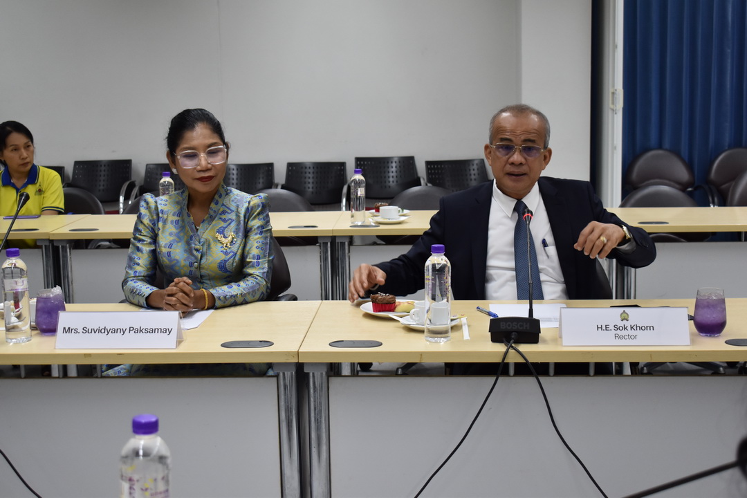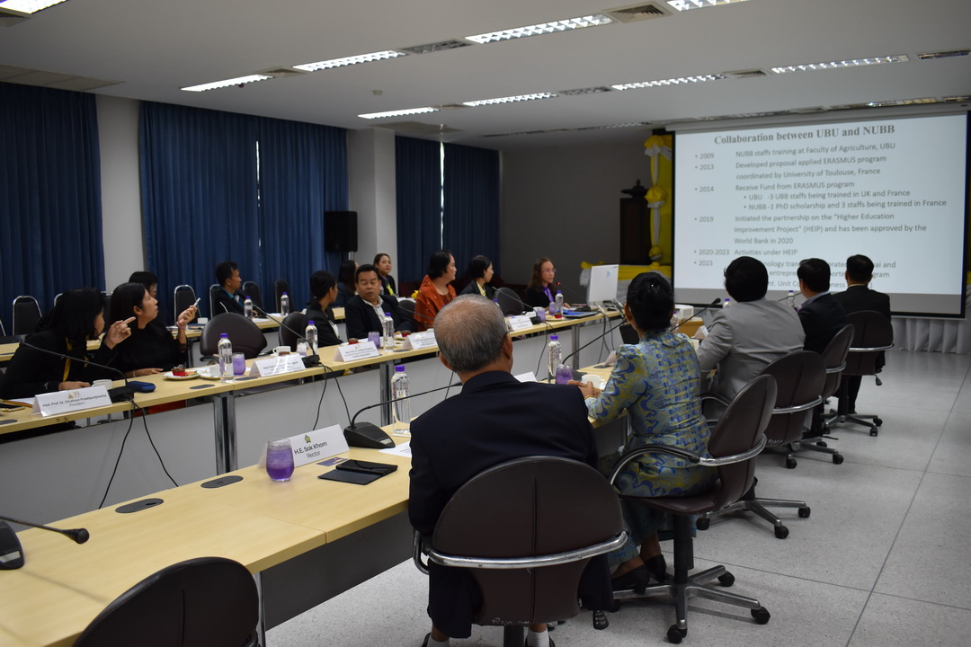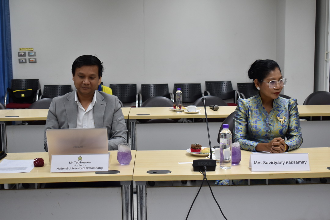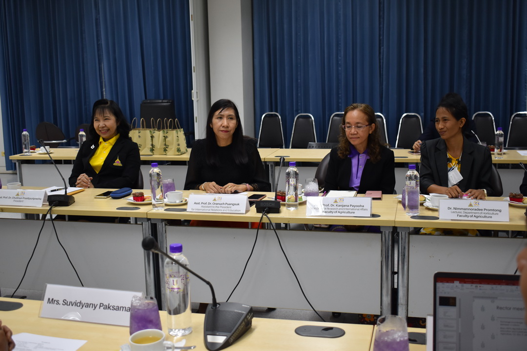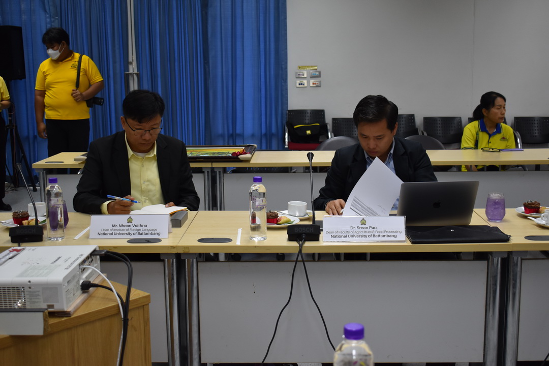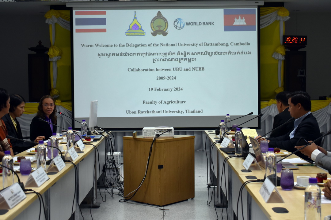 รายละเอียดกิจกรรม : ผศ.ดร. ชุตินันท์ ประสิทธิ์ภูริปรีชา อธิการบดี ผศ.ดร. อรนุช ปวงสุข ผู้ช่วยอธิการบดีฝ่ายวิเทศสัมพันธ์ ผศ.ดร. กาญจนา พยุหะ รองคณบดีฝ่ายวิจัยและวิเทศสัมพันธ์ รศ.ดร. ธนาทิพ แหลมคม รองคณบดีฝ่ายวิชาการ ผู้บริหาร และ อาจารย์ ให้การต้อนรับ H.E. Sok Khorn อธิการบดีมหาวิทยาลัยแห่งชาติพระตะบอง (National University of Battambang) พร้อมด้วย Dr. Srean Pao คณบดีคณะเกษตรศาสตร์และเทคโนโลยีการอาหารและผู้บริหารมหาวิทยาลัยแห่งชาติพระตะบอง ราชอาณาจักรกัมพูชา และประชุมหารือความร่วมมือทางวิชาการในการพัฒนาหลักสูตรร่วมสาขาพืชสวนและกิจกรรมอื่นๆเช่นการแลกเปลี่ยนบุคลากรและนักศึกษา คณะเกษตรศาสตร์ มีความร่วมมือทางวิชาการกับมหาวิทยาลัยแห่งชาติพระตะบองภายใต้การสนับสนุนงบประมาณจากธนาคารโลก (World Bank) ในระหว่างปี พ.ศ. 2562-2567 อาจารย์และบุคลากรได้รับทุนในการศึกษาต่อที่คณะเกษตรศาสตร์ ระดับปริญญาเอกจำนวน 3 ทุน ระดับปริญญาโทจำนวน 6 ทุน หลักสูตรฝึกอบรมระยะสั้น จำนวน 10 หลักสูตร, 19 ก.พ.2567 กลุ่มด้านประกันคุณภาพ : 5. การบริการทางวิชาการแก่สังคม จำนวน 85 ภาพ |