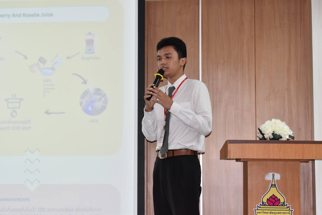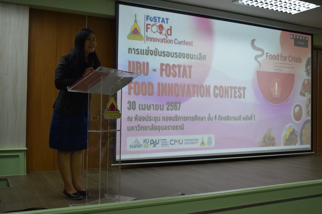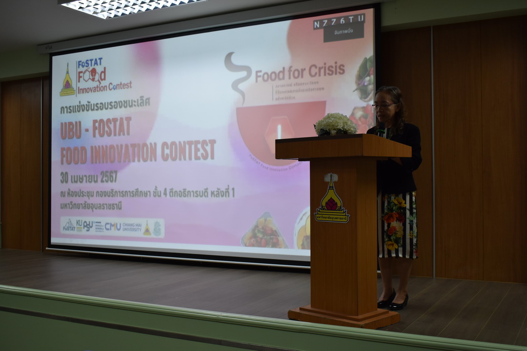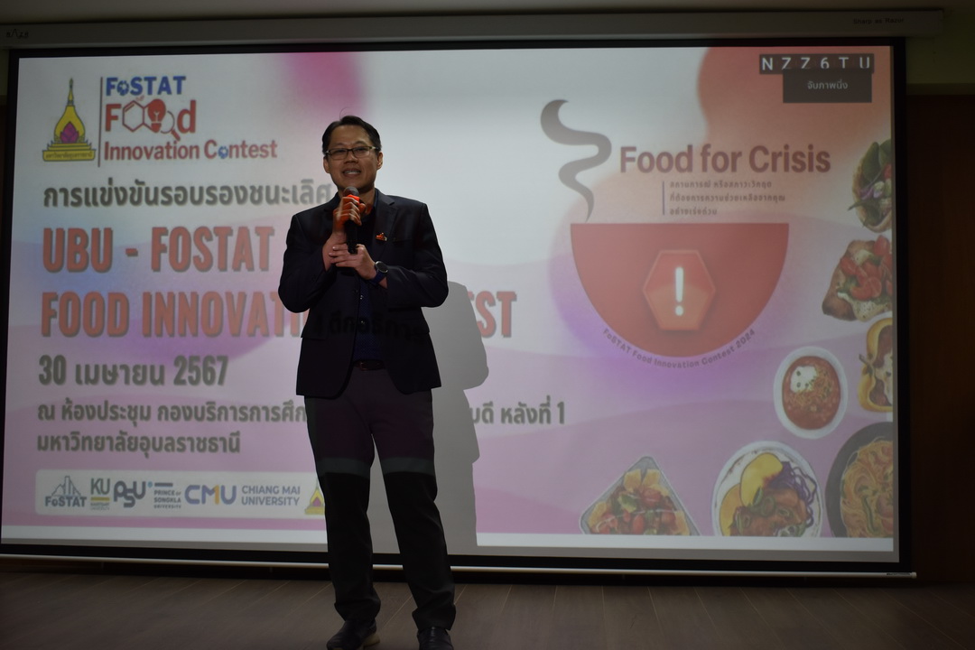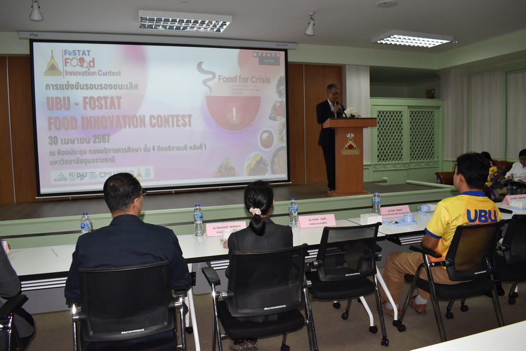 รายละเอียดกิจกรรม : มหาวิทยาลัยอุบลราชธานี โดย คณะเกษตรศาสตร์ ร่วมกับ สมาคมวิทยาศาสตร์และเทนโนโลยีทางอาหารแห่งประเทศไทย จัดการประกวดนวัตกรรมผลิตภัณฑ์อาหาร รอบรองชนะเลิศ ปีที่ 16 UBU-FoSTAT Food Innovation Contest 2024 โดยมี ศ.ดร.ทวนทอง จุฑาเกตุ รองอธิการบดีฝ่ายวิจัยและนวัตกรรม เป็นประธานกล่าวเปิดกิจกรรม และ ดร.นรินทร บุญพราหมณ์ คณบดีคณะเกษตรศาสตร์ กล่าววัตถุประสงค์การจัดงาน เมื่อวันอังคารที่ 30 เมษายน 2567 ณ ห้องประชุมกองบริการการศึกษา ชั้น 4 อาคารสำนักงานอธิการบดี 1