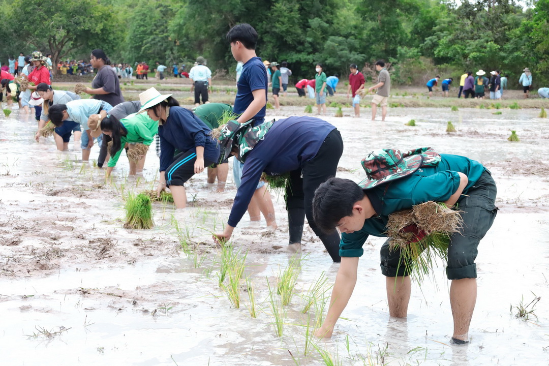 รายละเอียดกิจกรรม : สโมสรนักศึกษาคณะเกษตรศาสตร์ จัดกิจกรรมต้อนรับน้องใหม่แบบสร้างสรรค์เชิงเกษตร ภายใต้โครงการมือเรียวรอเกี่ยวรวง (ระยะที่ 1 ดำนา) ประจำปีการศึกษา 2567 โดยมี ดร.นรินทร บุญพราหมณ์ คณบดีคณะเกษตรศาสตร์ เป็นประธาน และ นางสาวเกศร คำถาวร นักศึกษาชั้นปีที่ 3 ภาควิชาพืชไร่ คณะกรรมการสโมสรนักศึกษาคณะเกษตรศาสตร์ กล่าวรายงาน ซึ่งมีอาจารย์ บุคลากร และนักศึกษา เข้าร่วมลงแขกปักดำนาจำนวน 300 คน ณ แปลงนาทดลอง (แปลงคอกม้า) คณะเกษตรศาสตร์ เมื่อวันที่ 14 กรกฎาคม 2567 ที่ผ่านมา