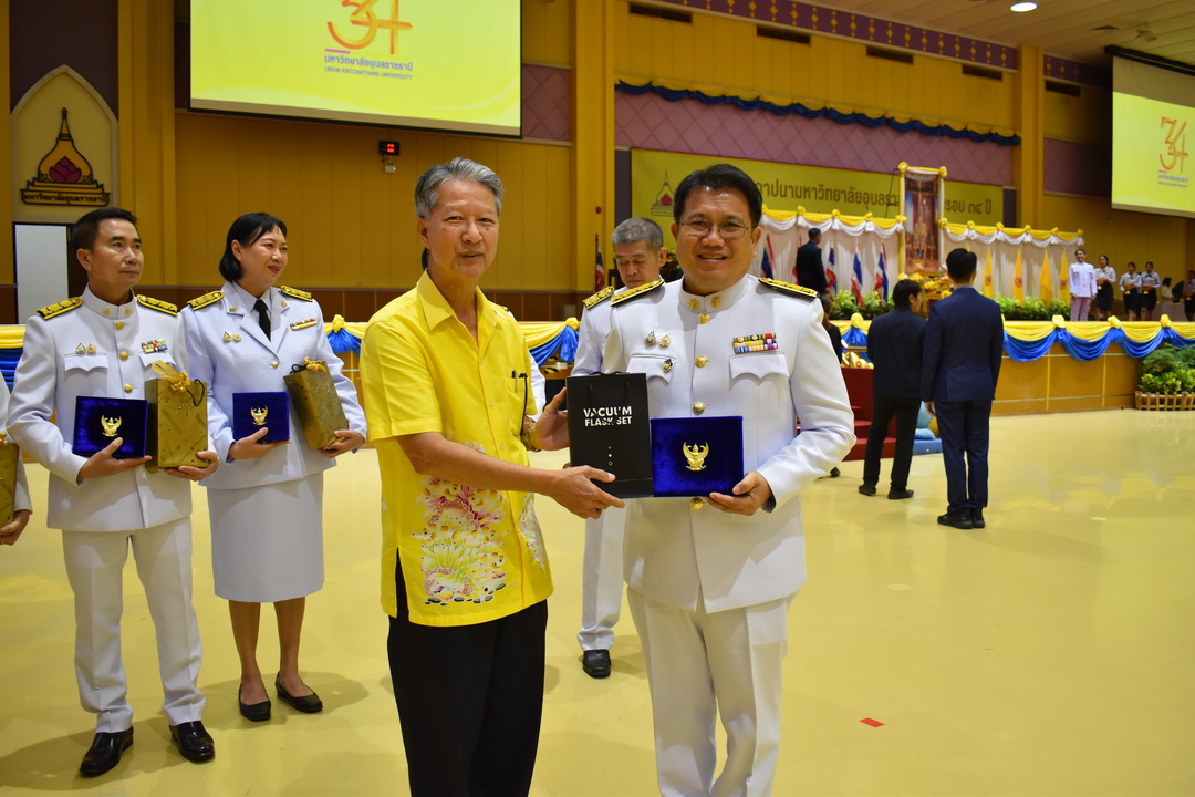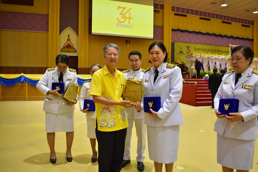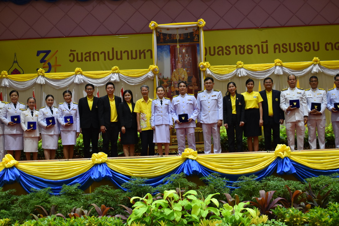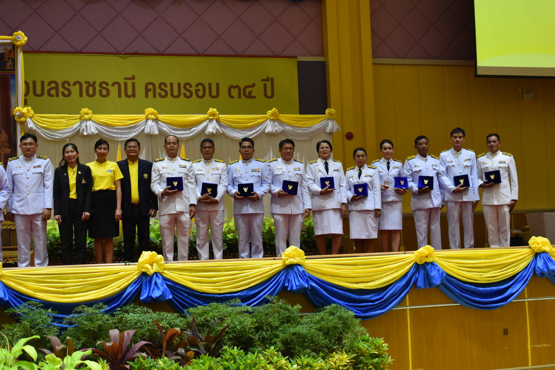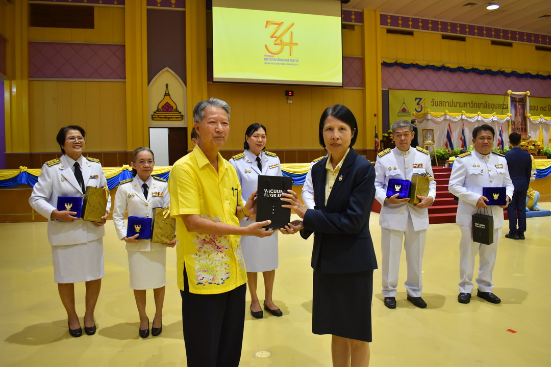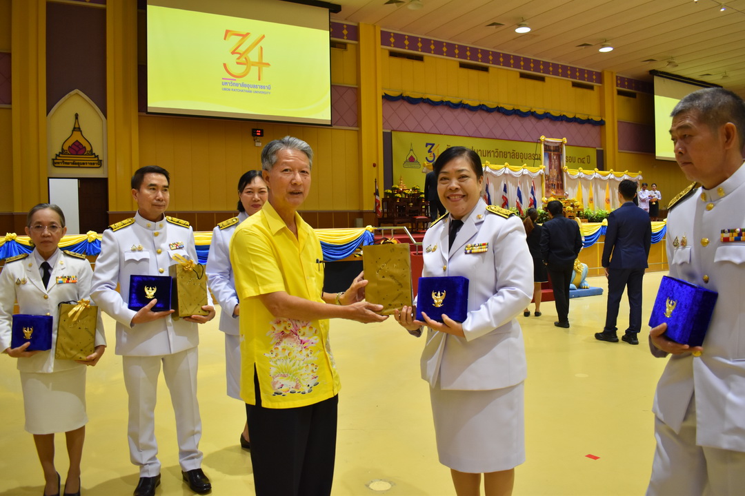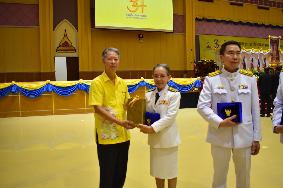 รายละเอียดกิจกรรม : มหาวิทยาลัยอุบลราชธานี (มอบ.) โดย รองศาสตราจารย์ ดร.ชุตินันท์ ประสิทธิ์ภูริปรีชา อธิการบดี มอบหมายให้ ผู้ช่วยศาสตราจารย์ ดร.จารุวรรณ ธนวิรุฬห์ รองอธิการบดีฝ่ายวิชาการ ปฏิบัติราชการแทน เป็นประธานในพิธีรับพระราชทานเครื่องราชอิสริยาภรณ์อันเป็นที่เชิดชูยิ่งช้างเผือก และเครื่องราชอิสริยาภรณ์อันมีเกียรติยศยิ่งมงกุฎไทย ชั้นสายสะพาย ประจำปี 2565 และ ประจำปี 2566 และพร้อมกันนี้ได้มอบโล่เชิดชูเกียรติ เข็มเชิดชูเกียรติ และดอกไม้แสดงความยินดี กับผู้ได้รับรางวัลบุคลากรดีเด่น ประจำปี 2566 ผู้ช่วยศาสตราจารย์ ดร.เกรียงศักดิ์ แก้วกุลชัย รองอธิการบดีฝ่ายบริหาร มอบโล่เชิดชูเกียรติและเงินรางวัล แก่บุคลากรผู้สร้างชื่อเสียงให้กับมหาวิทยาลัยด้านกีฬา และอาจารย์อรรถพงศ์ กาวาฬ รองอธิการบดีฝ่ายบริหารทรัพยากรมนุษย์ มอบของที่ระลึกแสดงความยินดีกับบุคลากรใหม่ เนื่องในโอกาส วันคล้ายวันสถาปนามหาวิทยาลัยอุบลราชธานี ครบรอบ 34 ปีแห่งการก่อตั้ง ณ อาคารเฉลิมพระเกียรติ 7 รอบพระชนมพรรษา มหาวิทยาลัยอุบลราชธานี เมื่อวันที่ 30 กรกฎาคม 2567 ที่ผ่านมา กลุ่มด้านประกันคุณภาพ : 6. การทำนุบำรุงศิลปวัฒนธรรม จำนวน 92 ภาพ |