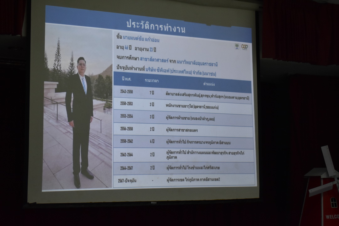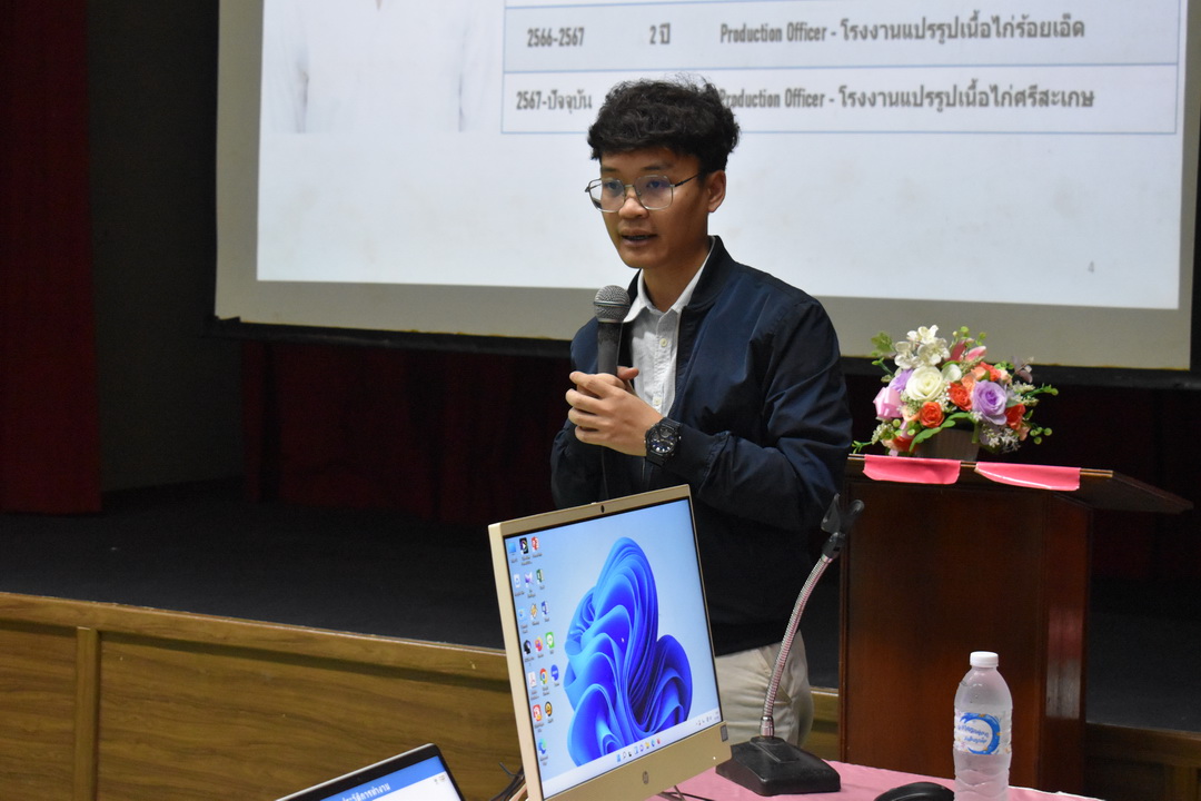 รายละเอียดกิจกรรม : ศิษย์เก่าคณะเกษตรศาสตร์ ได้ร่วมการประกันคุณภาพการศึกษา AUNQA หลักสูตรวิทยาศาสตรบัณฑิต (ปริญญาตรี) เทคโนโลยีการอาหาร พร้อมกับได้พบปะน้องๆ ศิษย์ปัจจุบันเพื่อให้ข้อคิดในการเตรียมตัวเข้าทำงานในอาชีพด้านวิทยาศาสตร์และธุรกิจเกษตรและอาหาร ซึ่งมีพี่มนชัย แก้วอ่อน (Aggie/AnimalSci รุ่น 9) พี่เกรียงไกร พรมสุวรรณ (Aggie รุ่น 26/FoodTech รุ่น 16) พี่ฐิติชยา บุญแน่น (Aggie รุ่น 27/FoodTech รุ่น 17) จากบริษัทในเครือเจริญโภคภัณฑ์ เป็นตัวแทนศิษย์เก่าในกิจกรรมครั้งนี้, 14 พฤศจิกายน 2567 กลุ่มด้านประกันคุณภาพ : 3. กิจกรรมการพัฒนานิสิตนักศึกษา 6. การทำนุบำรุงศิลปวัฒนธรรม จำนวน 31 ภาพ |