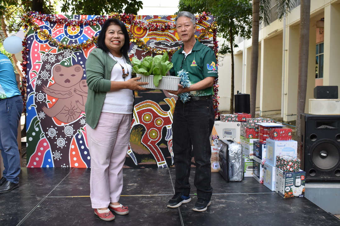 รายละเอียดกิจกรรม : คณะเกษตรศาสตร์ มหาวิทยาลัยอุบลราชธานี ร่วมกิจกรรมส่งท้ายปีเก่าต้อนรับปีใหม่ มีการจับสลากของขวัญและการมอบรางวัลบุคลากรดีเด่นระดับคณะ และรับประทานอาหารร่วมกัน ณ ลานสนามหญ้าข้างอาคารเทคโนโลยีการเกษตร คณะเกษตรศาสตร์ มหาวิทยาลัยอุบลราชธานี, 26 ธันวาคม 2567 กลุ่มด้านประกันคุณภาพ : 6. การทำนุบำรุงศิลปวัฒนธรรม จำนวน 115 ภาพ