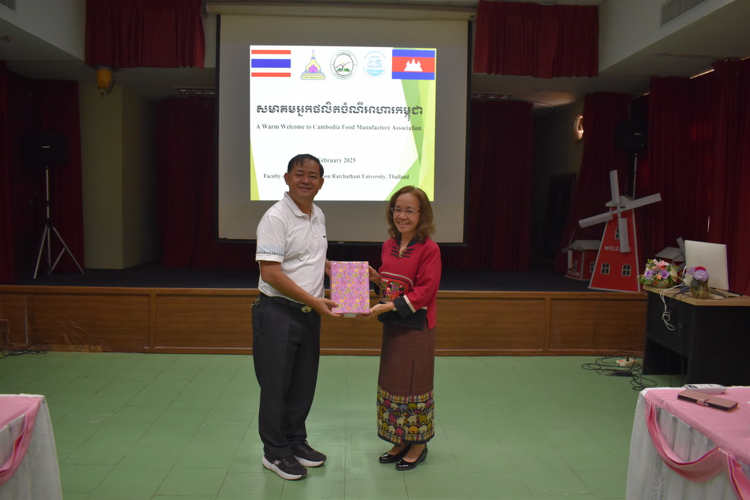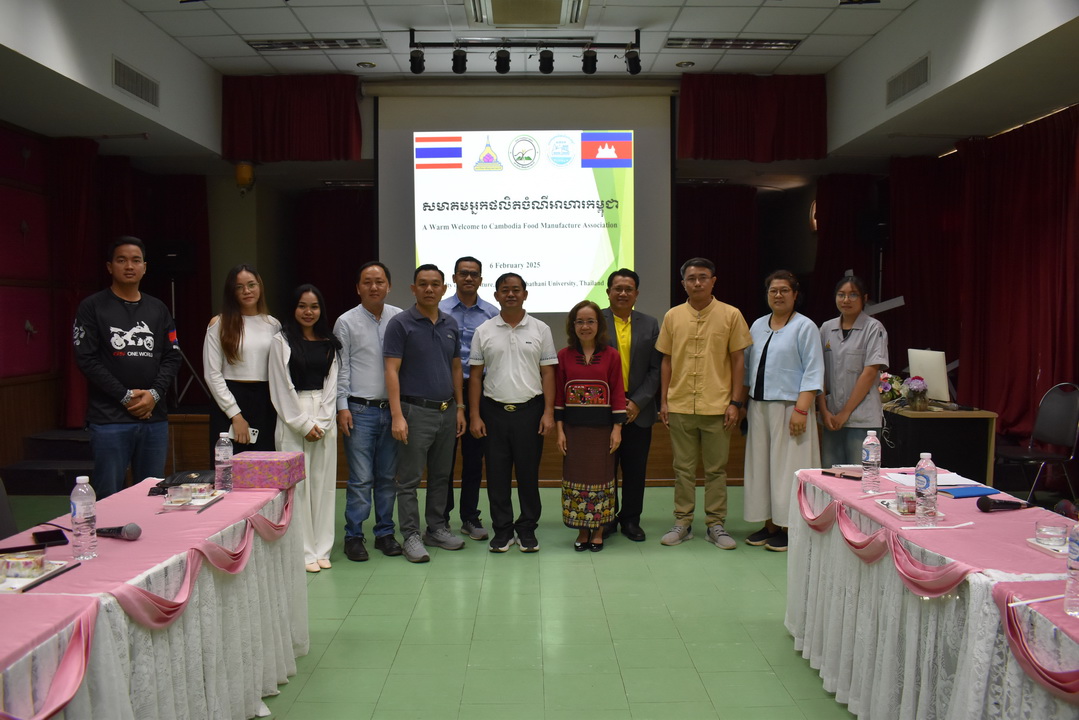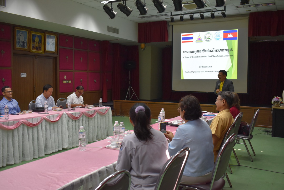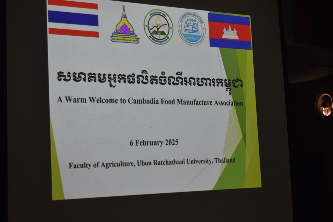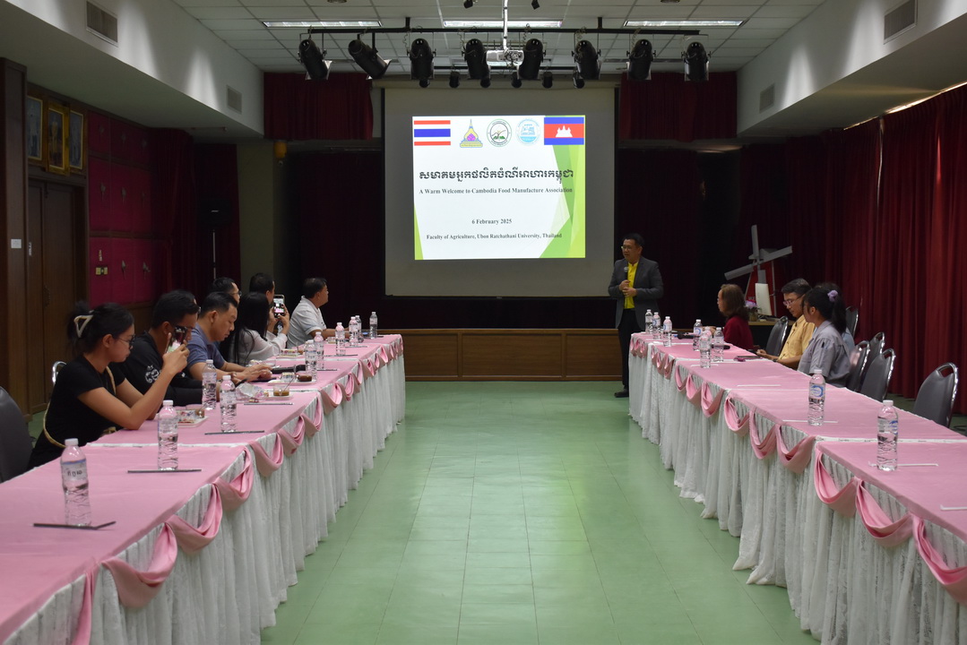 รายละเอียดกิจกรรม : ดร.นรินทร บุญพราหมณ์ คณบดีคณะเกษตรศาสตร์ พร้อมด้วย ผศ.ดร.กาญจนา พยุหะ รองคณบดีฝ่ายวิจัยและวิเทศสัมพันธ์ รศ.ดร.วีรเวทย์ อุทโธ ผู้ช่วยคณบดีฝ่ายนโยบายและแผน ผศ.ดร.เอกสิทธิ์ อ่อนสอาด ดร.เมทินี มาเวียง อาจารย์ประจำสาขาวิชาอุตสาหกรรมเกษตร ให้การต้อนรับ H.E. Meav Soktry ประธานสมาคมผู้ประกอบการอาหารแปรรูป ประเทศกัมพูชา Cambodia Food Manufacture Association พร้อมด้วยสมาชิก ในโอกาสเดินทางมาร่วมแสดงสินค้าและออกร้านจำหน่ายสินค้าอาหารแปรรูปจากประเทศกัมพูชา ในงานเกษตรอีสานใต้ประจำปี 2568, 6 กุมภาพันธ์ 2568 กลุ่มด้านประกันคุณภาพ : 5. การบริการทางวิชาการแก่สังคม จำนวน 132 ภาพ