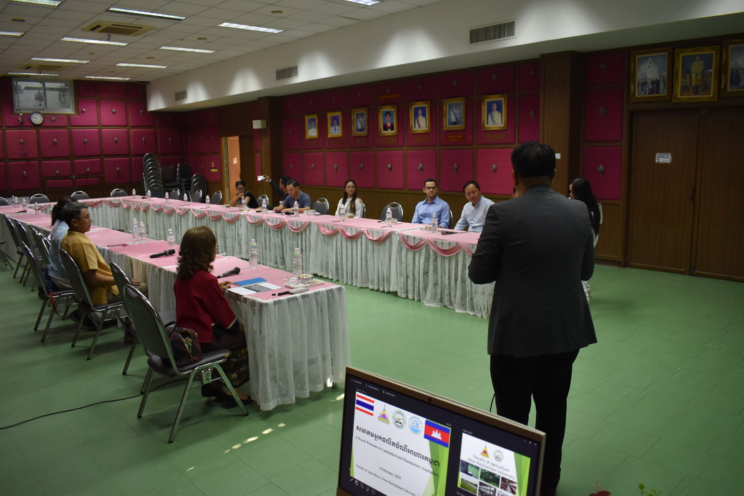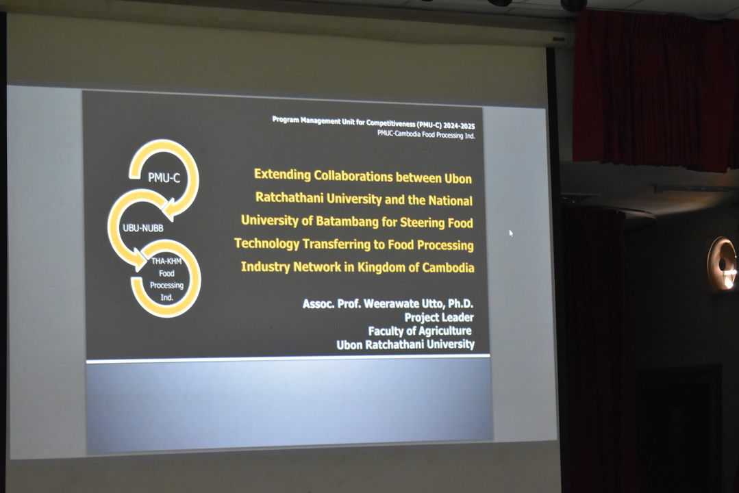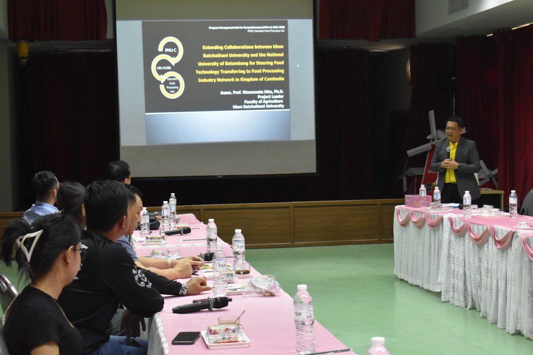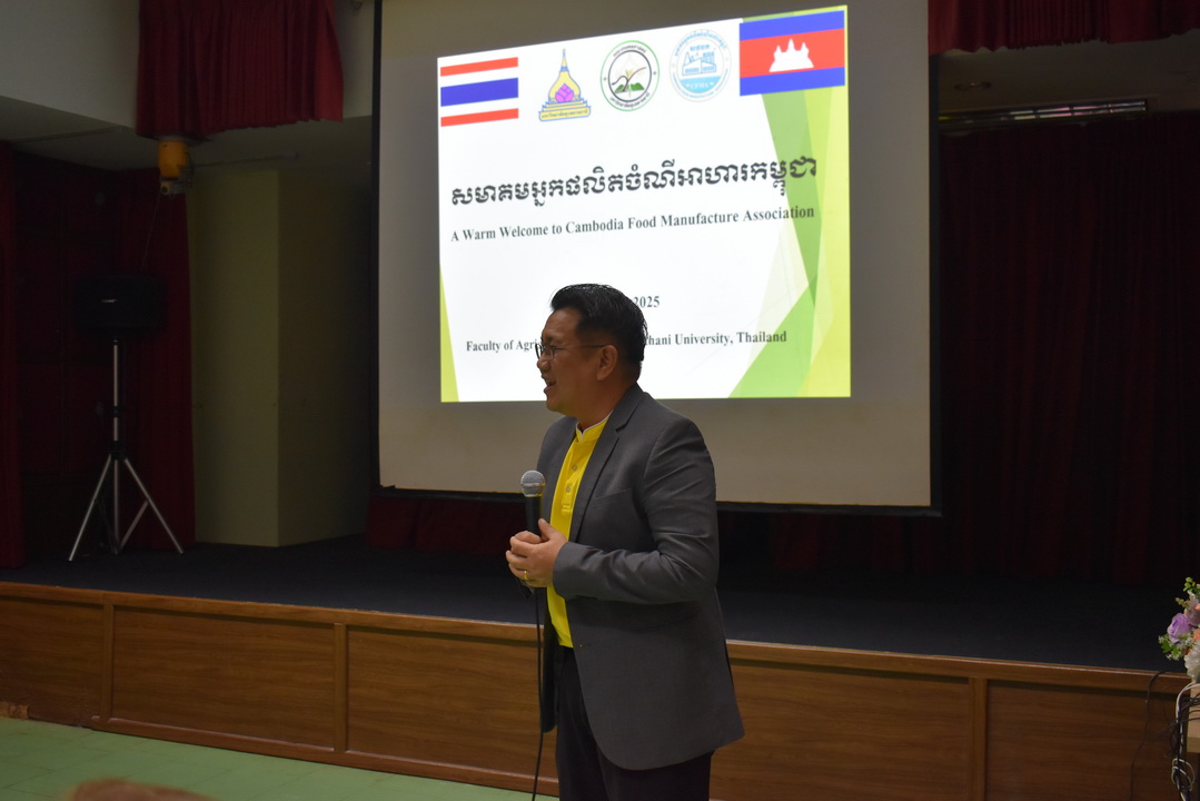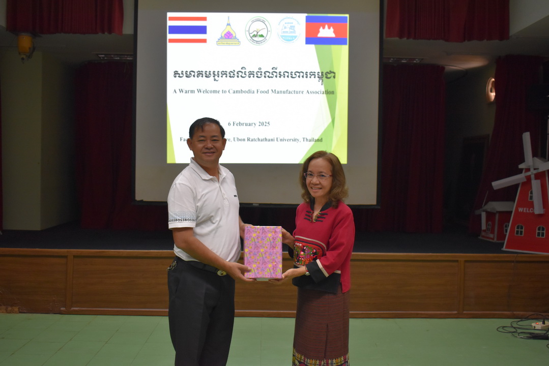 รายละเอียดกิจกรรม : ดร.นรินทร บุญพราหมณ์ คณบดีคณะเกษตรศาสตร์ พร้อมด้วย ผศ.ดร.กาญจนา พยุหะ รองคณบดีฝ่ายวิจัยและวิเทศสัมพันธ์ รศ.ดร.วีรเวทย์ อุทโธ ผู้ช่วยคณบดีฝ่ายนโยบายและแผน ผศ.ดร.เอกสิทธิ์ อ่อนสอาด ดร.เมทินี มาเวียง อาจารย์ประจำสาขาวิชาอุตสาหกรรมเกษตร ให้การต้อนรับ H.E. Meav Soktry ประธานสมาคมผู้ประกอบการอาหารแปรรูป ประเทศกัมพูชา Cambodia Food Manufacture Association พร้อมด้วยสมาชิก ในโอกาสเดินทางมาร่วมแสดงสินค้าและออกร้านจำหน่ายสินค้าอาหารแปรรูปจากประเทศกัมพูชา ในงานเกษตรอีสานใต้ประจำปี 2568, 6 กุมภาพันธ์ 2568 กลุ่มด้านประกันคุณภาพ : 5. การบริการทางวิชาการแก่สังคม จำนวน 132 ภาพ