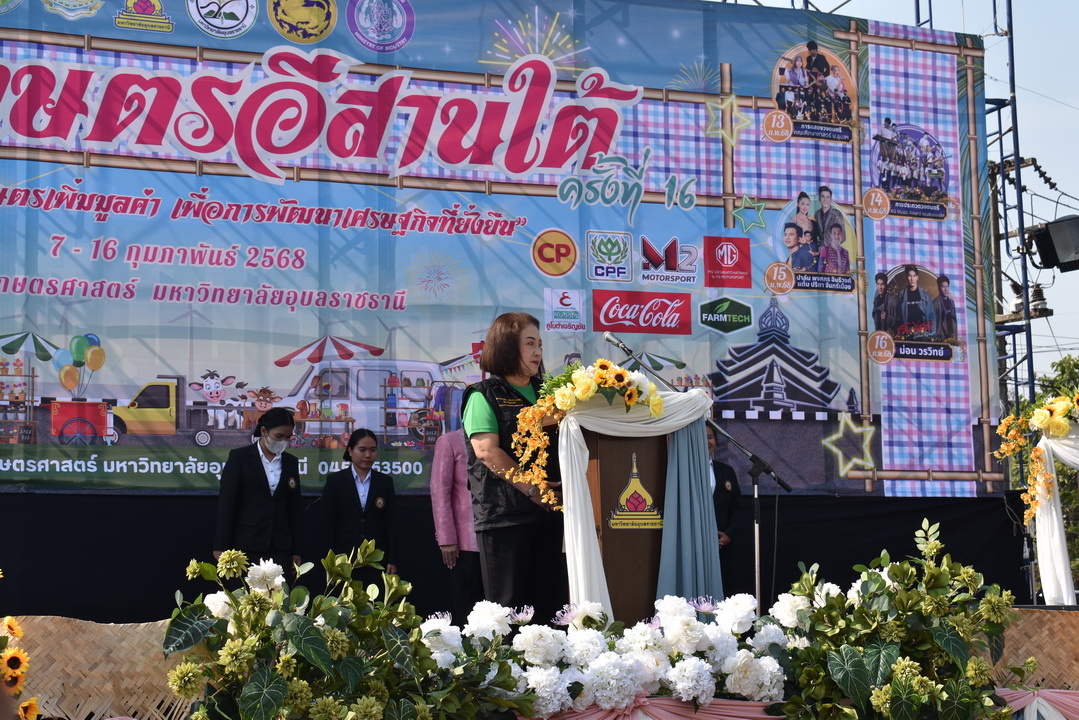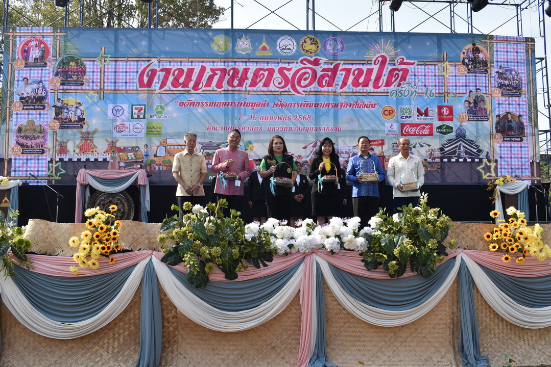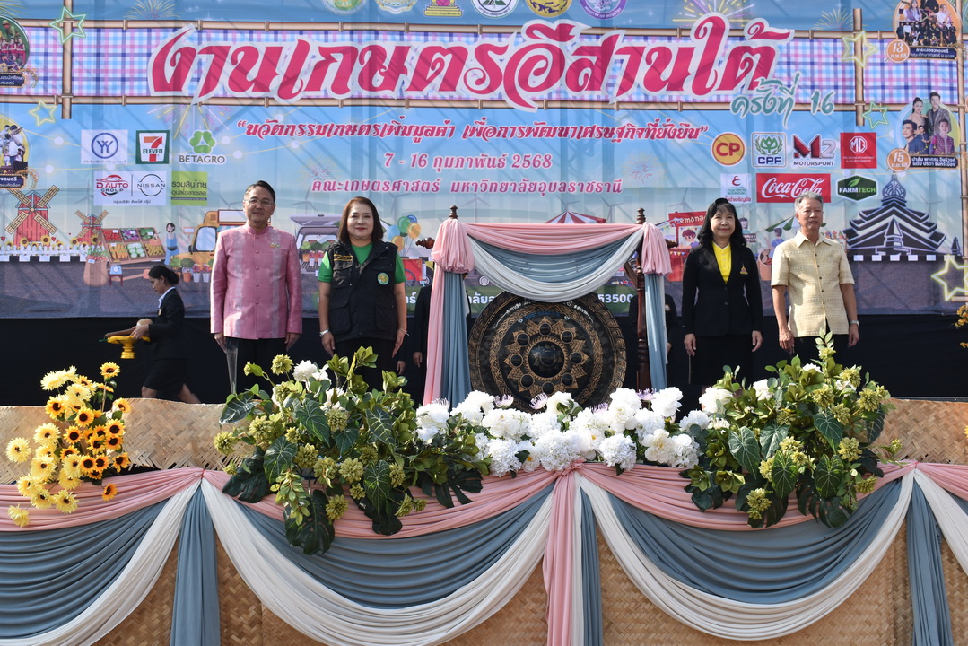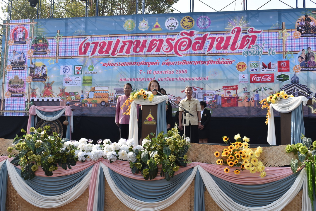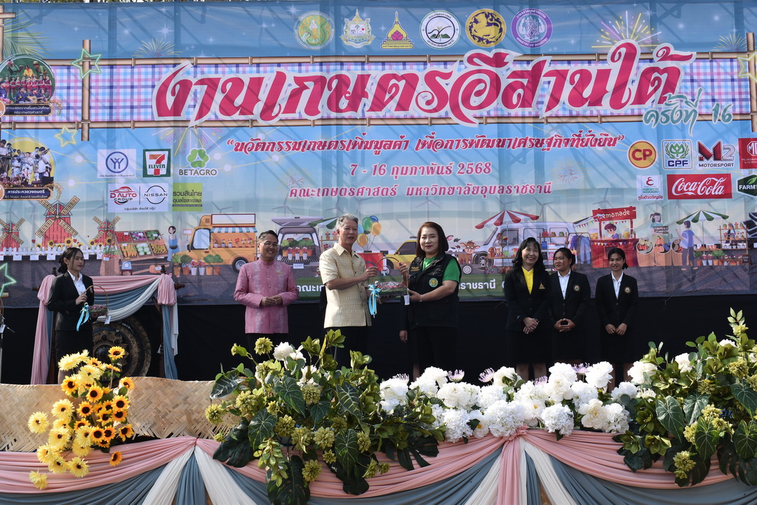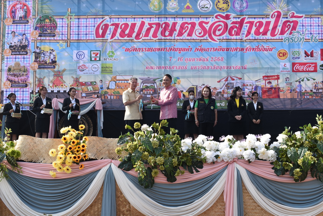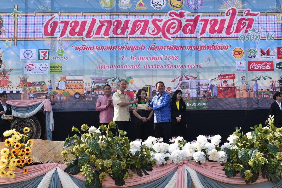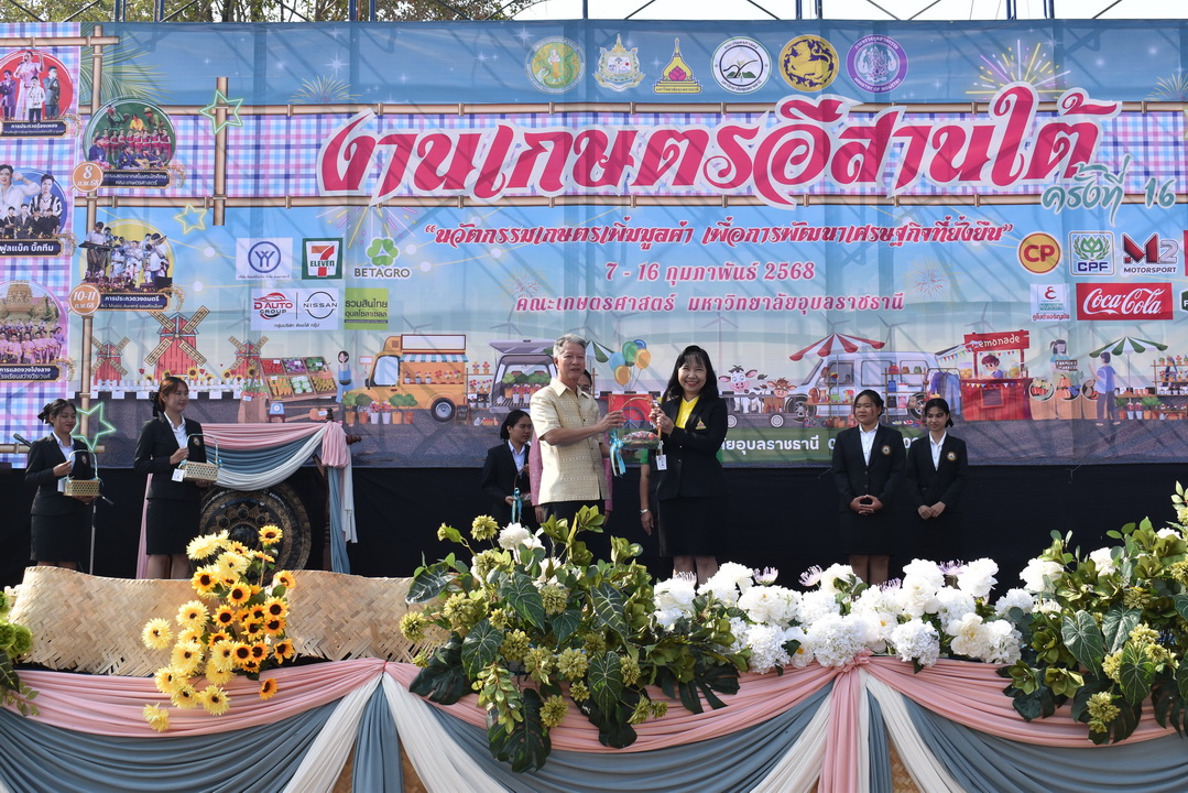 รายละเอียดกิจกรรม : มหาวิทยาลัยอุบลราชธานี โดย คณะเกษตรศาสตร์ ร่วมกับ กระทรวงเกษตรและสหกรณ์ สถาบันการศึกษา กระทรวงสาธารณสุข องค์กรปกครองส่วนท้องถิ่น ตลอดจนภาคเอกชน ร่วมจัดงานเกษตรอีสานใต้ ประจำปี 2568 ครั้งที่ 16 ภายใต้แนวคิด "นวัตกรรมเกษตรเพิ่มมูลค่า เพื่อการพัฒนาเศรษฐกิจที่ยั่งยืน" ระหว่างวันที่ 7-16 กุมภาพันธ์ 2568 ณ คณะเกษตรศาสตร์ มหาวิทยาลัยอุบลราชธานี โดยมี ดร.ณมาณิตา กลับบ้านเกาะ ผู้ช่วยรัฐมนตรีว่าการกระทรวงเกษตรและสหกรณ์ ให้เกียรติเป็นประธานและมอบโล่เกียรติคุณผู้ให้การสนับสนุนการจัดงาน ร้อยตรีสรมงคล มงคละสิริ รองผู้ว่าราชการจังหวัดอุบลราชธานี กล่าวต้อนรับ รศ.ดร.ชุตินันท์ ประสิทธิ์ภูริปรีชา อธิการบดีมหาวิทยาลัยอุบลราชธานี กล่าวรายงาน ดร.นรินทร บุญพราหมณ์ คณบดีคณะเกษตรศาสตร์ มอบของที่ระลึกครั้งนี้, 7 กุมภาพันธ์ 2568 กลุ่มด้านประกันคุณภาพ : 5. การบริการทางวิชาการแก่สังคม จำนวน 96 ภาพ