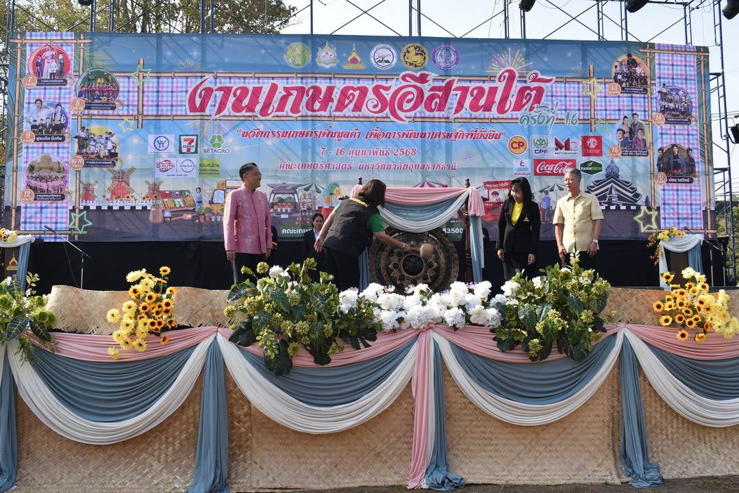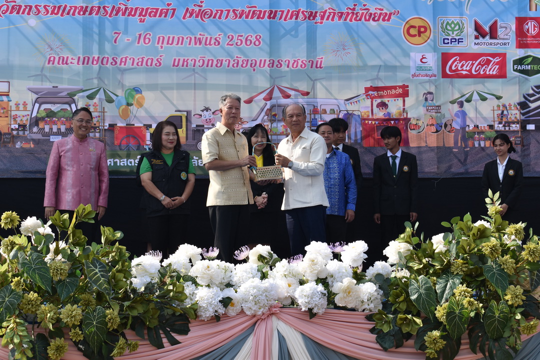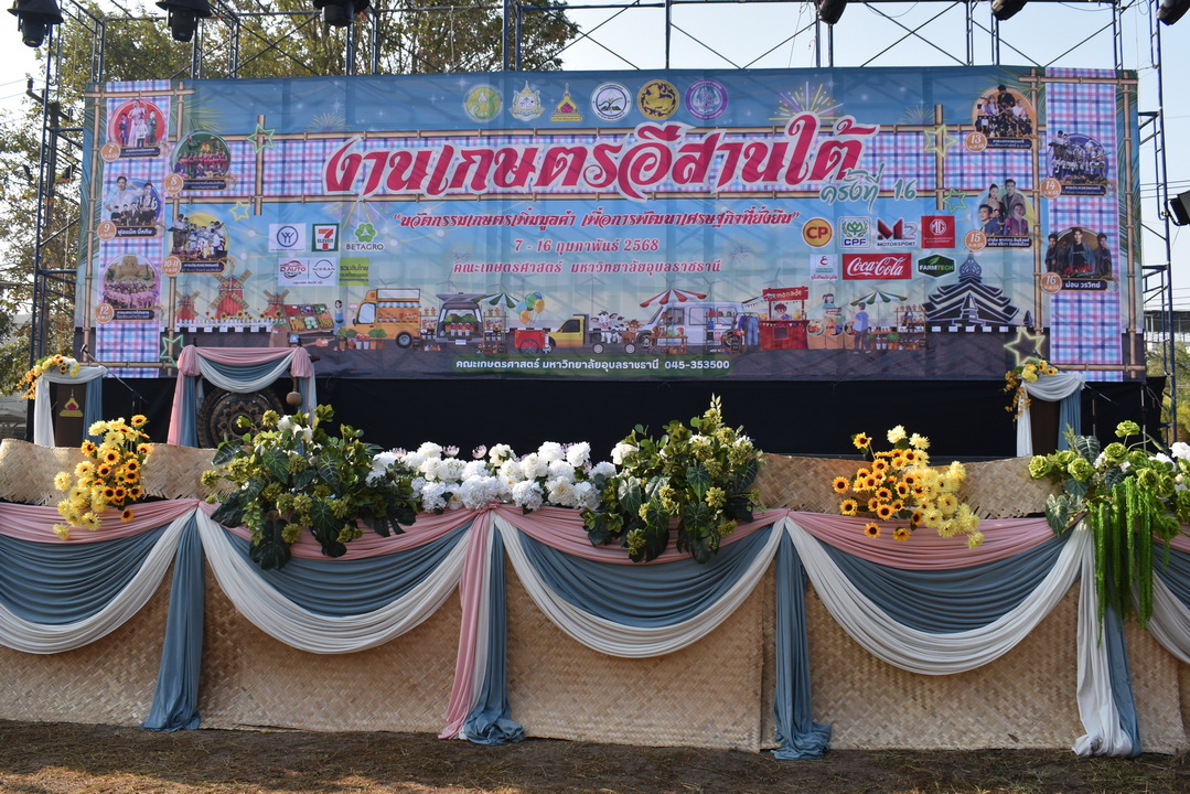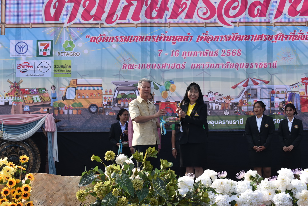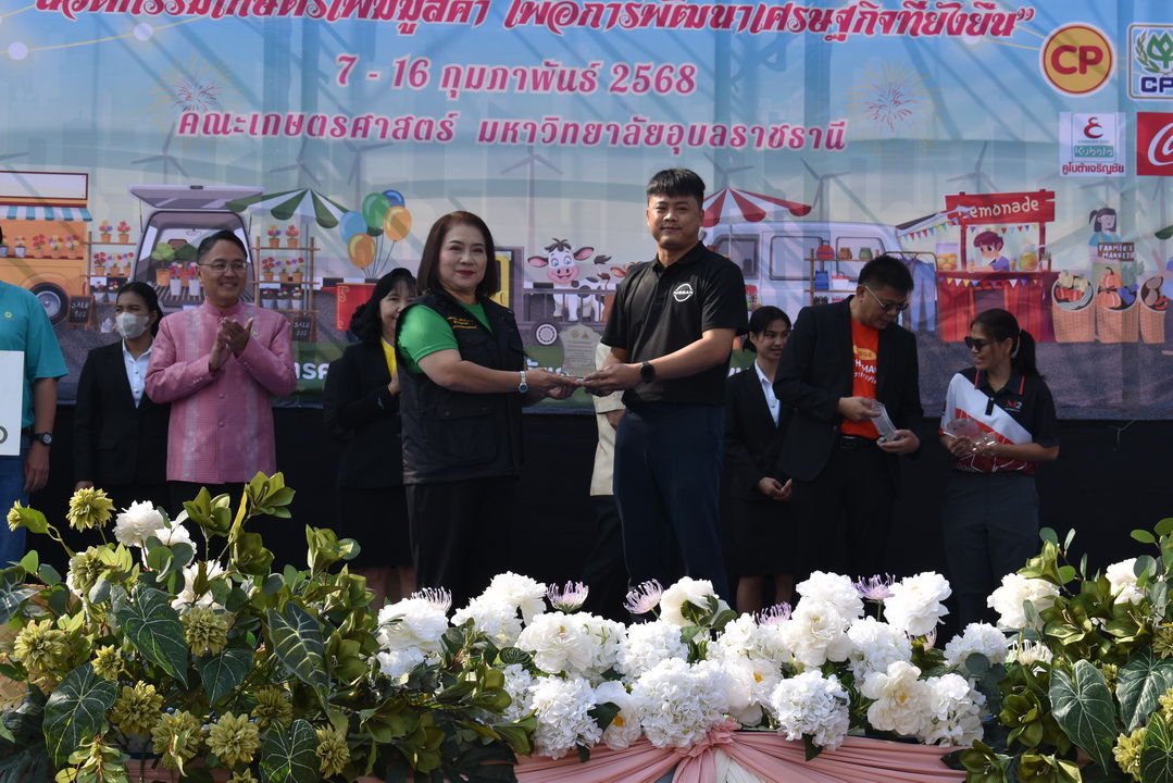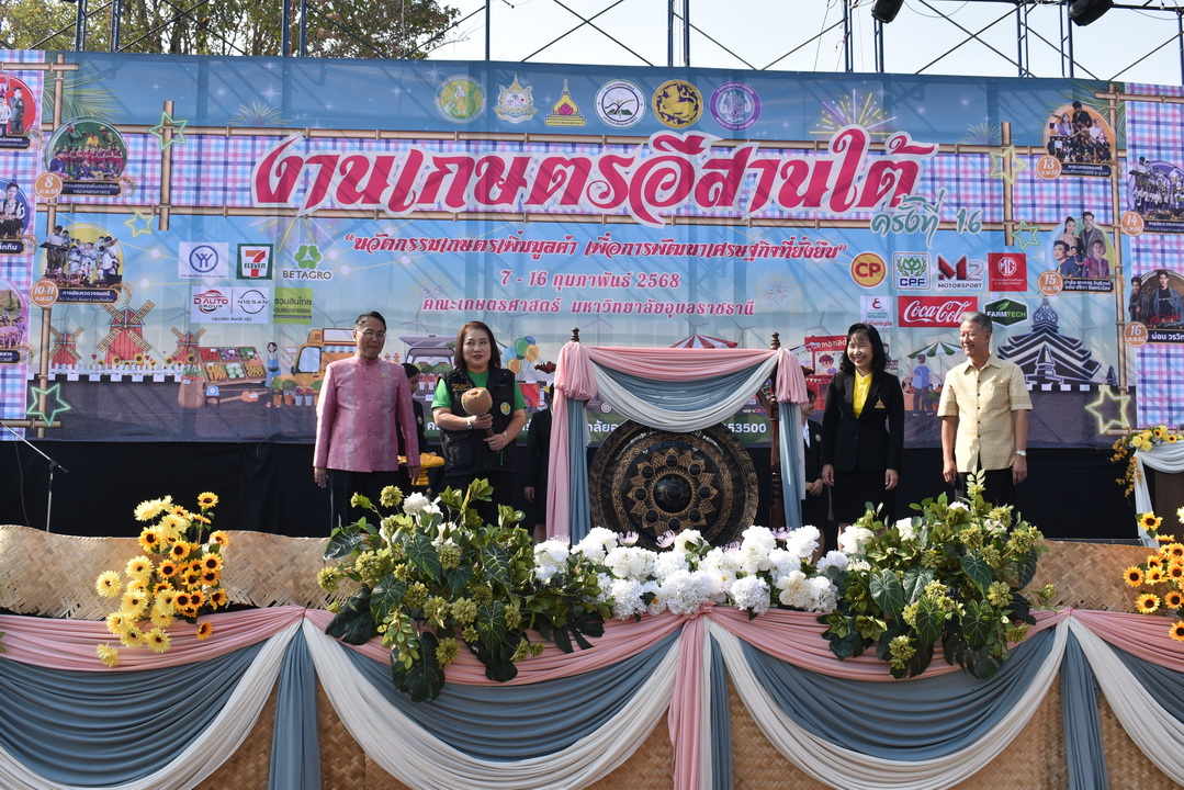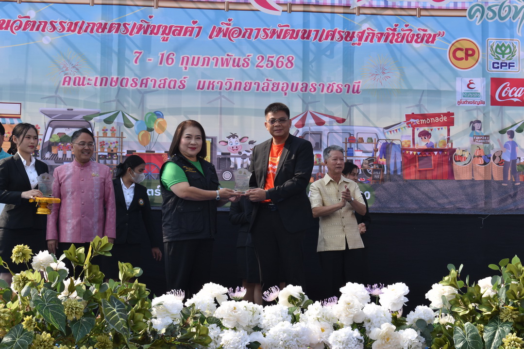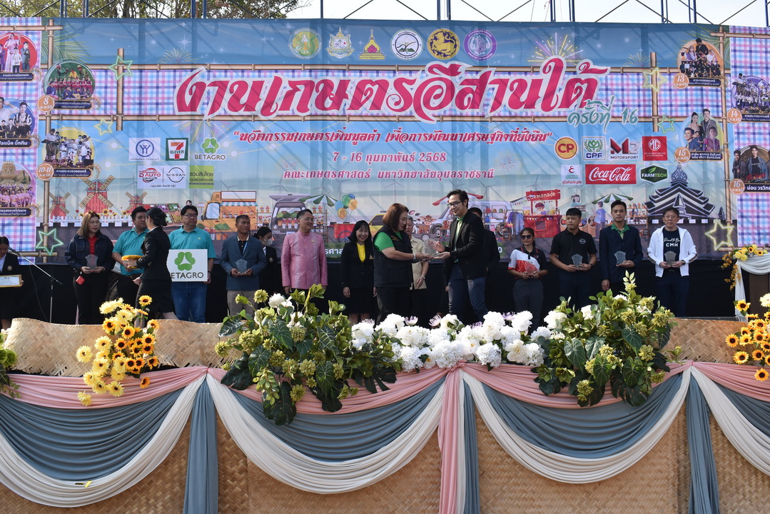 รายละเอียดกิจกรรม : มหาวิทยาลัยอุบลราชธานี โดย คณะเกษตรศาสตร์ ร่วมกับ กระทรวงเกษตรและสหกรณ์ สถาบันการศึกษา กระทรวงสาธารณสุข องค์กรปกครองส่วนท้องถิ่น ตลอดจนภาคเอกชน ร่วมจัดงานเกษตรอีสานใต้ ประจำปี 2568 ครั้งที่ 16 ภายใต้แนวคิด "นวัตกรรมเกษตรเพิ่มมูลค่า เพื่อการพัฒนาเศรษฐกิจที่ยั่งยืน" ระหว่างวันที่ 7-16 กุมภาพันธ์ 2568 ณ คณะเกษตรศาสตร์ มหาวิทยาลัยอุบลราชธานี โดยมี ดร.ณมาณิตา กลับบ้านเกาะ ผู้ช่วยรัฐมนตรีว่าการกระทรวงเกษตรและสหกรณ์ ให้เกียรติเป็นประธานและมอบโล่เกียรติคุณผู้ให้การสนับสนุนการจัดงาน ร้อยตรีสรมงคล มงคละสิริ รองผู้ว่าราชการจังหวัดอุบลราชธานี กล่าวต้อนรับ รศ.ดร.ชุตินันท์ ประสิทธิ์ภูริปรีชา อธิการบดีมหาวิทยาลัยอุบลราชธานี กล่าวรายงาน ดร.นรินทร บุญพราหมณ์ คณบดีคณะเกษตรศาสตร์ มอบของที่ระลึกครั้งนี้, 7 กุมภาพันธ์ 2568 กลุ่มด้านประกันคุณภาพ : 5. การบริการทางวิชาการแก่สังคม จำนวน 96 ภาพ