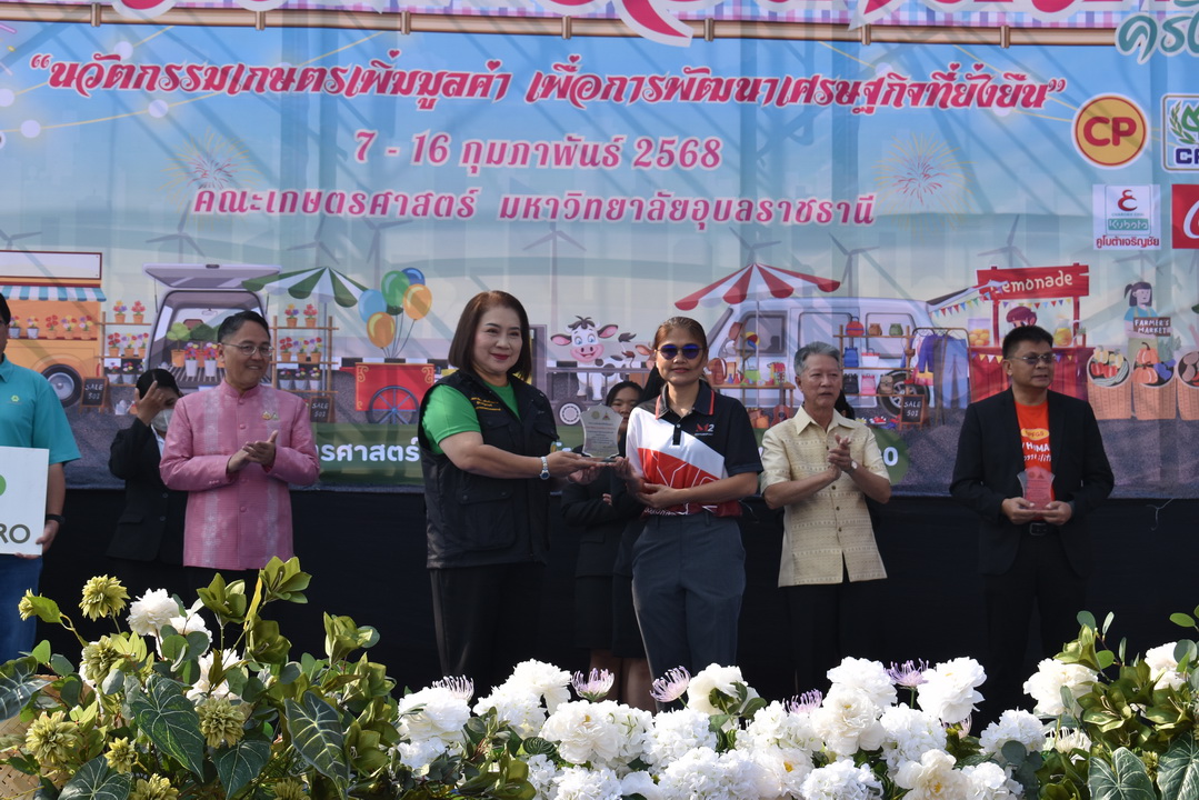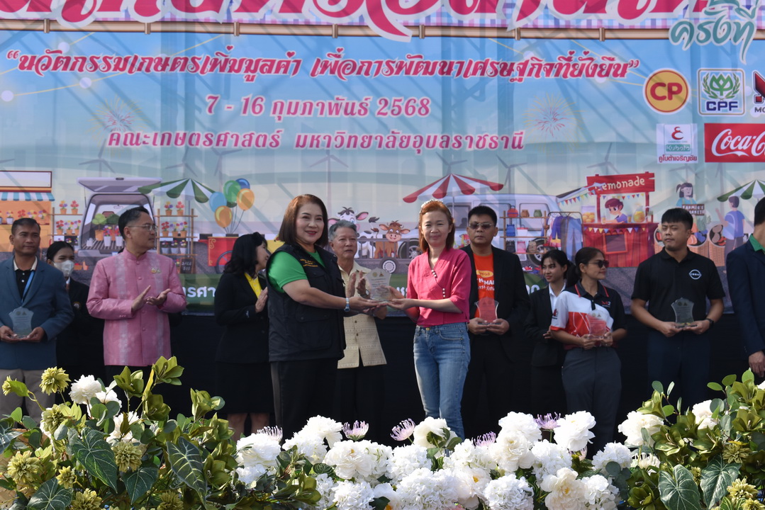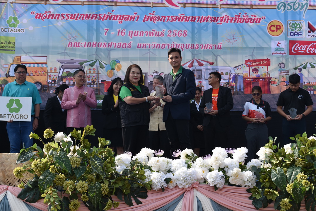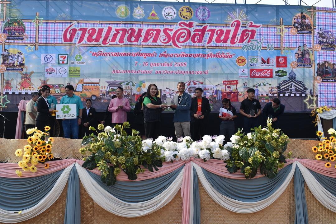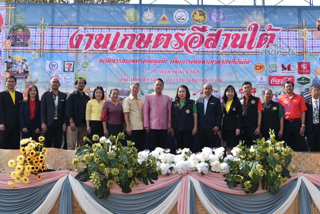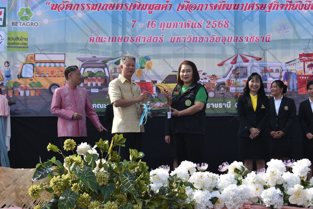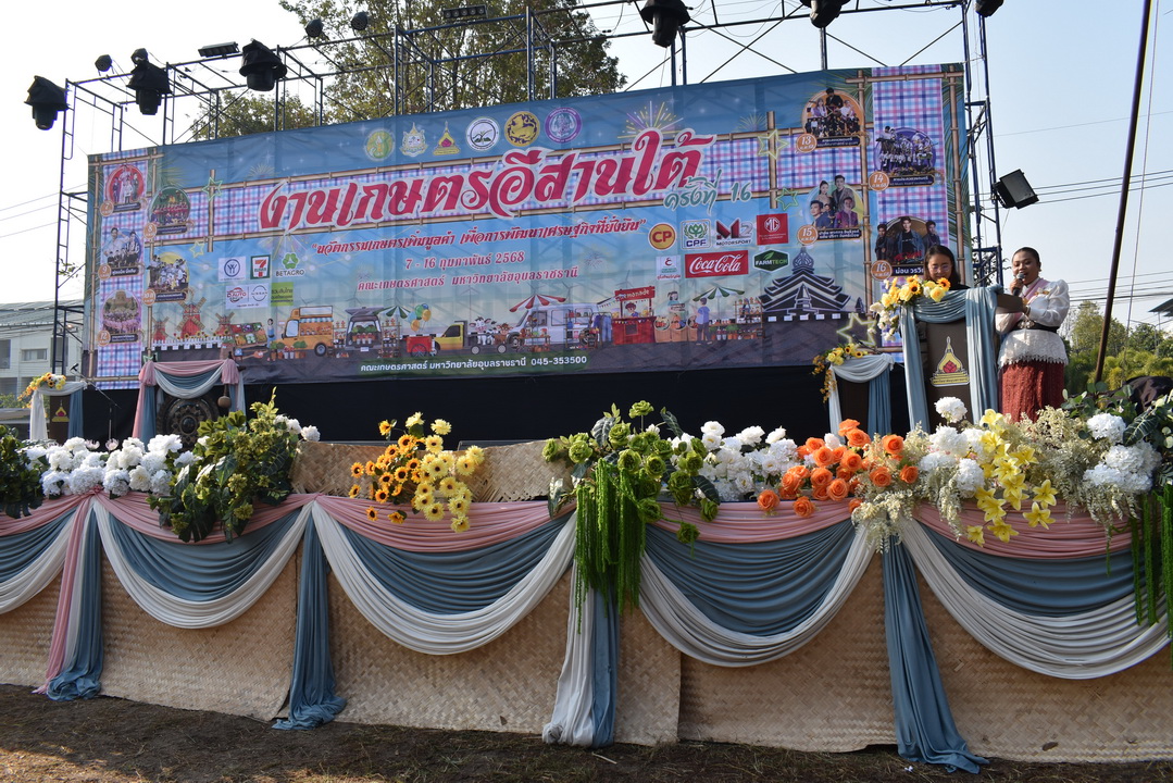 รายละเอียดกิจกรรม : มหาวิทยาลัยอุบลราชธานี โดย คณะเกษตรศาสตร์ ร่วมกับ กระทรวงเกษตรและสหกรณ์ สถาบันการศึกษา กระทรวงสาธารณสุข องค์กรปกครองส่วนท้องถิ่น ตลอดจนภาคเอกชน ร่วมจัดงานเกษตรอีสานใต้ ประจำปี 2568 ครั้งที่ 16 ภายใต้แนวคิด "นวัตกรรมเกษตรเพิ่มมูลค่า เพื่อการพัฒนาเศรษฐกิจที่ยั่งยืน" ระหว่างวันที่ 7-16 กุมภาพันธ์ 2568 ณ คณะเกษตรศาสตร์ มหาวิทยาลัยอุบลราชธานี โดยมี ดร.ณมาณิตา กลับบ้านเกาะ ผู้ช่วยรัฐมนตรีว่าการกระทรวงเกษตรและสหกรณ์ ให้เกียรติเป็นประธานและมอบโล่เกียรติคุณผู้ให้การสนับสนุนการจัดงาน ร้อยตรีสรมงคล มงคละสิริ รองผู้ว่าราชการจังหวัดอุบลราชธานี กล่าวต้อนรับ รศ.ดร.ชุตินันท์ ประสิทธิ์ภูริปรีชา อธิการบดีมหาวิทยาลัยอุบลราชธานี กล่าวรายงาน ดร.นรินทร บุญพราหมณ์ คณบดีคณะเกษตรศาสตร์ มอบของที่ระลึกครั้งนี้, 7 กุมภาพันธ์ 2568 กลุ่มด้านประกันคุณภาพ : 5. การบริการทางวิชาการแก่สังคม จำนวน 96 ภาพ
