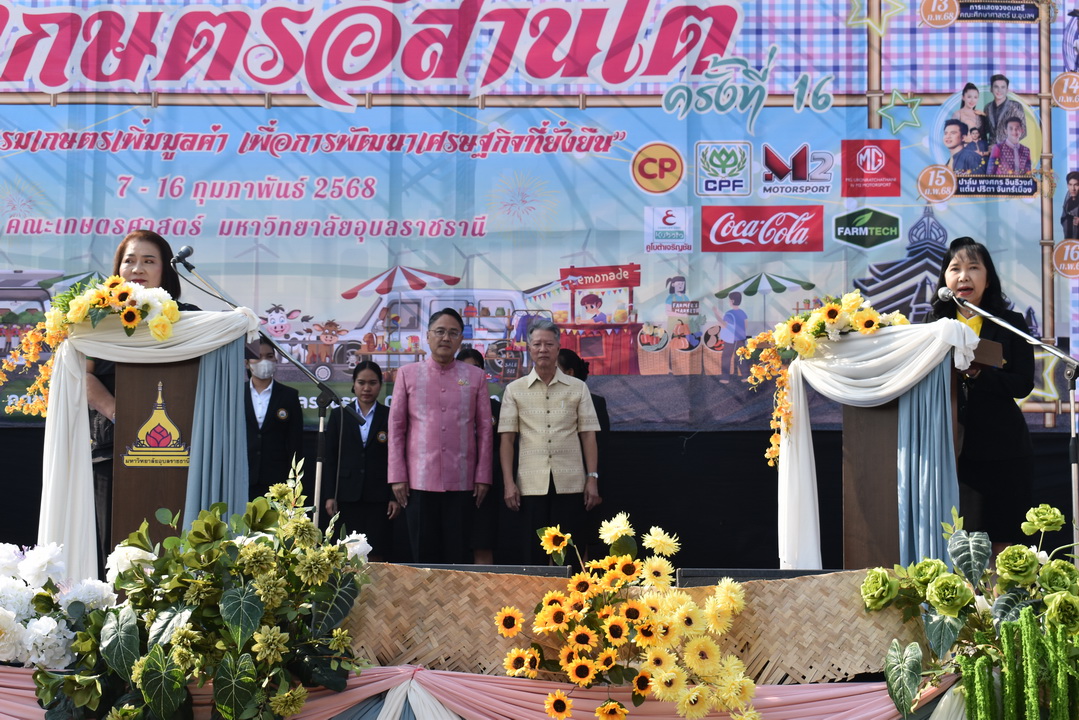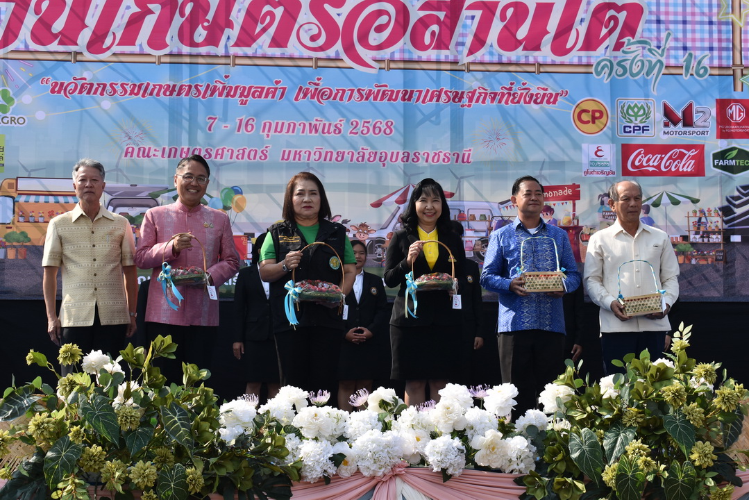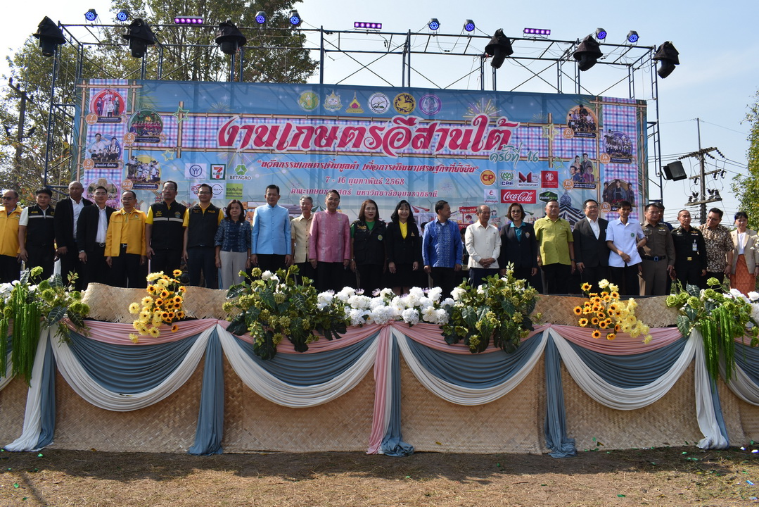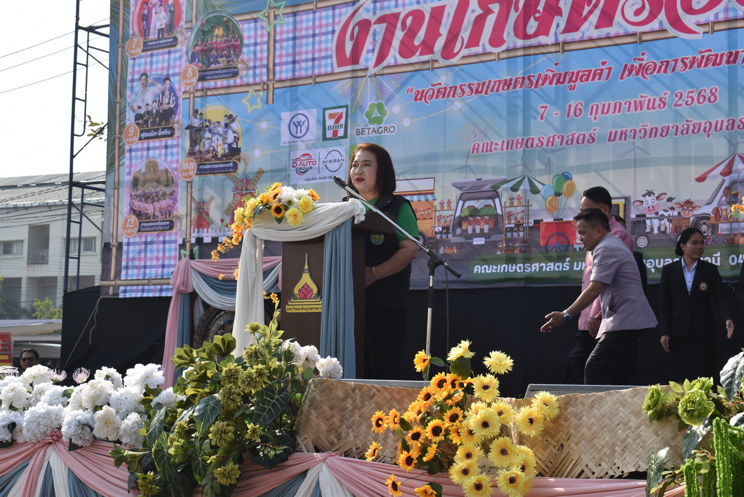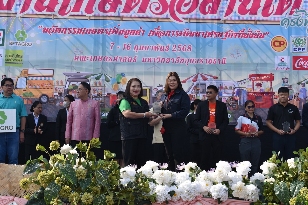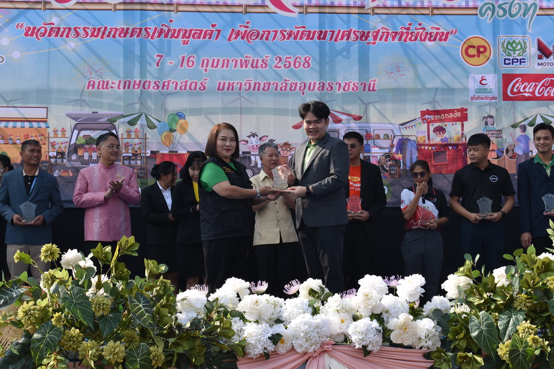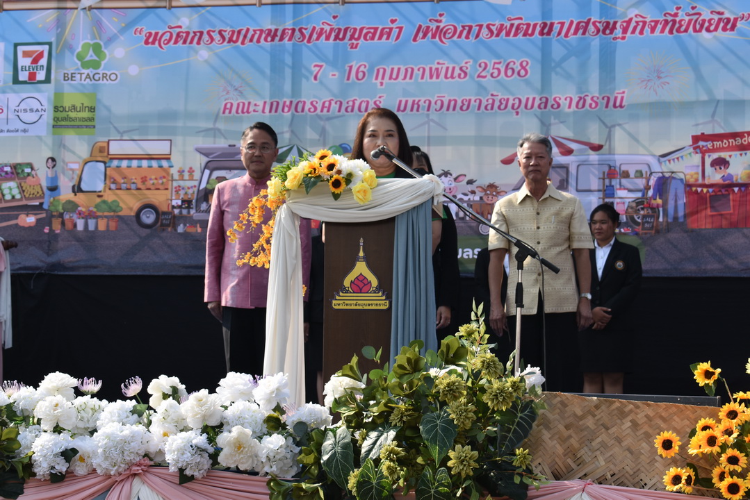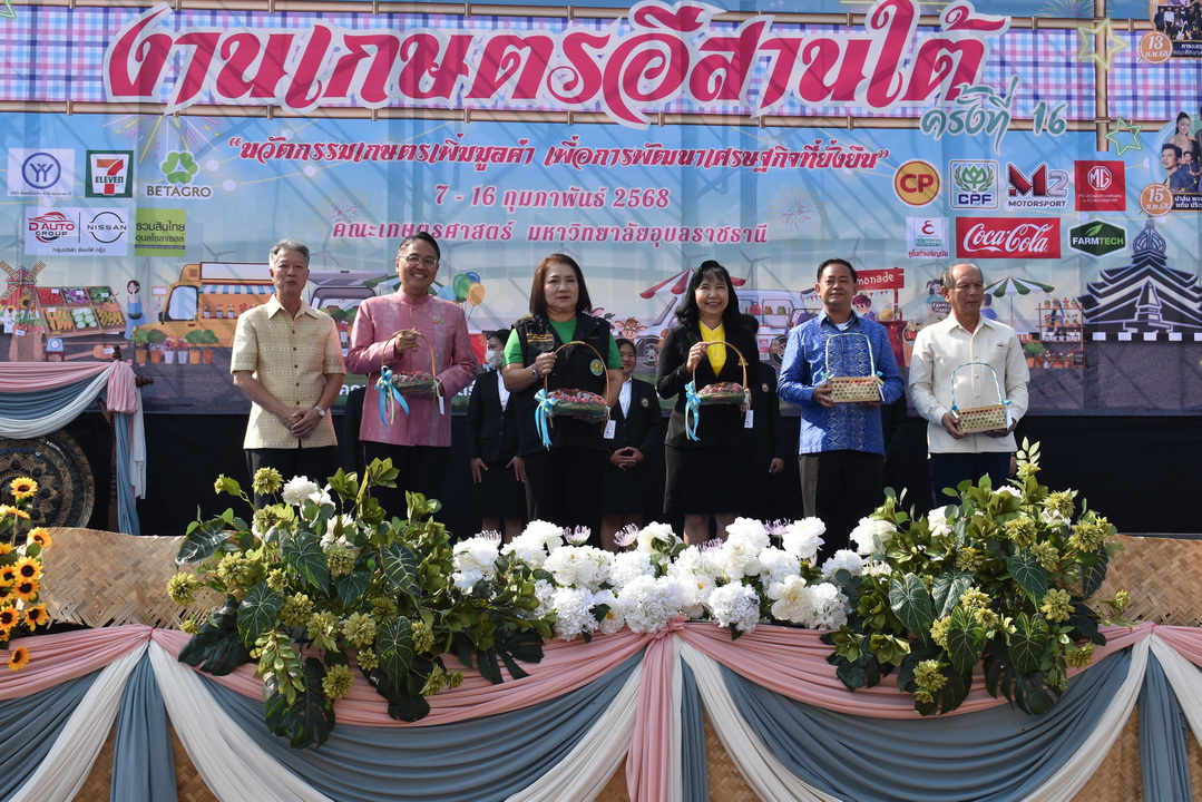 รายละเอียดกิจกรรม : มหาวิทยาลัยอุบลราชธานี โดย คณะเกษตรศาสตร์ ร่วมกับ กระทรวงเกษตรและสหกรณ์ สถาบันการศึกษา กระทรวงสาธารณสุข องค์กรปกครองส่วนท้องถิ่น ตลอดจนภาคเอกชน ร่วมจัดงานเกษตรอีสานใต้ ประจำปี 2568 ครั้งที่ 16 ภายใต้แนวคิด "นวัตกรรมเกษตรเพิ่มมูลค่า เพื่อการพัฒนาเศรษฐกิจที่ยั่งยืน" ระหว่างวันที่ 7-16 กุมภาพันธ์ 2568 ณ คณะเกษตรศาสตร์ มหาวิทยาลัยอุบลราชธานี โดยมี ดร.ณมาณิตา กลับบ้านเกาะ ผู้ช่วยรัฐมนตรีว่าการกระทรวงเกษตรและสหกรณ์ ให้เกียรติเป็นประธานและมอบโล่เกียรติคุณผู้ให้การสนับสนุนการจัดงาน ร้อยตรีสรมงคล มงคละสิริ รองผู้ว่าราชการจังหวัดอุบลราชธานี กล่าวต้อนรับ รศ.ดร.ชุตินันท์ ประสิทธิ์ภูริปรีชา อธิการบดีมหาวิทยาลัยอุบลราชธานี กล่าวรายงาน ดร.นรินทร บุญพราหมณ์ คณบดีคณะเกษตรศาสตร์ มอบของที่ระลึกครั้งนี้, 7 กุมภาพันธ์ 2568 กลุ่มด้านประกันคุณภาพ : 5. การบริการทางวิชาการแก่สังคม จำนวน 96 ภาพ
