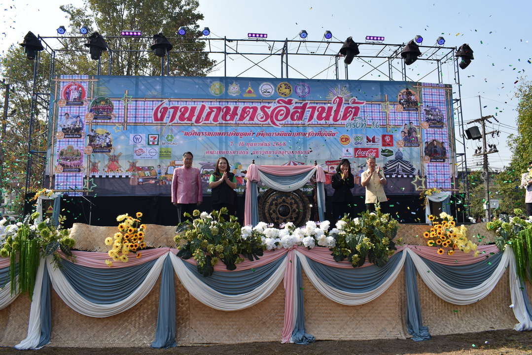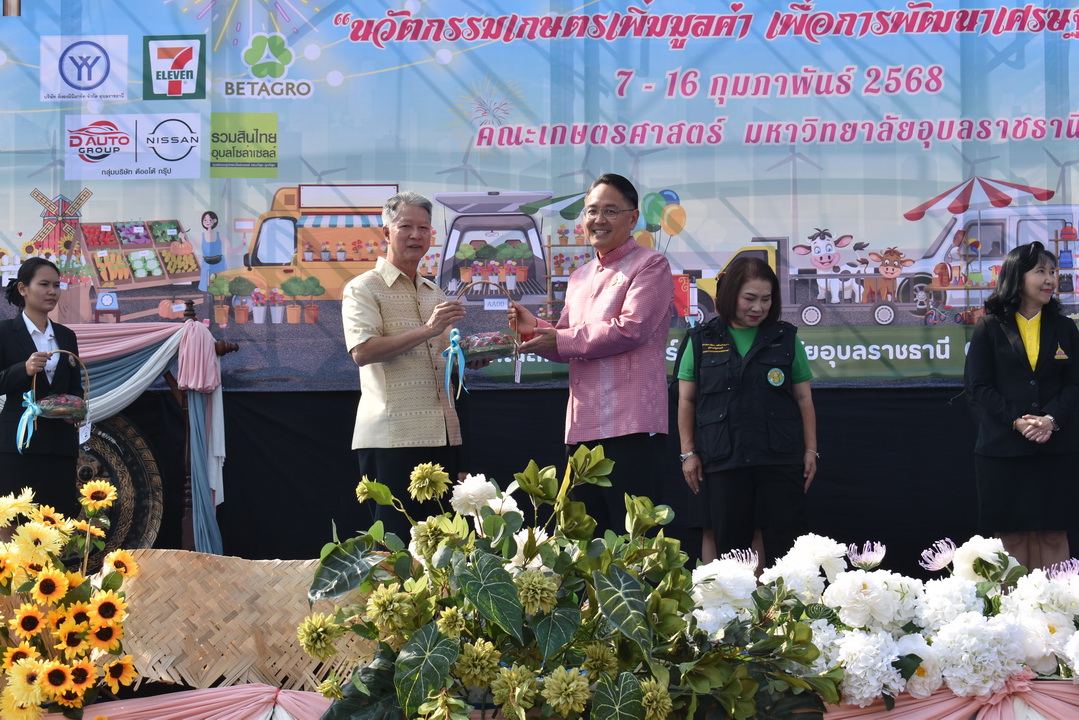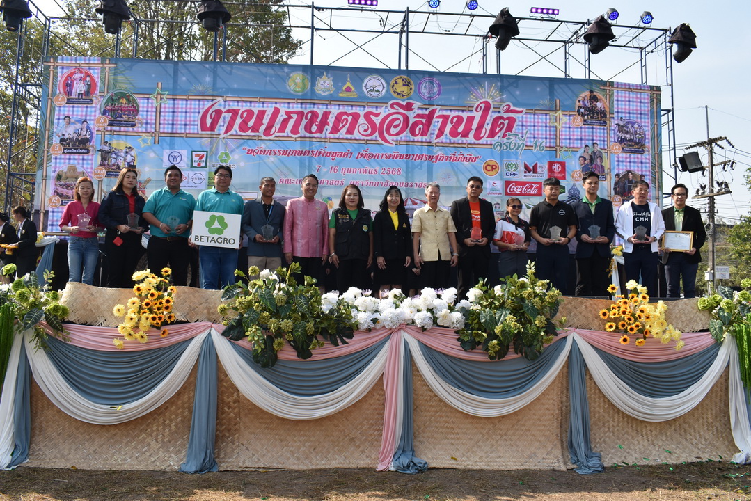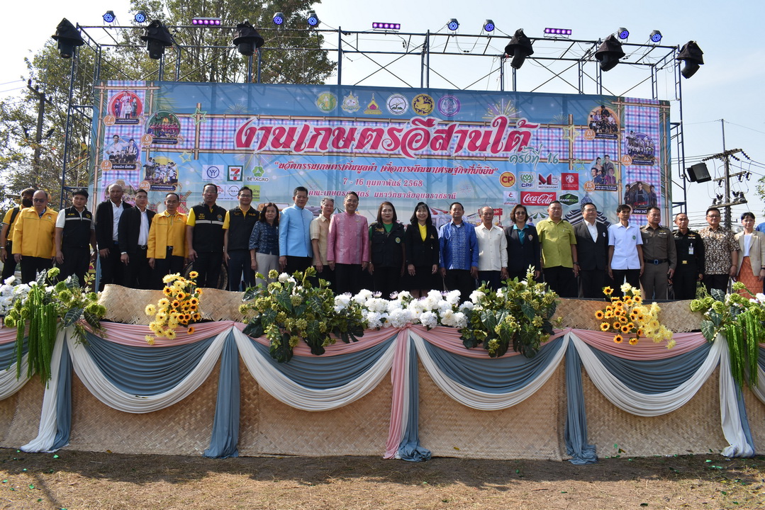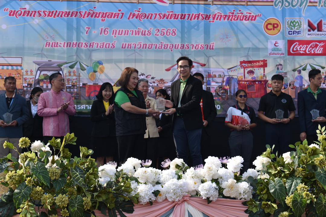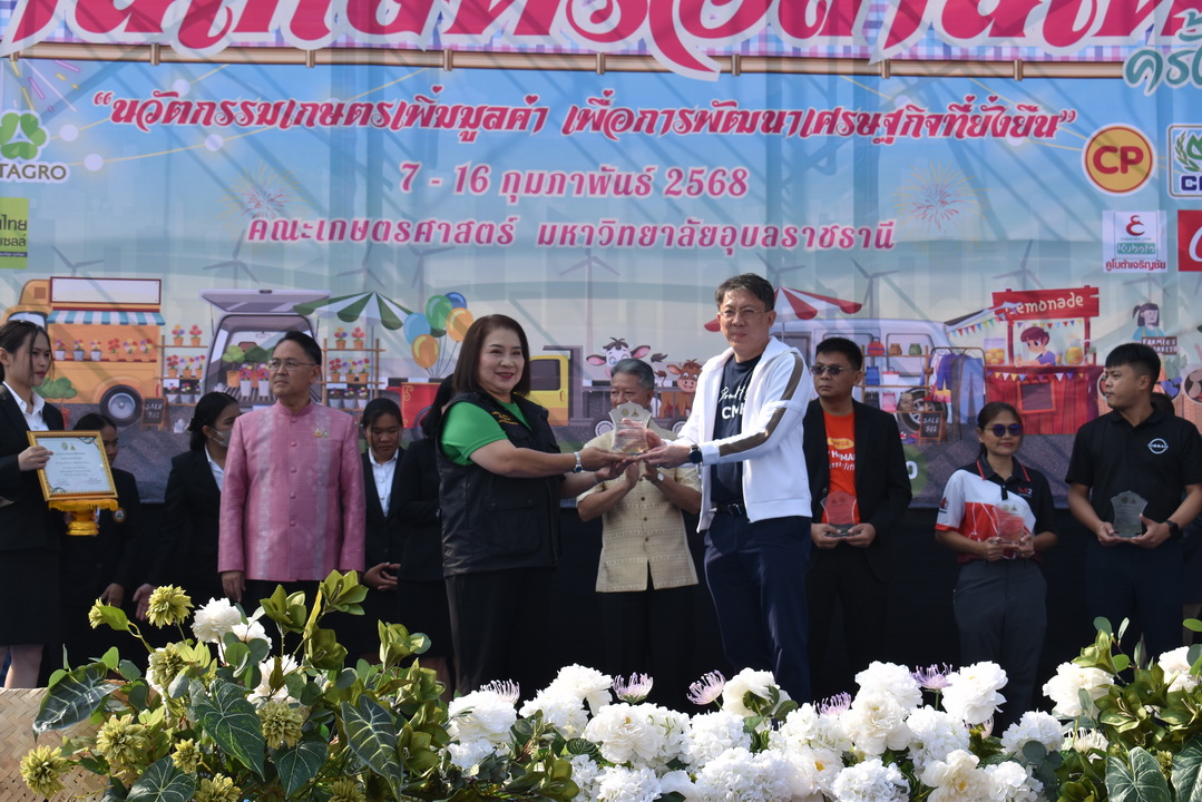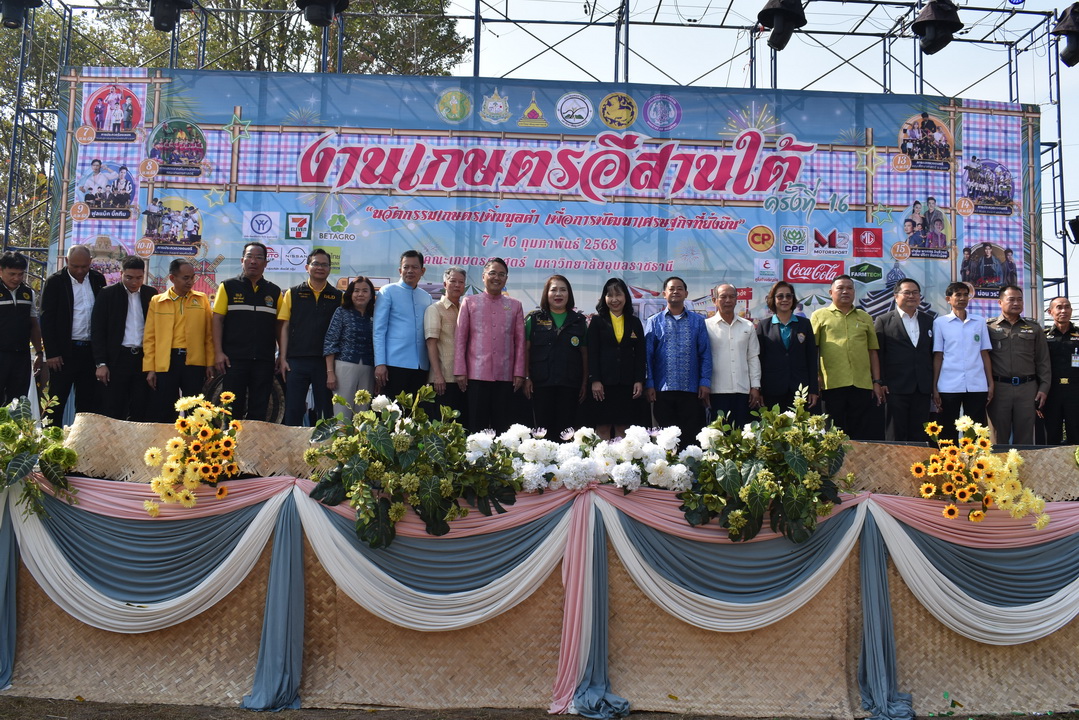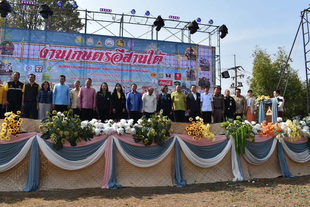 รายละเอียดกิจกรรม : มหาวิทยาลัยอุบลราชธานี โดย คณะเกษตรศาสตร์ ร่วมกับ กระทรวงเกษตรและสหกรณ์ สถาบันการศึกษา กระทรวงสาธารณสุข องค์กรปกครองส่วนท้องถิ่น ตลอดจนภาคเอกชน ร่วมจัดงานเกษตรอีสานใต้ ประจำปี 2568 ครั้งที่ 16 ภายใต้แนวคิด "นวัตกรรมเกษตรเพิ่มมูลค่า เพื่อการพัฒนาเศรษฐกิจที่ยั่งยืน" ระหว่างวันที่ 7-16 กุมภาพันธ์ 2568 ณ คณะเกษตรศาสตร์ มหาวิทยาลัยอุบลราชธานี โดยมี ดร.ณมาณิตา กลับบ้านเกาะ ผู้ช่วยรัฐมนตรีว่าการกระทรวงเกษตรและสหกรณ์ ให้เกียรติเป็นประธานและมอบโล่เกียรติคุณผู้ให้การสนับสนุนการจัดงาน ร้อยตรีสรมงคล มงคละสิริ รองผู้ว่าราชการจังหวัดอุบลราชธานี กล่าวต้อนรับ รศ.ดร.ชุตินันท์ ประสิทธิ์ภูริปรีชา อธิการบดีมหาวิทยาลัยอุบลราชธานี กล่าวรายงาน ดร.นรินทร บุญพราหมณ์ คณบดีคณะเกษตรศาสตร์ มอบของที่ระลึกครั้งนี้, 7 กุมภาพันธ์ 2568 กลุ่มด้านประกันคุณภาพ : 5. การบริการทางวิชาการแก่สังคม จำนวน 96 ภาพ