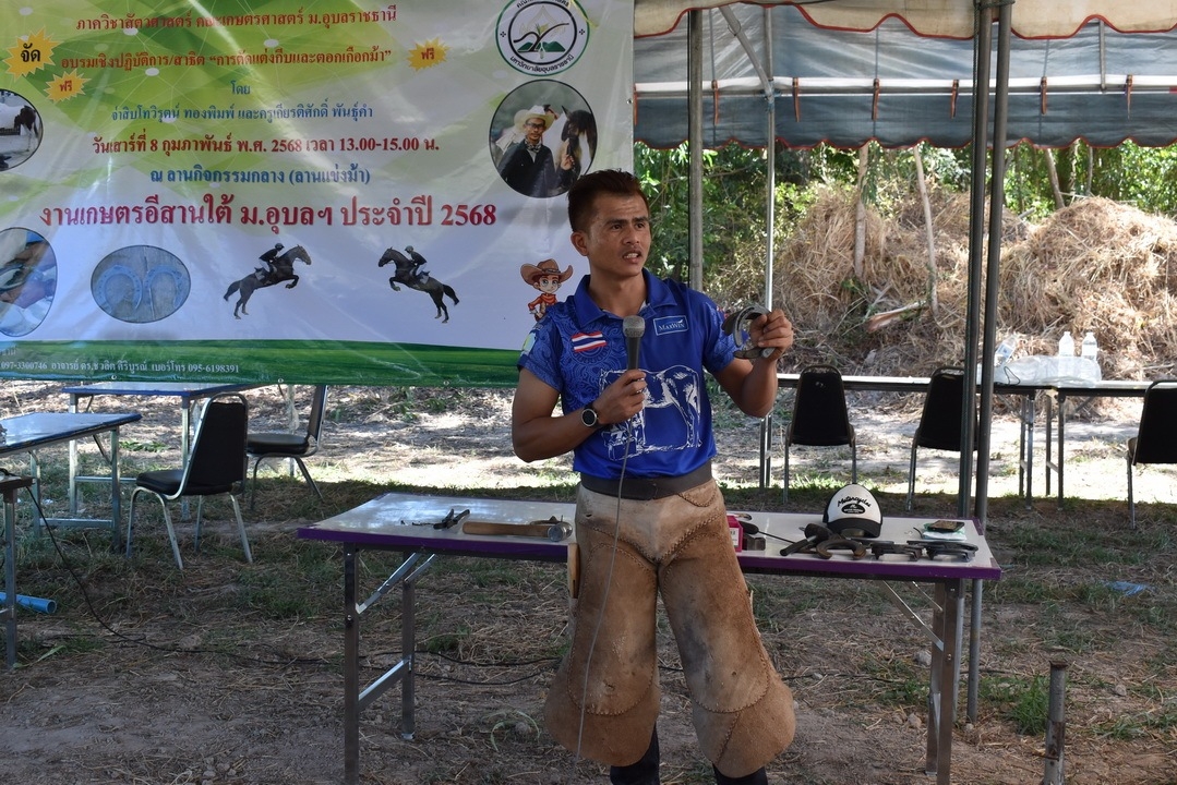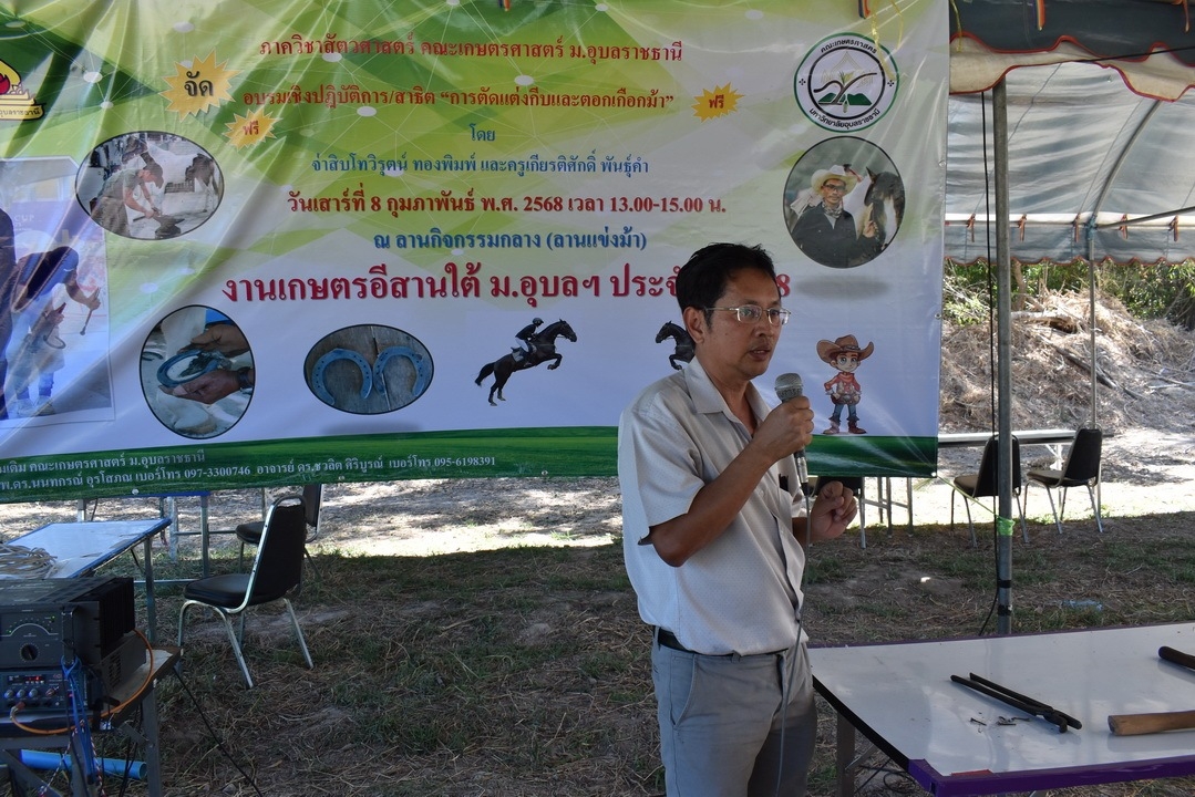 รายละเอียดกิจกรรม : อบรมเชิงปฏิบัติการ/สาธิต การตัดแต่งกีบม้าและตอกเกือกม้า ในงานเกษตรอีสานใต้ ประจำปี 2568 วิทยากร จ่าสิบโทวิรุตน์ ทองพิมพ์ และครูเกียรติศักดิ์ พันธุ์คำ ณ ลานกิจกรรมกลาง (ลานแข่งม้า) จัดโดยภาควิชาสัตวศาสตร์, 8 กุมภาพันธ์ 2568 กลุ่มด้านประกันคุณภาพ : 5. การบริการทางวิชาการแก่สังคม จำนวน 40 ภาพ |