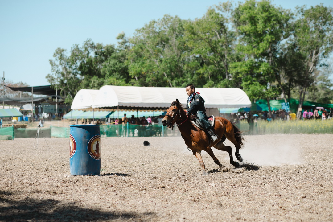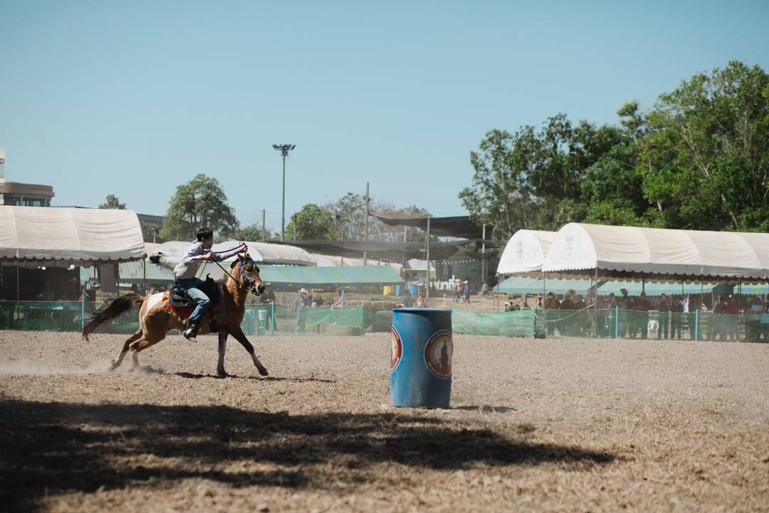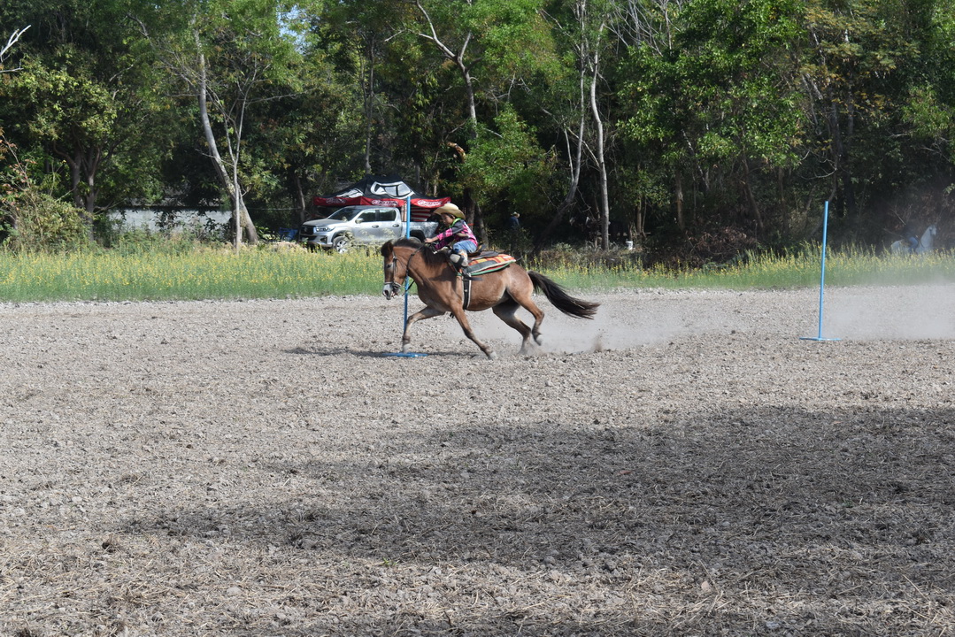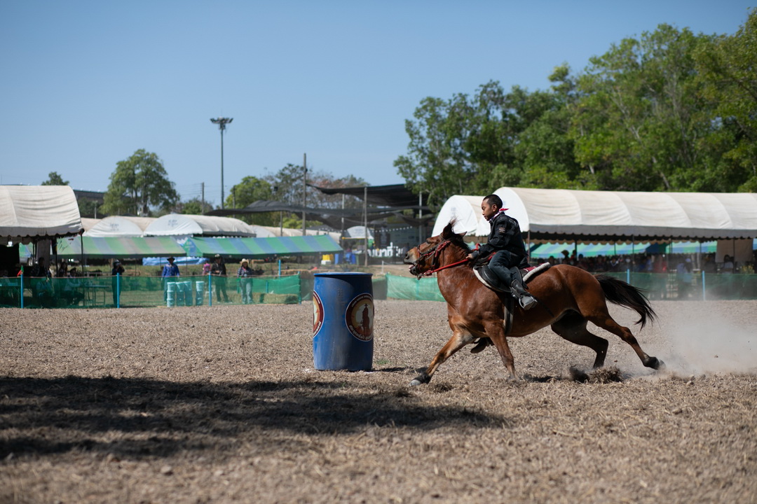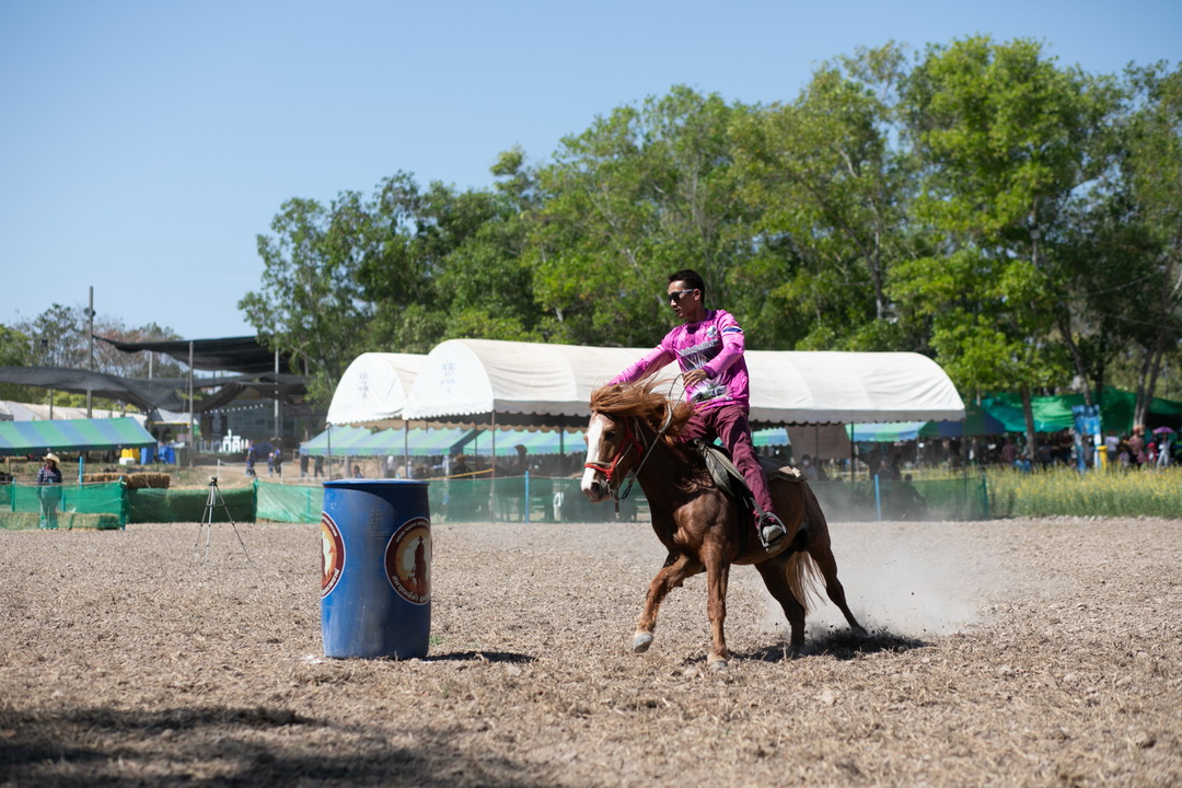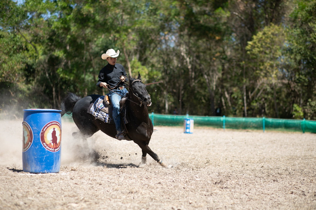 ประเภท ขี่ม้าคาวบอยอ้อมถัง รุ่น ความสูงม้า มากกว่า 135 เซนติเมตร