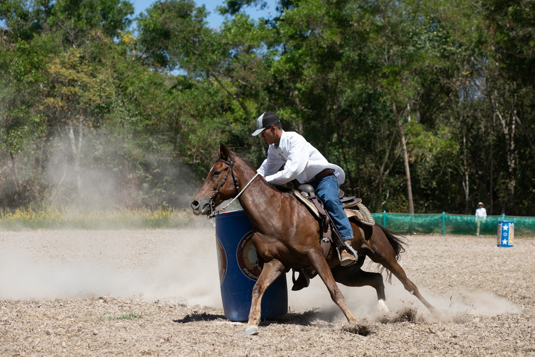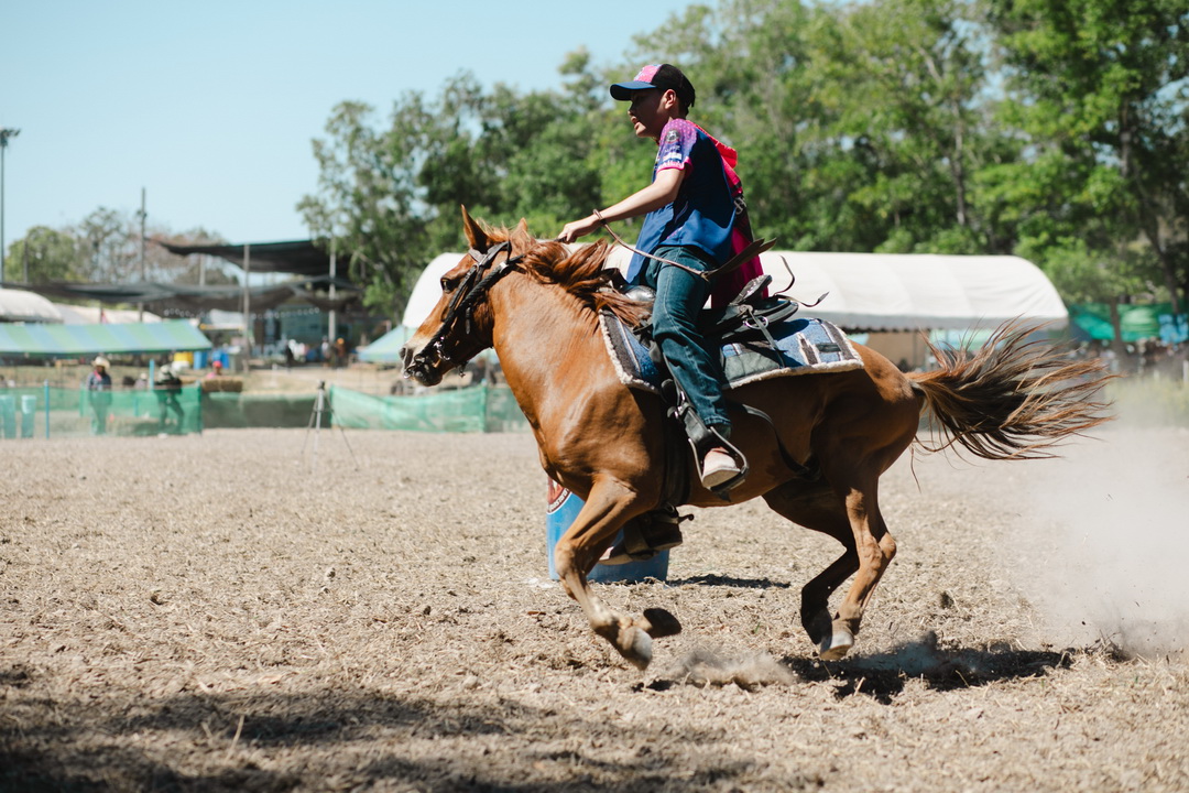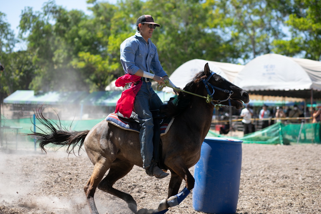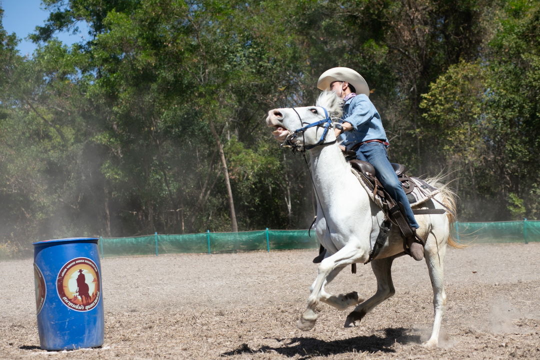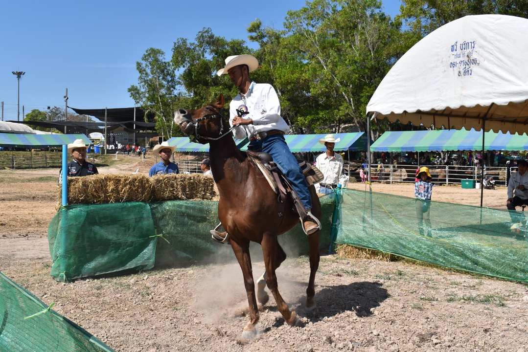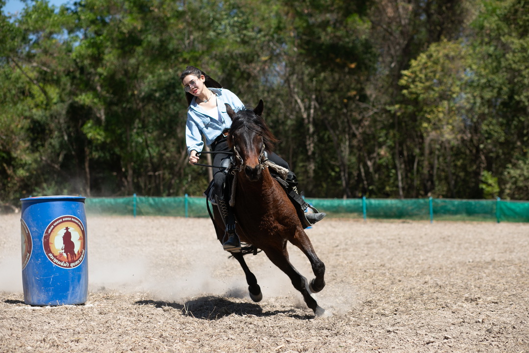 ประเภท ขี่ม้าคาวบอยอ้อมถัง รุ่น ความสูงม้า มากกว่า 135 เซนติเมตร