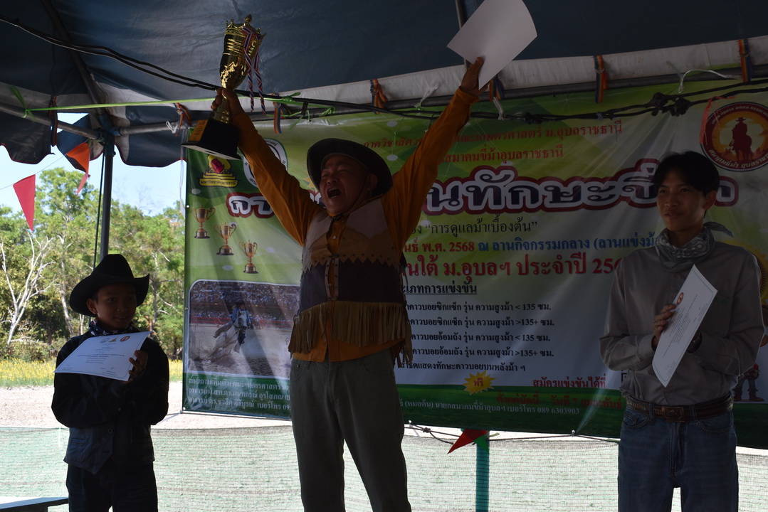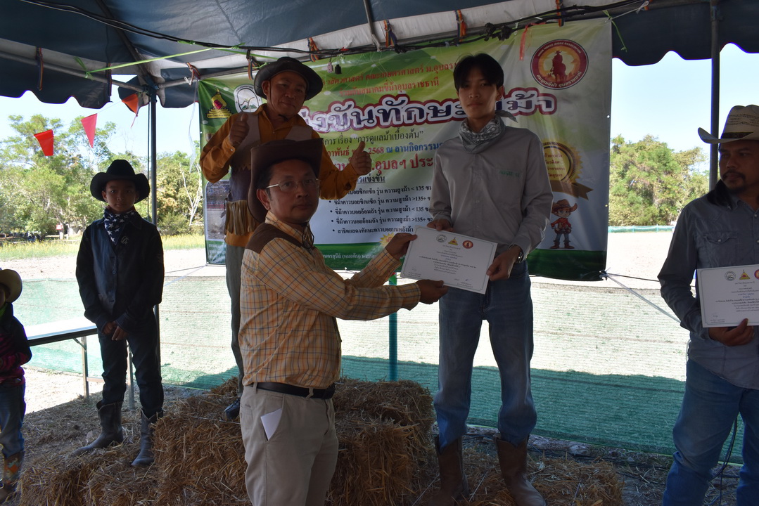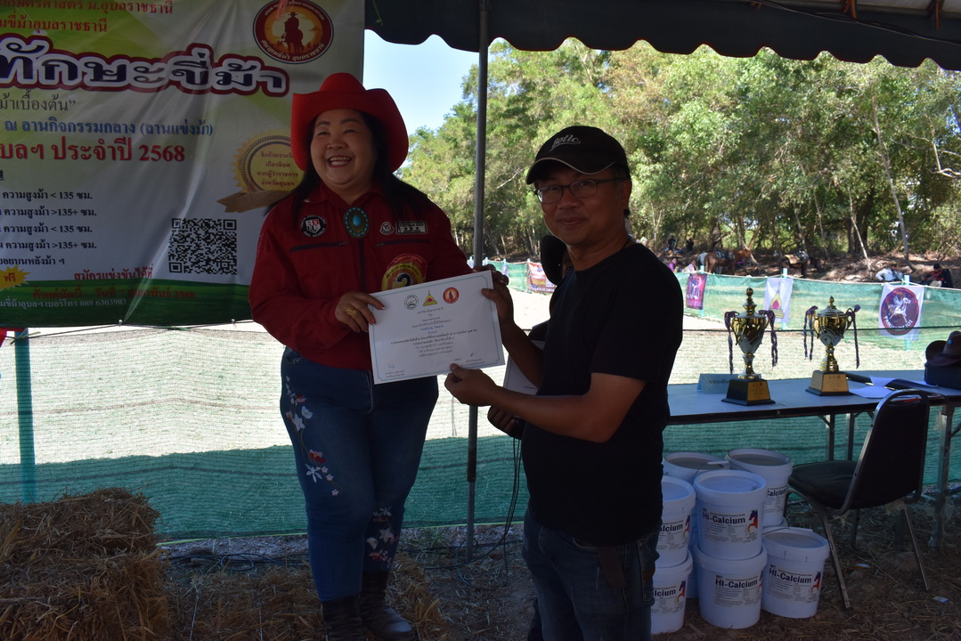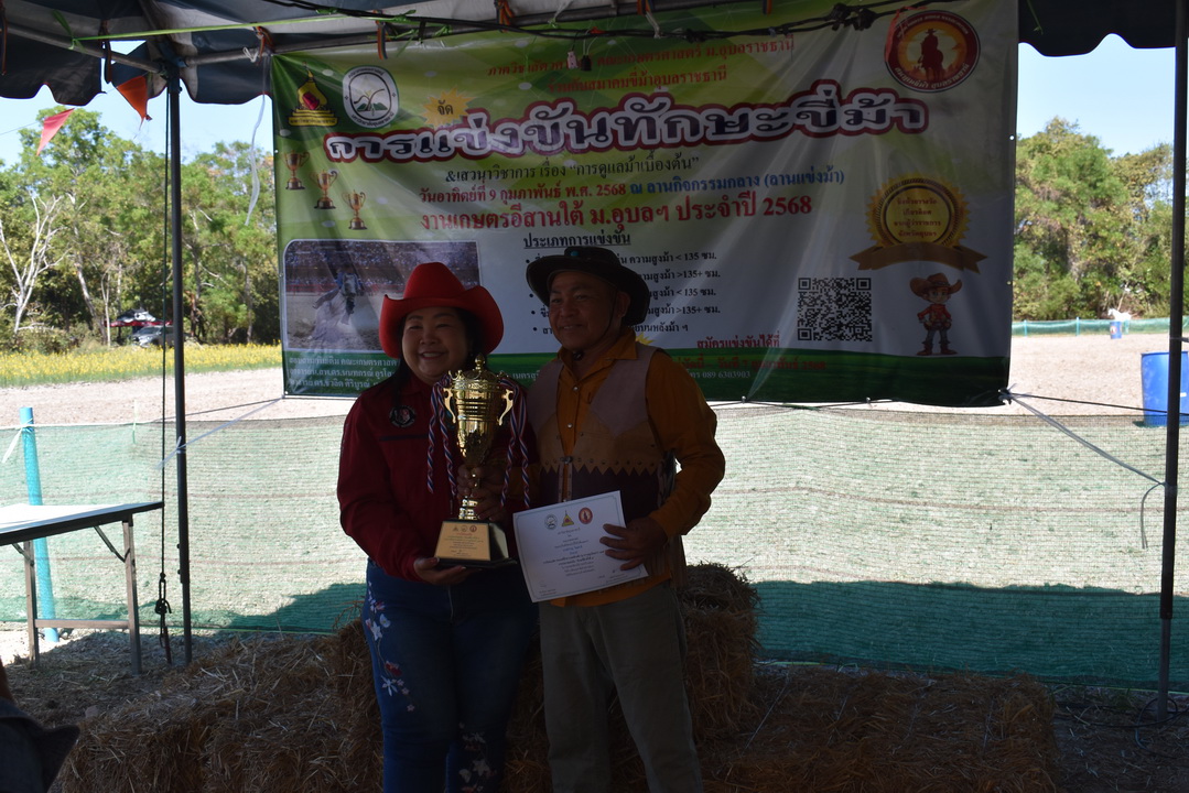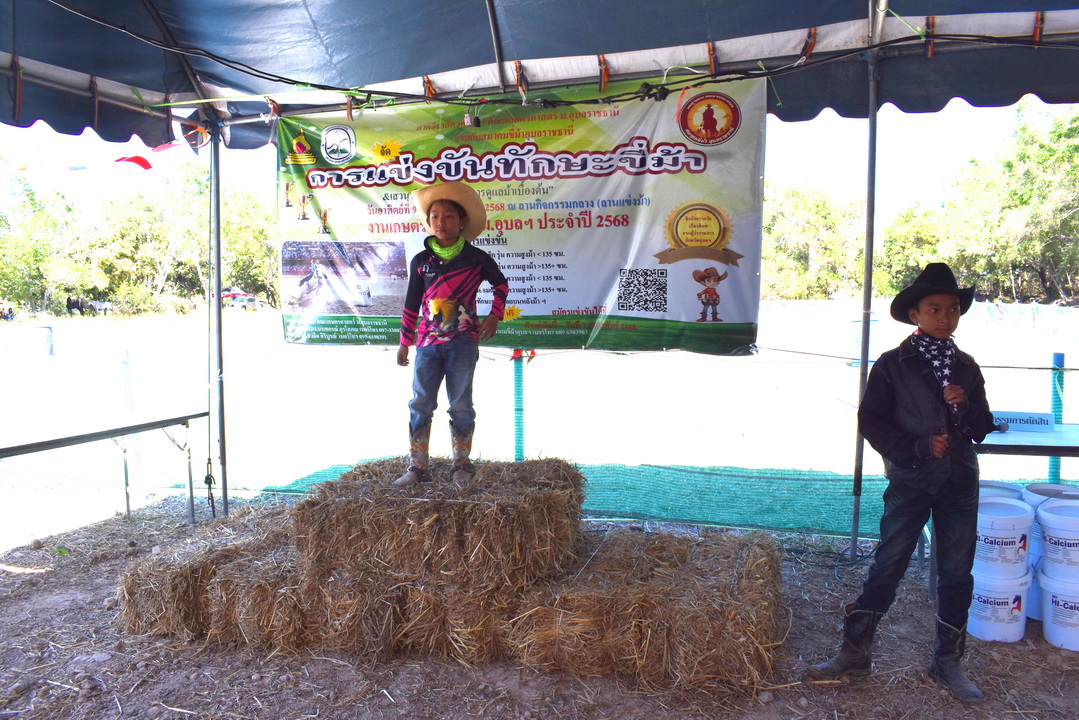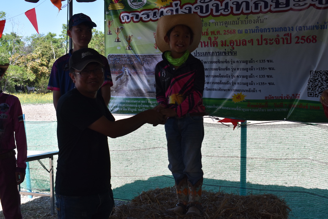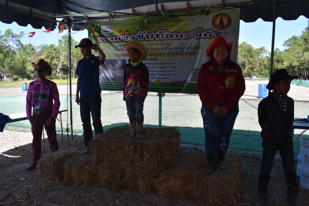 รายละเอียดกิจกรรม : การแข่งขันทักษะขี่ม้า ณ ลานกิจกรรมกลาง โดยมี ดร.สุกัญญา คลังสินศิริกุล ผู้ช่วยคณบดีฝ่ายพัฒนาองค์กร คณะเกษตรศาสตร์ ประธานเปิดการแข่งขัน น.สพ. ดร.นนทกรณ์ อุรโสภณ รองคณบดีฝ่ายกายภาพและสิ่งแวดล้อม คณะเกษตรศาสตร์ กล่าวรายงาน พร้อมด้วยนายสุพจน์ รสจันทร์ ปศุสัตว์จังหวัดอุบลราชธานี สมาคมขี่ม้าอุบลราชธานี นักศึกษา และประชาชนทั่วไปร่วมกิจกรรมในครั้งนี้, 9 กุมภาพันธ์ 2568