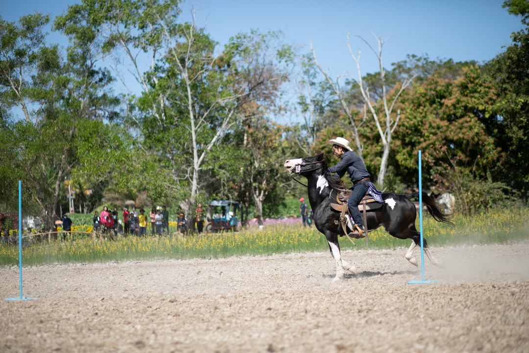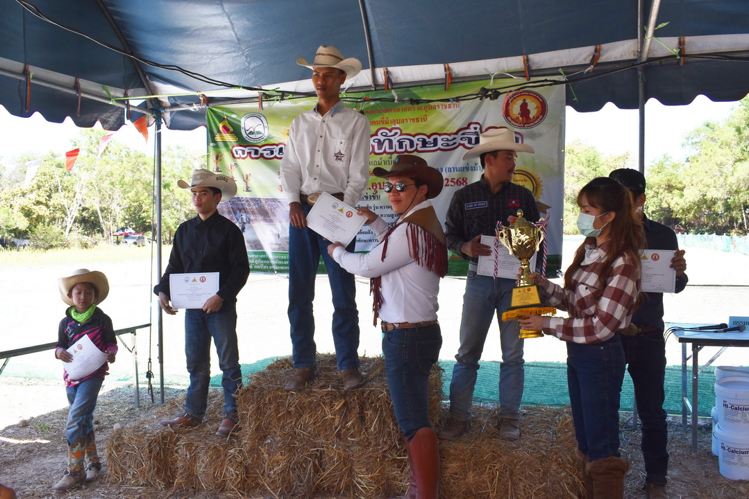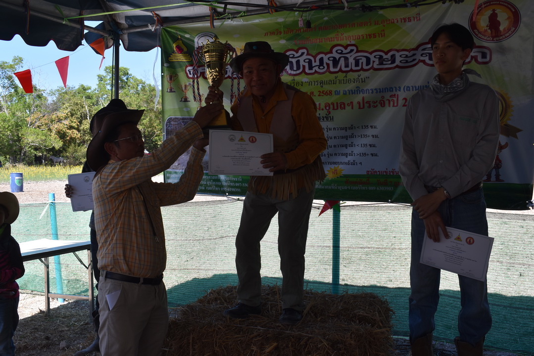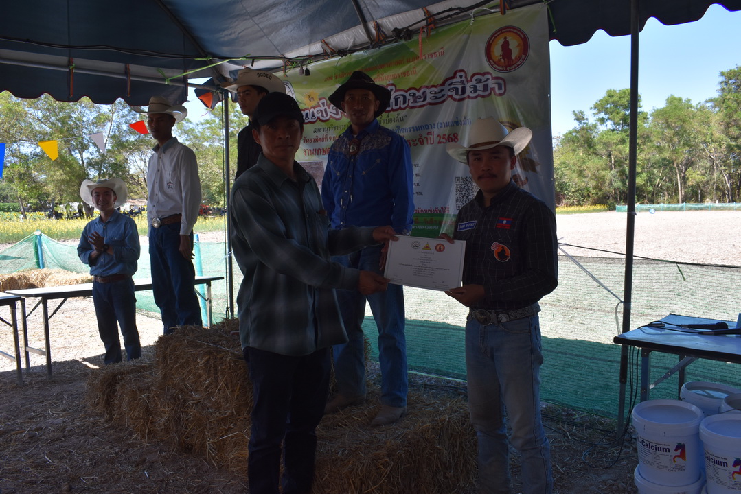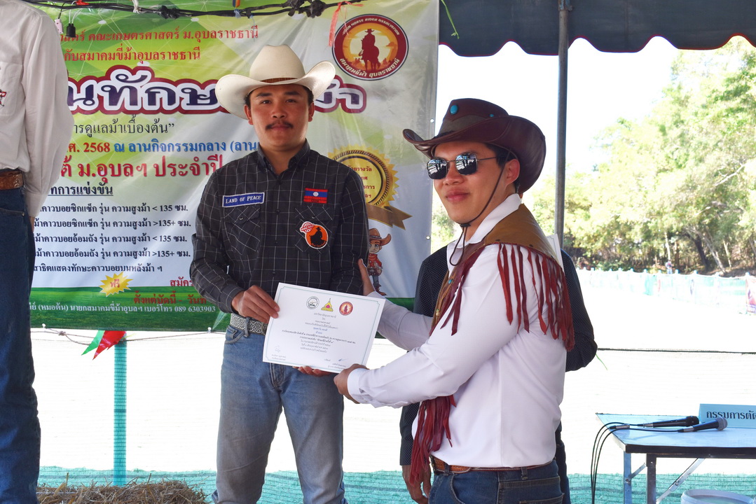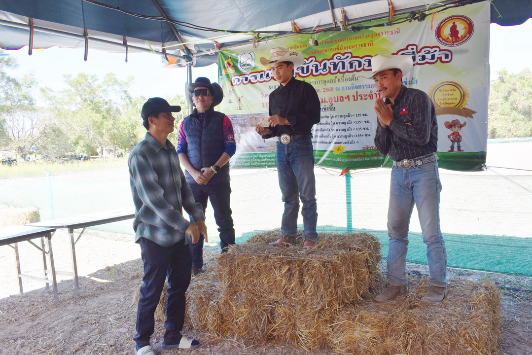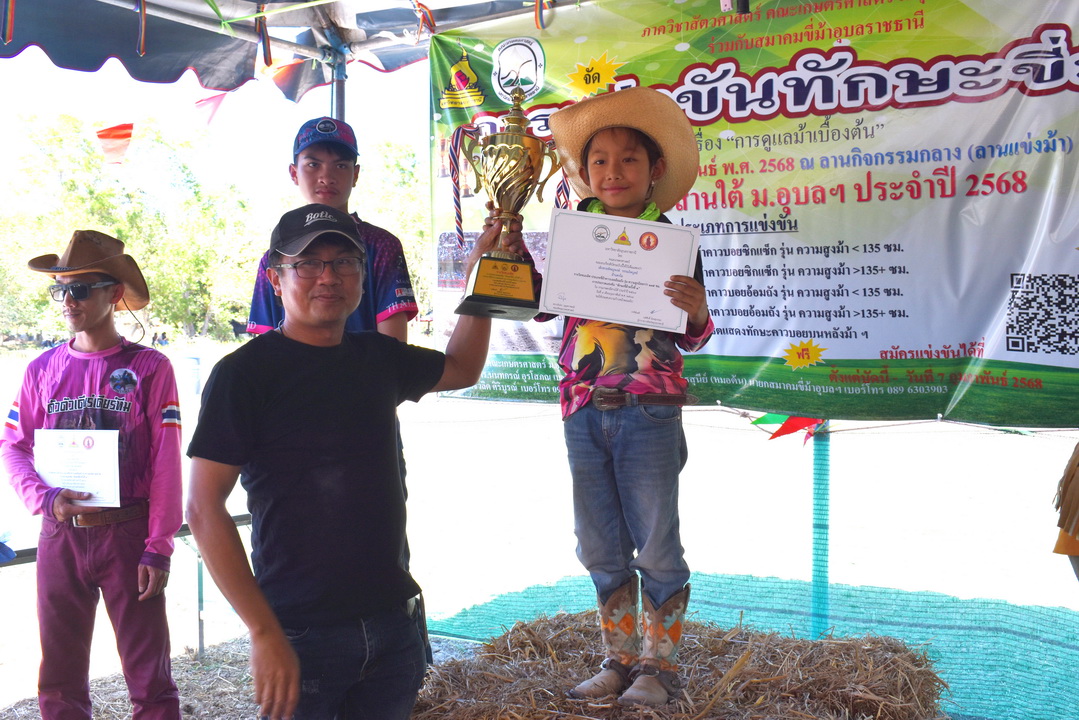 รายละเอียดกิจกรรม : การแข่งขันทักษะขี่ม้า ณ ลานกิจกรรมกลาง โดยมี ดร.สุกัญญา คลังสินศิริกุล ผู้ช่วยคณบดีฝ่ายพัฒนาองค์กร คณะเกษตรศาสตร์ ประธานเปิดการแข่งขัน น.สพ. ดร.นนทกรณ์ อุรโสภณ รองคณบดีฝ่ายกายภาพและสิ่งแวดล้อม คณะเกษตรศาสตร์ กล่าวรายงาน พร้อมด้วยนายสุพจน์ รสจันทร์ ปศุสัตว์จังหวัดอุบลราชธานี สมาคมขี่ม้าอุบลราชธานี นักศึกษา และประชาชนทั่วไปร่วมกิจกรรมในครั้งนี้, 9 กุมภาพันธ์ 2568