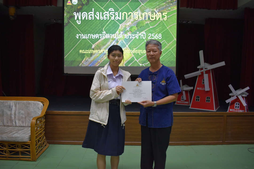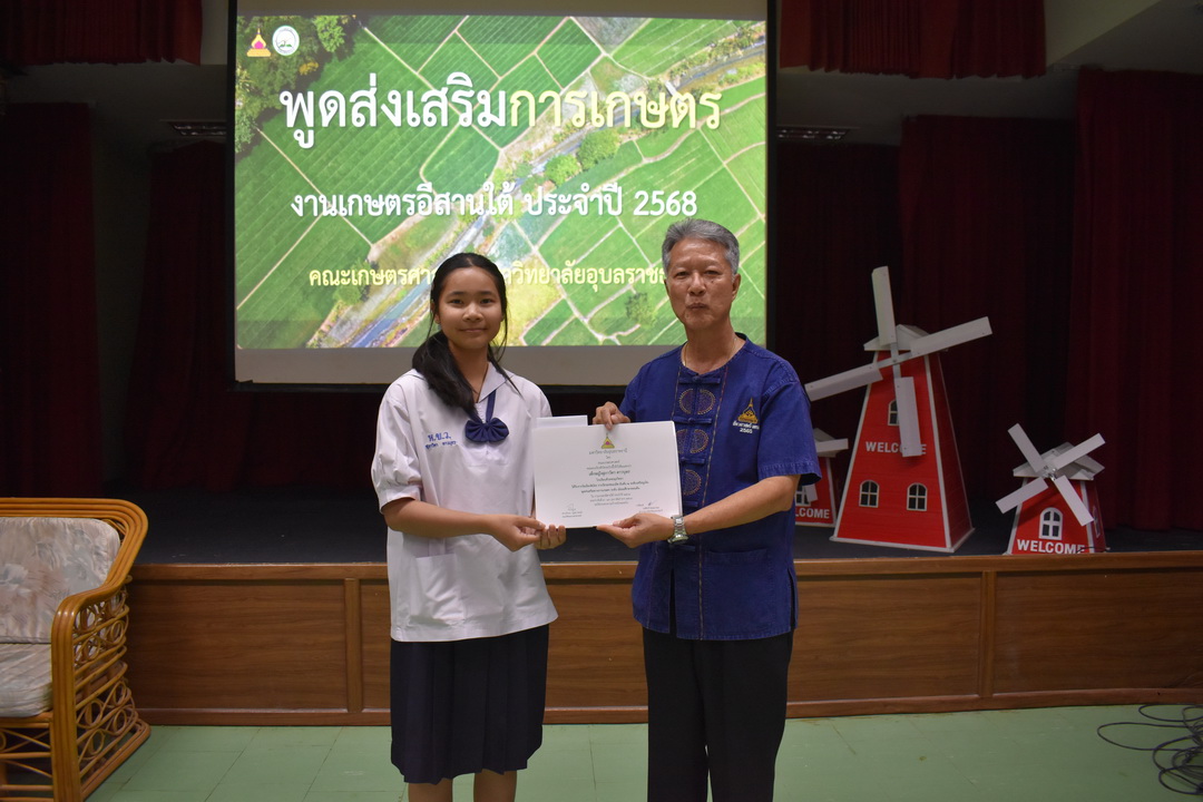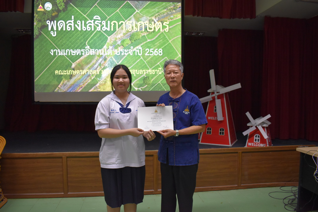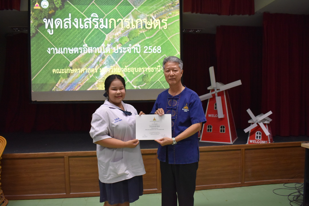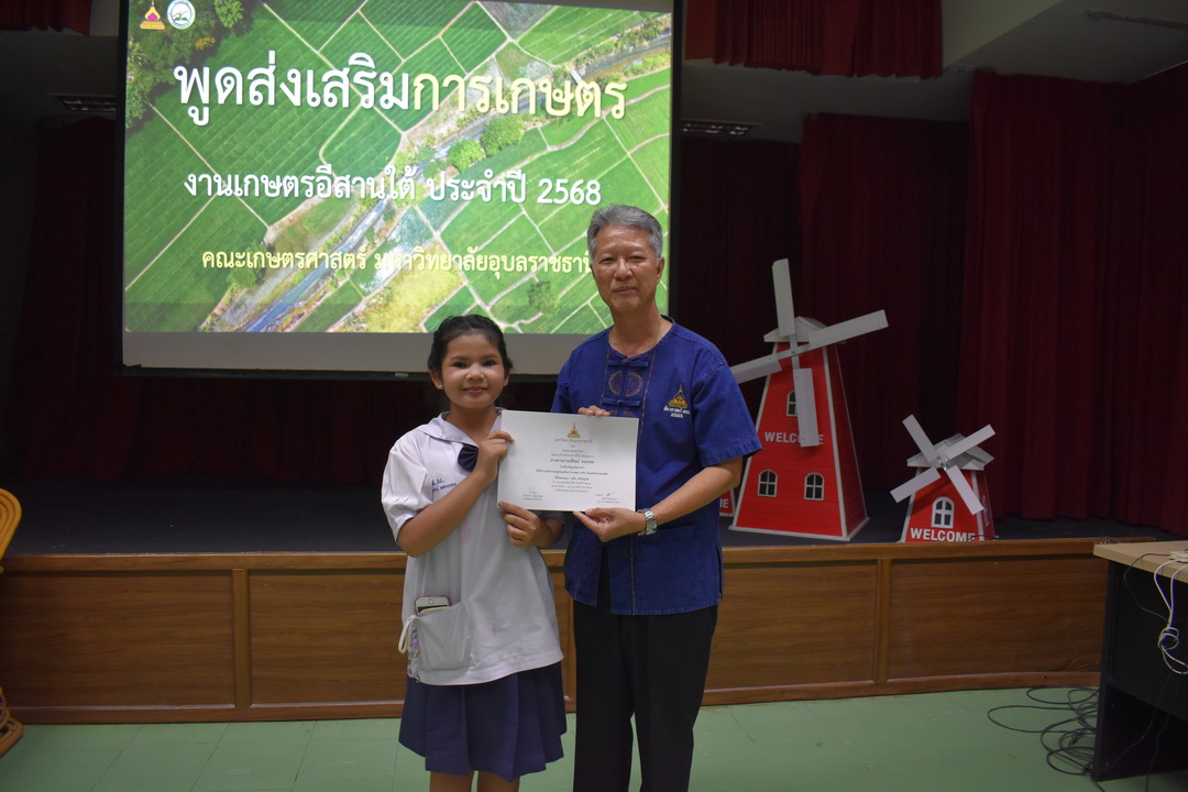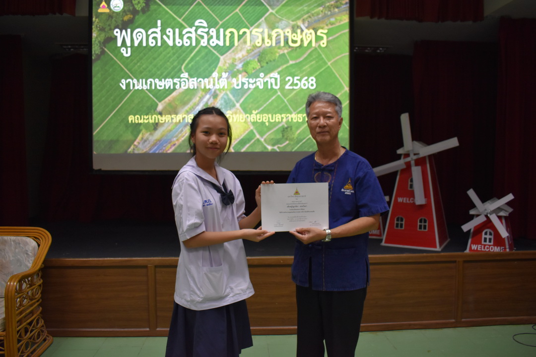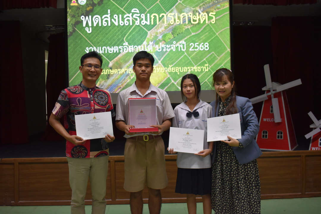 รายละเอียดกิจกรรม : การประกวดพูดส่งเสริมการเกษตร ในงานเกษตรอีสานใต้ ประจำปี 2568, 13 กุมภาพันธ์ 2568 ระดับชั้นมัธยมศึกษาตอนต้น ด.ญ. ชญานิศ ขันธวัตร โรงเรียนเตรียมอุดมศึกษาพัฒนาการ อุบลราชธานี (รางวัลชนะเลิศ ระดับเหรียญทอง) ด.ช. ธีภัทร สรสิทธิ์ โรงเรียน ลือคำหาญวารินชำราบ (รางวัลรองชนะเลิศอันดับ 1 ระดับเหรียญเงิน) ด.ญ. สุภาวิดา ดาวบุตร โรงเรียนห้วยขะยุงวิทยา (รางวัลรองชนะเลิศอันดับ 2 ระดับเหรียญเงิน) ด.ช. ศักรินทร์ สิงห์คำ (รางวัลรองชนะเลิศอันดับ 3 ระดับเหรียญเงิน) ด.ญ. ญาณิกา นางาม โรงเรียนน้ำยืนวิทยา (รางวัลรองชนะเลิศอันดับ 4 ระดับเหรียญเงิน) ระดับชั้นมัธยมศึกษาตอนปลาย นายธนกฤติ อินทโส โรงเรียนศรีรัตนวิทยา (รางวัลชนะเลิศ ระดับเหรียญเงิน) นางสาวชลณิชา ขาวเลิศ โรงเรียนเตรียมอุดมศึกษาพัฒนาการ อุบลราชธานี (รางวัลรองชนะเลิศอันดับ 1 ระดับเหรียญเงิน) นางสาวสุทัตตา กาสินธ์ โรงเรียนห้วยข่าพิทยาคม (รางวัลรองชนะเลิศอันดับ 2 ระดับเหรียญเงิน) นางสาวมิรัญฎา อินทะพิมพ์ โรงเรียนโคกสว่างคุ้มวิทยานุสรณ์ (รางวัลรองชนะเลิศอันดับ 3 ระดับเหรียญเงิน) นางสาวณิชาภัทร แก้วอาษา โรงเรียนน้ำยืนวิทยา (รางวัลรองชนะเลิศอันดับ 4 ระดับเหรียญเงิน) กลุ่มด้านประกันคุณภาพ : 5. การบริการทางวิชาการแก่สังคม จำนวน 97 ภาพ |