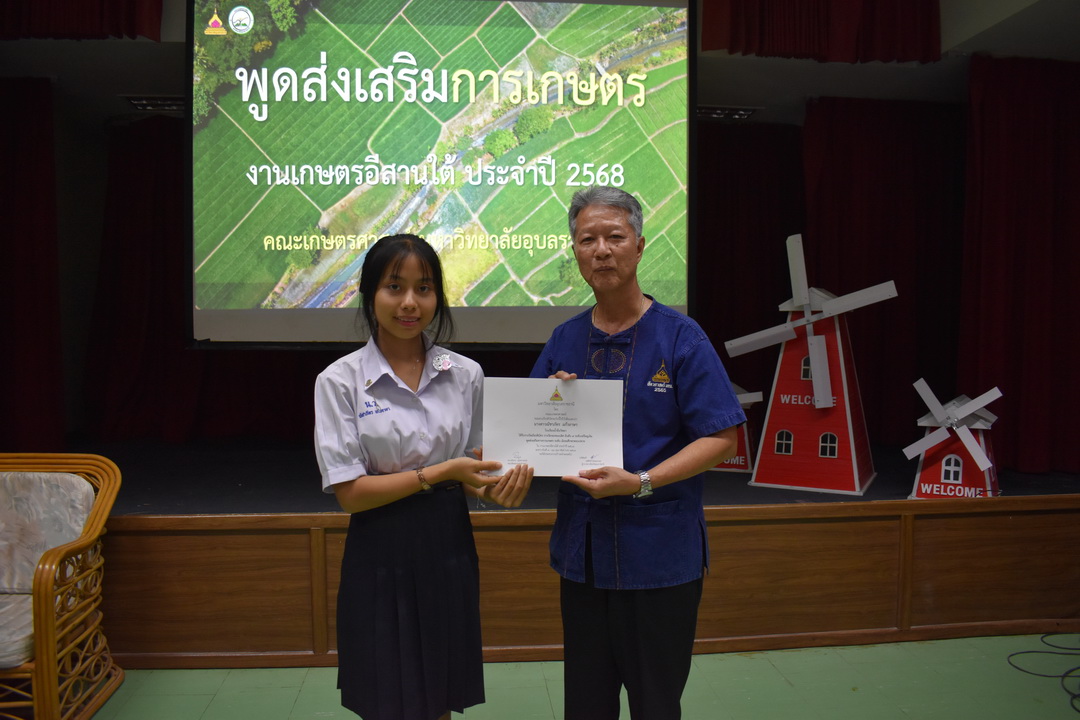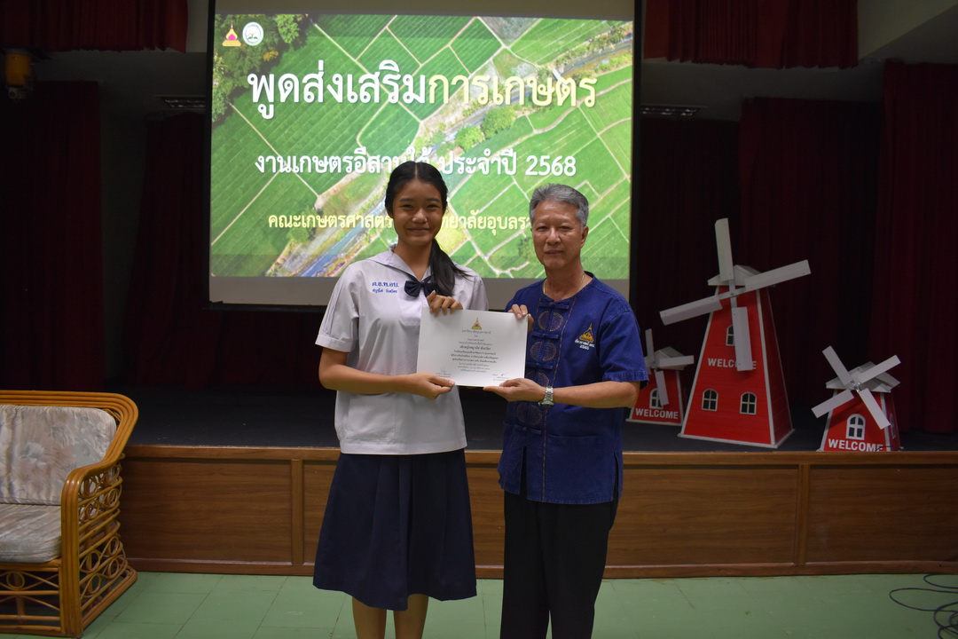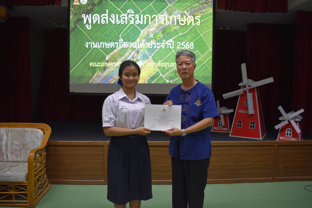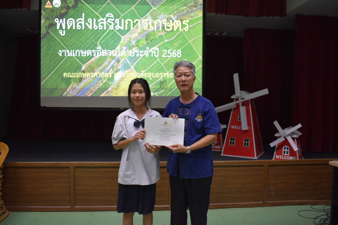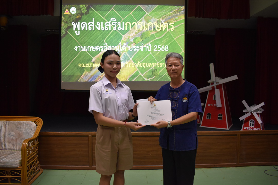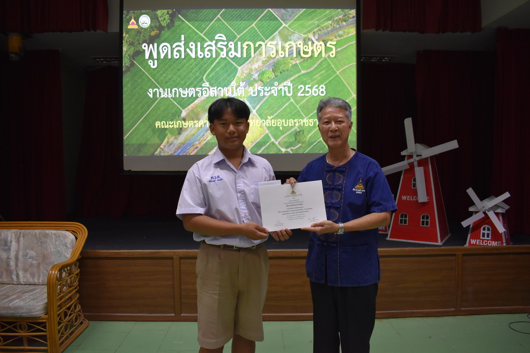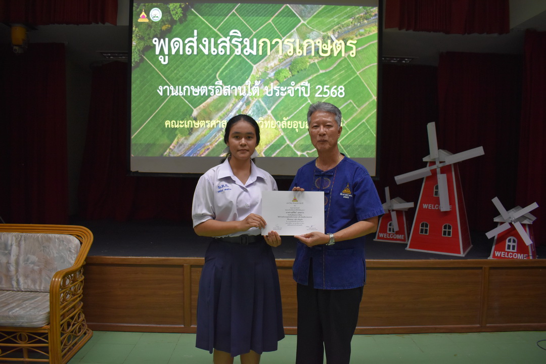 รายละเอียดกิจกรรม : การประกวดพูดส่งเสริมการเกษตร ในงานเกษตรอีสานใต้ ประจำปี 2568, 13 กุมภาพันธ์ 2568 ระดับชั้นมัธยมศึกษาตอนต้น ด.ญ. ชญานิศ ขันธวัตร โรงเรียนเตรียมอุดมศึกษาพัฒนาการ อุบลราชธานี (รางวัลชนะเลิศ ระดับเหรียญทอง) ด.ช. ธีภัทร สรสิทธิ์ โรงเรียน ลือคำหาญวารินชำราบ (รางวัลรองชนะเลิศอันดับ 1 ระดับเหรียญเงิน) ด.ญ. สุภาวิดา ดาวบุตร โรงเรียนห้วยขะยุงวิทยา (รางวัลรองชนะเลิศอันดับ 2 ระดับเหรียญเงิน) ด.ช. ศักรินทร์ สิงห์คำ (รางวัลรองชนะเลิศอันดับ 3 ระดับเหรียญเงิน) ด.ญ. ญาณิกา นางาม โรงเรียนน้ำยืนวิทยา (รางวัลรองชนะเลิศอันดับ 4 ระดับเหรียญเงิน) ระดับชั้นมัธยมศึกษาตอนปลาย นายธนกฤติ อินทโส โรงเรียนศรีรัตนวิทยา (รางวัลชนะเลิศ ระดับเหรียญเงิน) นางสาวชลณิชา ขาวเลิศ โรงเรียนเตรียมอุดมศึกษาพัฒนาการ อุบลราชธานี (รางวัลรองชนะเลิศอันดับ 1 ระดับเหรียญเงิน) นางสาวสุทัตตา กาสินธ์ โรงเรียนห้วยข่าพิทยาคม (รางวัลรองชนะเลิศอันดับ 2 ระดับเหรียญเงิน) นางสาวมิรัญฎา อินทะพิมพ์ โรงเรียนโคกสว่างคุ้มวิทยานุสรณ์ (รางวัลรองชนะเลิศอันดับ 3 ระดับเหรียญเงิน) นางสาวณิชาภัทร แก้วอาษา โรงเรียนน้ำยืนวิทยา (รางวัลรองชนะเลิศอันดับ 4 ระดับเหรียญเงิน) กลุ่มด้านประกันคุณภาพ : 5. การบริการทางวิชาการแก่สังคม จำนวน 97 ภาพ |
