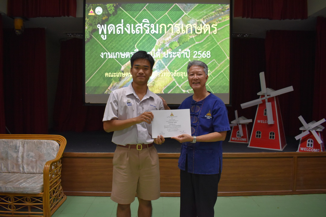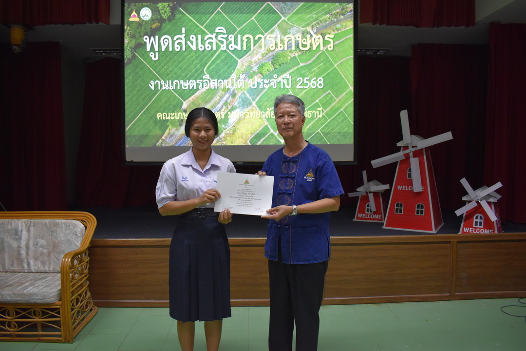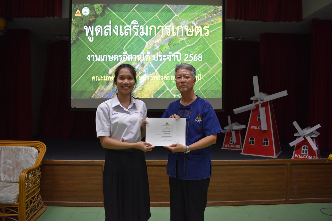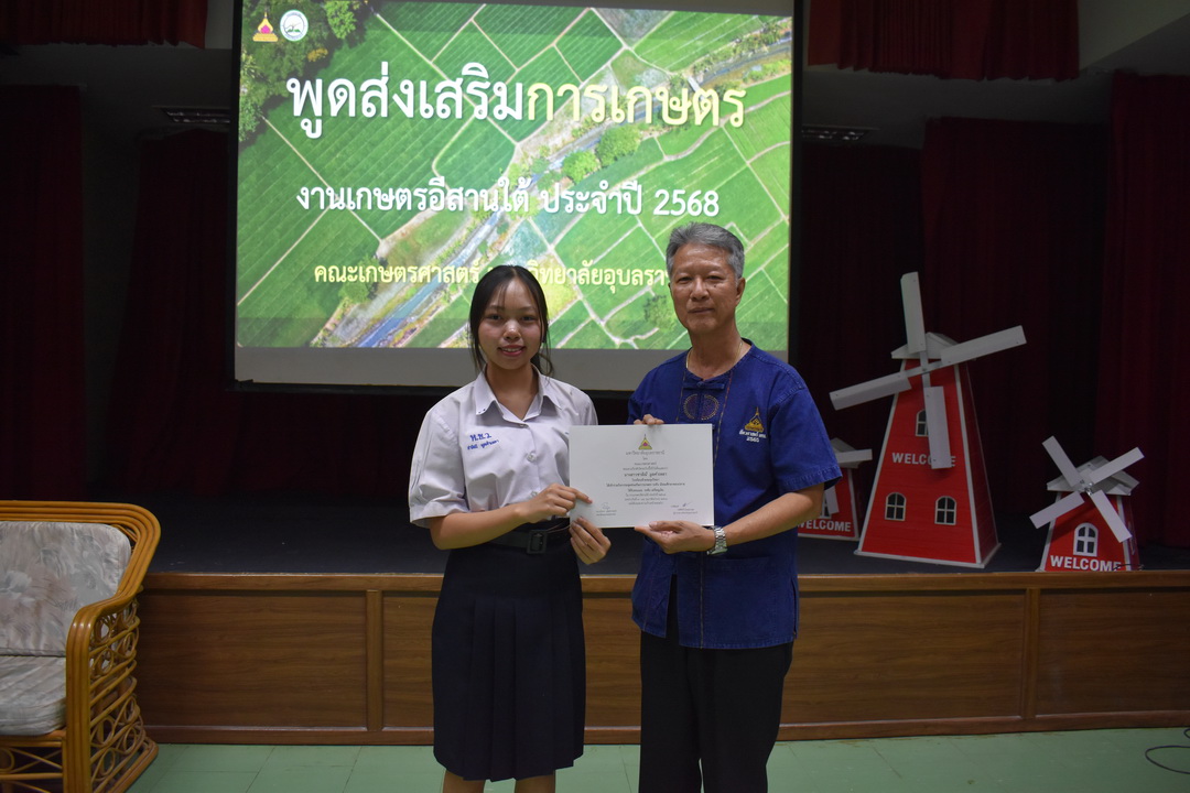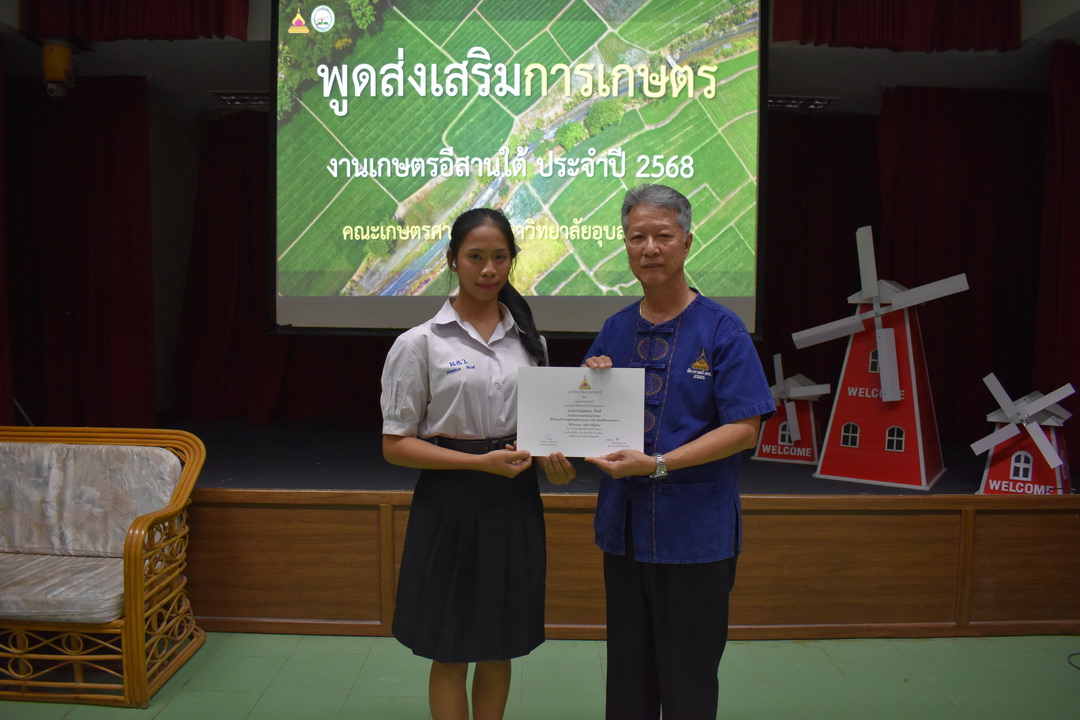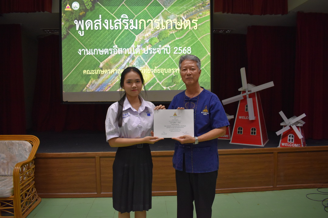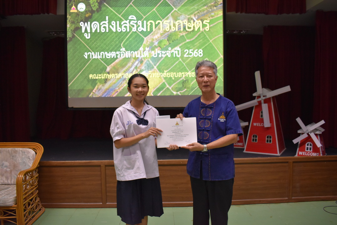 รายละเอียดกิจกรรม : การประกวดพูดส่งเสริมการเกษตร ในงานเกษตรอีสานใต้ ประจำปี 2568, 13 กุมภาพันธ์ 2568 ระดับชั้นมัธยมศึกษาตอนต้น ด.ญ. ชญานิศ ขันธวัตร โรงเรียนเตรียมอุดมศึกษาพัฒนาการ อุบลราชธานี (รางวัลชนะเลิศ ระดับเหรียญทอง) ด.ช. ธีภัทร สรสิทธิ์ โรงเรียน ลือคำหาญวารินชำราบ (รางวัลรองชนะเลิศอันดับ 1 ระดับเหรียญเงิน) ด.ญ. สุภาวิดา ดาวบุตร โรงเรียนห้วยขะยุงวิทยา (รางวัลรองชนะเลิศอันดับ 2 ระดับเหรียญเงิน) ด.ช. ศักรินทร์ สิงห์คำ (รางวัลรองชนะเลิศอันดับ 3 ระดับเหรียญเงิน) ด.ญ. ญาณิกา นางาม โรงเรียนน้ำยืนวิทยา (รางวัลรองชนะเลิศอันดับ 4 ระดับเหรียญเงิน) ระดับชั้นมัธยมศึกษาตอนปลาย นายธนกฤติ อินทโส โรงเรียนศรีรัตนวิทยา (รางวัลชนะเลิศ ระดับเหรียญเงิน) นางสาวชลณิชา ขาวเลิศ โรงเรียนเตรียมอุดมศึกษาพัฒนาการ อุบลราชธานี (รางวัลรองชนะเลิศอันดับ 1 ระดับเหรียญเงิน) นางสาวสุทัตตา กาสินธ์ โรงเรียนห้วยข่าพิทยาคม (รางวัลรองชนะเลิศอันดับ 2 ระดับเหรียญเงิน) นางสาวมิรัญฎา อินทะพิมพ์ โรงเรียนโคกสว่างคุ้มวิทยานุสรณ์ (รางวัลรองชนะเลิศอันดับ 3 ระดับเหรียญเงิน) นางสาวณิชาภัทร แก้วอาษา โรงเรียนน้ำยืนวิทยา (รางวัลรองชนะเลิศอันดับ 4 ระดับเหรียญเงิน) กลุ่มด้านประกันคุณภาพ : 5. การบริการทางวิชาการแก่สังคม จำนวน 97 ภาพ |
