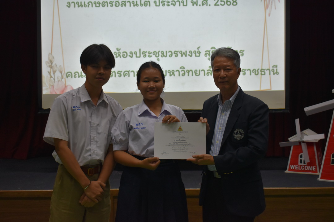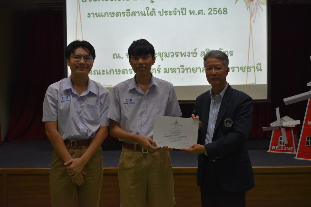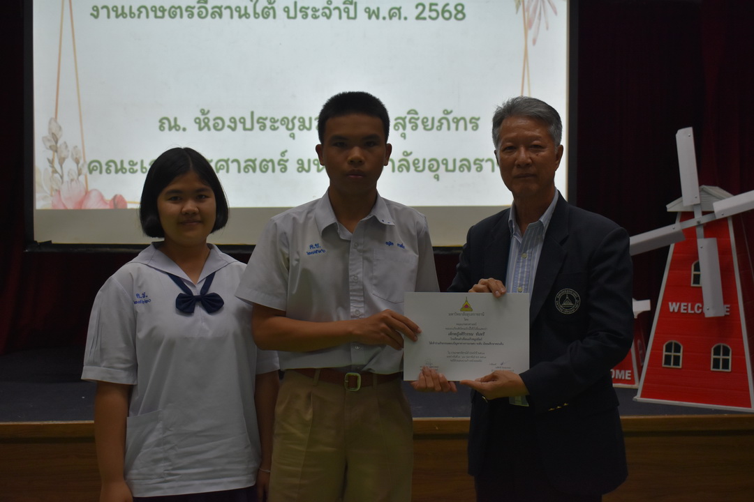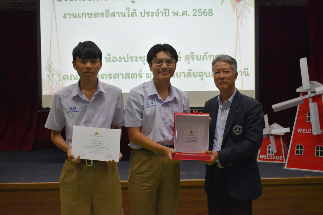 รองชนะเลิศอันดับ 1 ระดับเหรียญทองแดง นางสาวอภิสุตา พิทัศน์ และนายพลภูริช โมฬา โรงเรียนเตรียมอุดมศึกษาพัฒนาการอุบลราชธานี