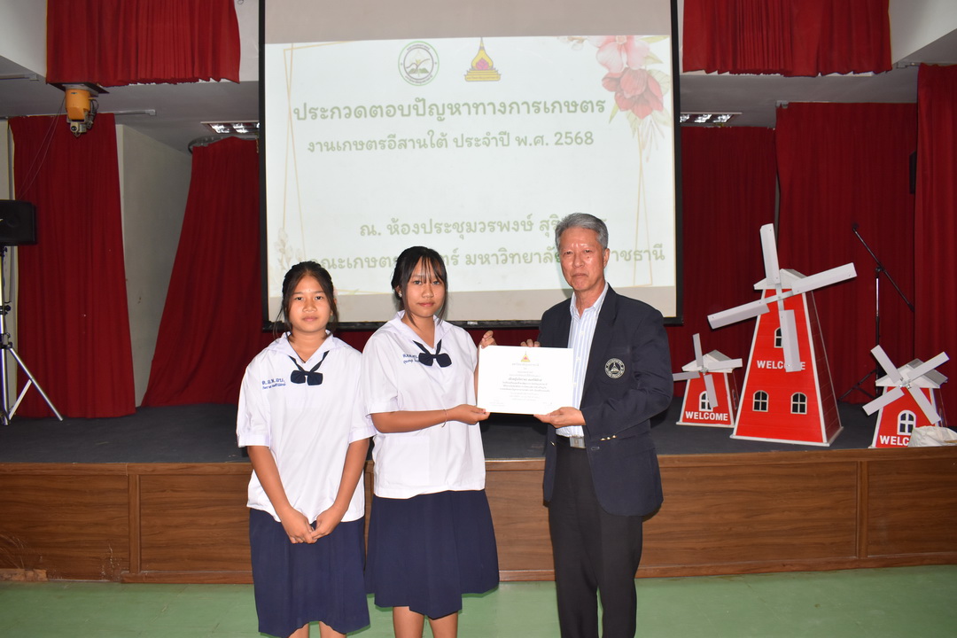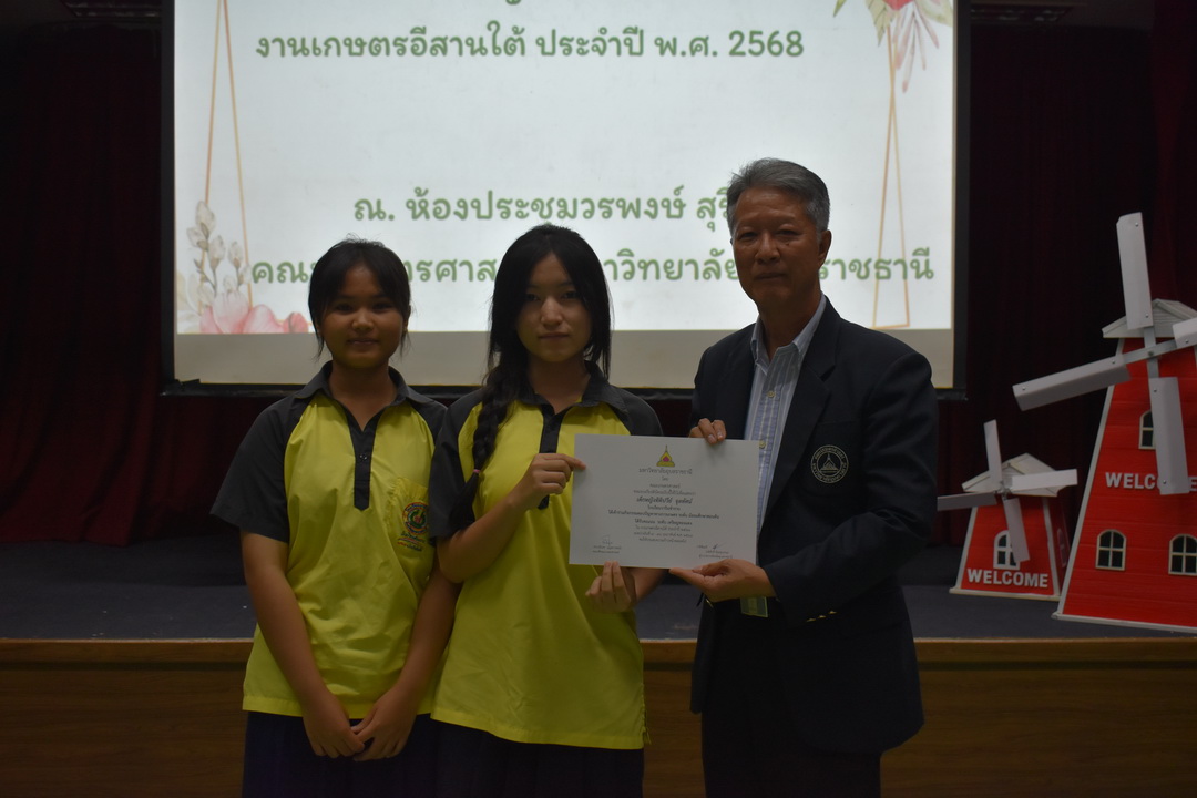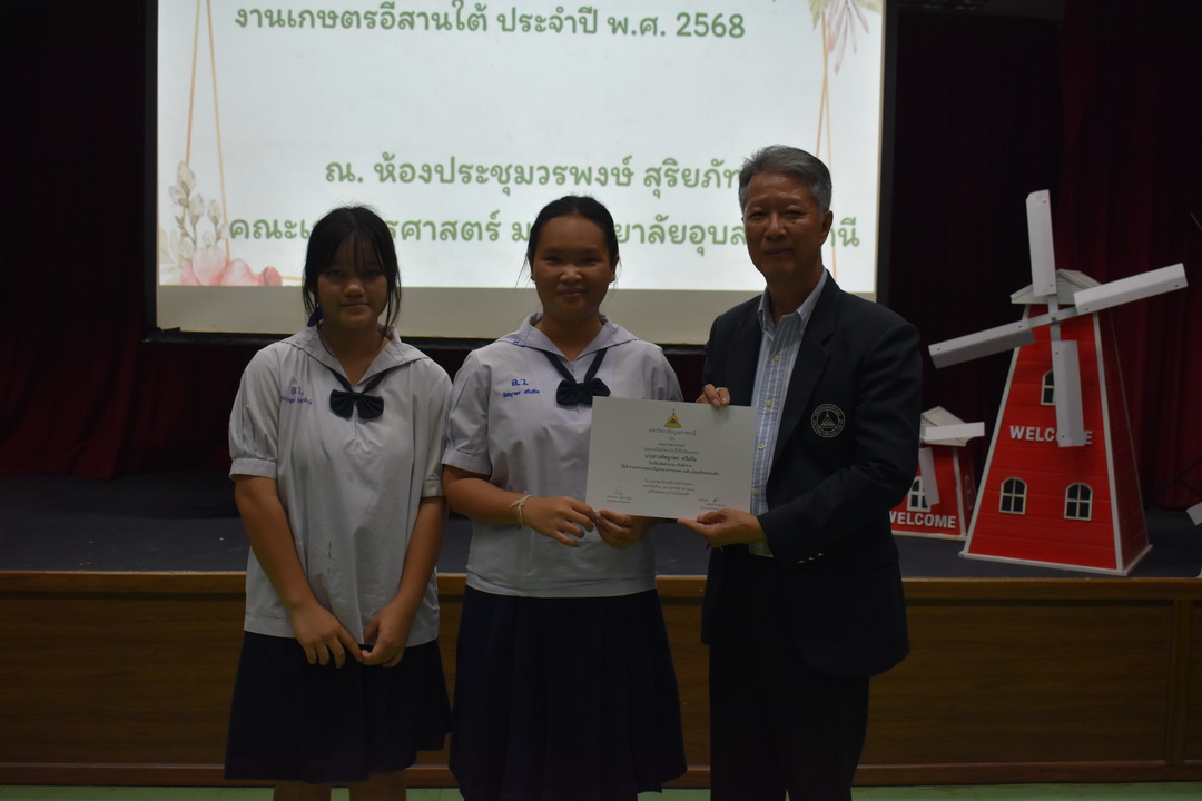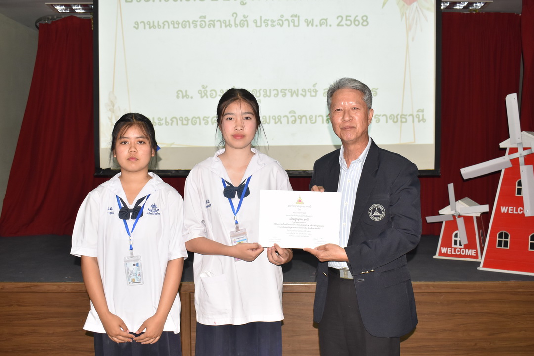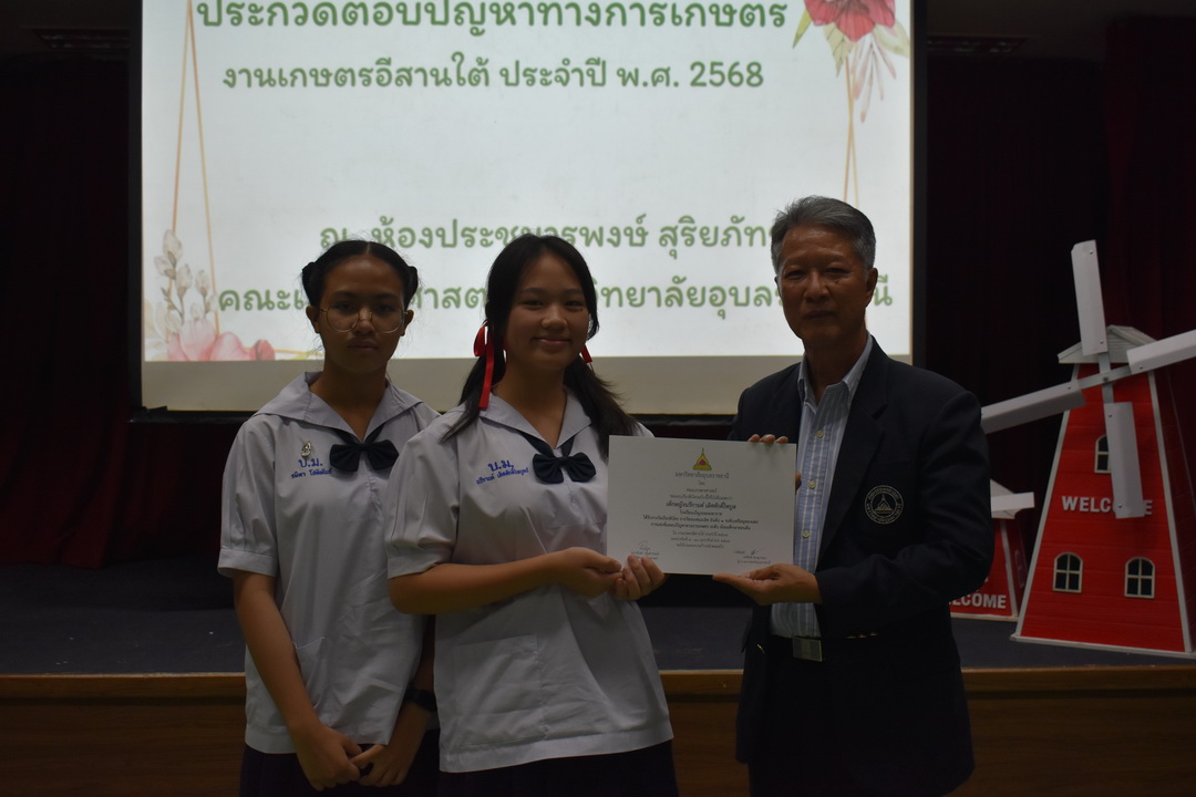 ชนะเลิศ ระดับเหรียญเงิน เด็กหญิงปุณยนุช ปั้นเกตุ และเด็กหญิงภัทราพร สมศรีพิทักษ์ โรงเรียนเตรียมอุดมศึกษาพัฒนาการอุบลราชธานี