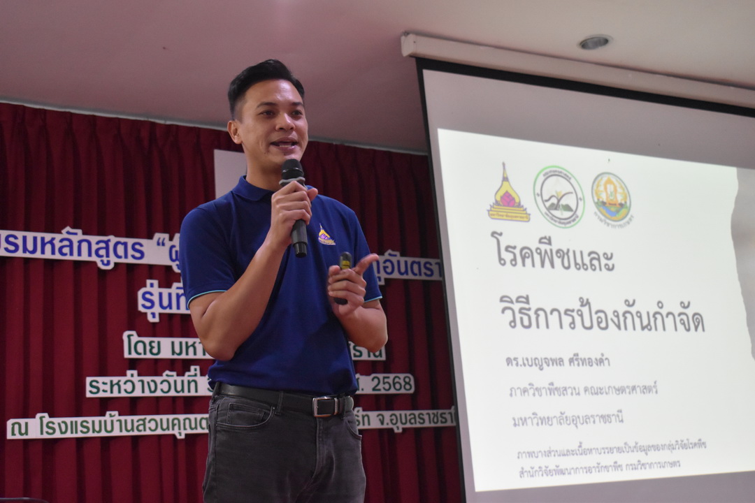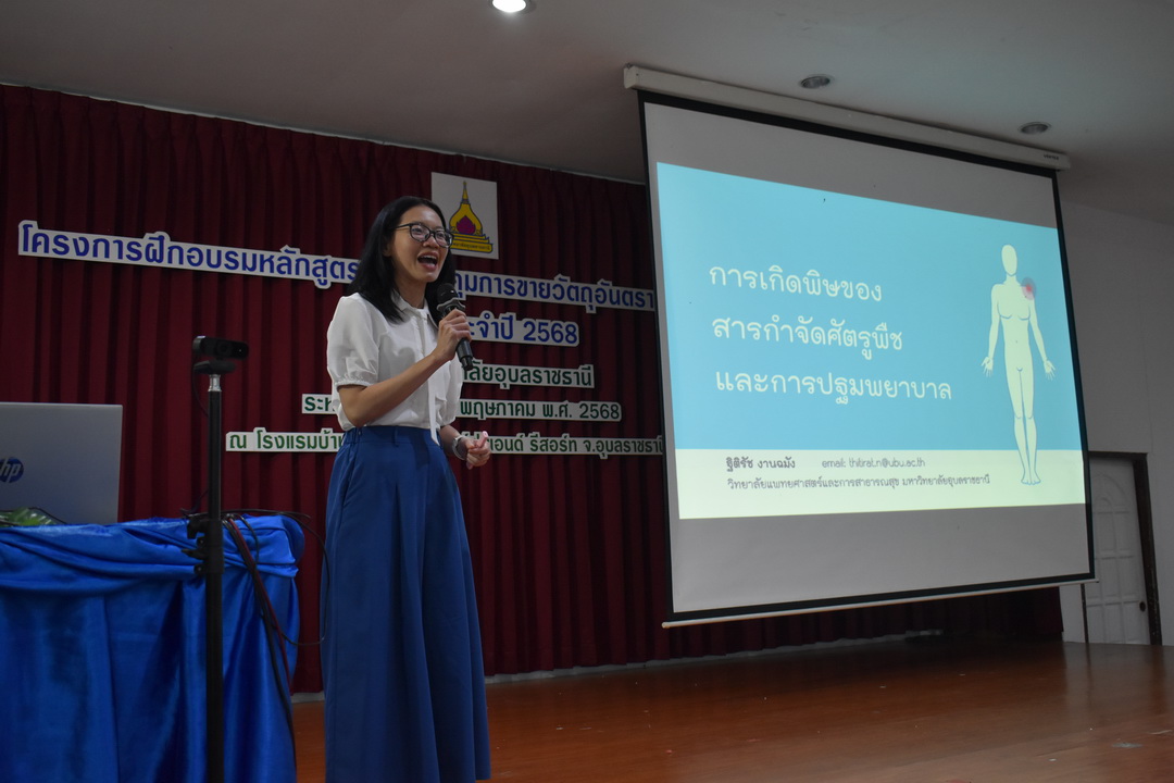 รายละเอียดกิจกรรม : โครงการฝึกอบรมหลักสูตรผู้ควบคุมการขายวัตถุอันตรายทางการเกษตร รุ่น 1 ประจำปี 2568 โดยคณะเกษตรศาสตร์ มหาวิทยาลัยอุบลราชธานี ร่วมกับกรมวิชาการเกษตร อบรมวันที่ 3-4 พฤษภาคม 2568 ณ โรงแรมบ้านสวนคุณตา อ.วารินชำราบ จ.อุบลราชธานี ซึ่งได้รับเกีตรติจาก ดร.นรินทร บุญพราหมณ์ คณบดีคณะเกษตรศาสตร์ มหาวิทยาลัยอุบลราชธานี เป็นประธานพิธิเปิด โดยมี ดร.นิมมานรดี พรหมทอง หัวหน้าโครงการ และดร.ภาคภูมิ สืบนุการณ์ อาจาย์ประจำภาควิชาพืชสวน คณะเกษตรศาสตร์ เป็นผู้ควบคุมและดำเนินขั้นตอนการฝึกอบรม และวิทยากรบรรยายประกอบด้วย คุณอนุสรณ์ เชาว์พฤฒิพงศ์ กรรมการบริหารสมาคมคนไทยธุรกิจเกษตร ดร.สุกัญญา คลังสินศิริกุล ดร.เบญจพล ศรีทองคำ อ.สุพัตรา คำเรียง อาจารย์ภาควิชาพืชสวน คณะเกษตรศาสตร์ มหาวิทยาลัยอุบลราชธานี และดร.ฐิติรัช งานฉมัง วิทยาลัยแพทยศาสตร์และการสาธารณสุข มหาวิทยาลัยอุบลราชธานี, 3 พฤษภาคม 2568 กลุ่มด้านประกันคุณภาพ : 5. การบริการทางวิชาการแก่สังคม จำนวน 47 ภาพ |