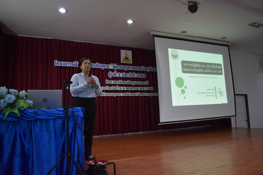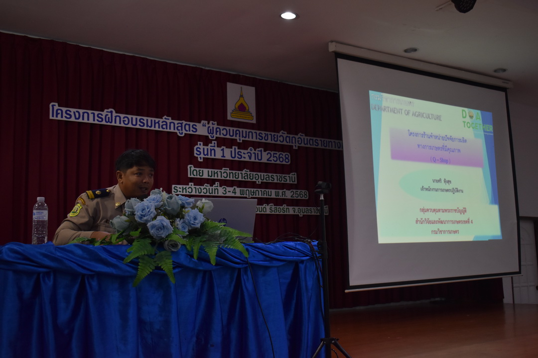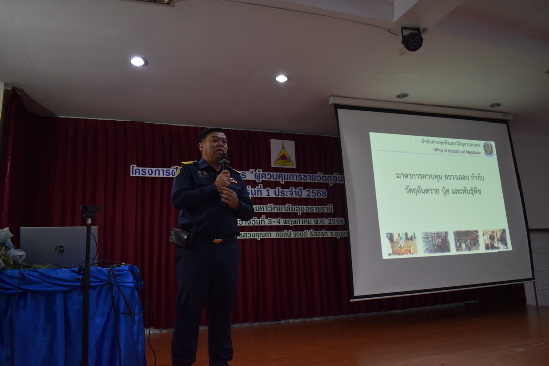 รายละเอียดกิจกรรม : โครงการฝึกอบรมหลักสูตรผู้ควบคุมการขายวัตถุอันตรายทางการเกษตร รุ่น 1 ประจำปี 2568 โดยคณะเกษตรศาสตร์ มหาวิทยาลัยอุบลราชธานี ร่วมกับกรมวิชาการเกษตร อบรมวันที่ 3-4 พฤษภาคม 2568 ณ โรงแรมบ้านสวนคุณตา อ.วารินชำราบ จ.อุบลราชธานี วิทยากร ผศ.ดร.บุษบา บัวคำ อาจารย์ประจำภาควิชาพืชสวน คณะเกษตรศาสตร์ มหาวิทยลัยอุบลราชธานี นางสาวอุทัยวรรณ สวนจันทร์ นักวิชาการเกษตรปฏิบัติการ กลุ่มควบคุมวัตถุอันตราย สํานักควบคุมพืชและวัสดุการเกษตร ผอ.จุฑารัตน์ กุลศิริวนิชย์ ผู้อำนวยการสำนักควบคุมพืชและวัสดุการเกษตร กรมวิชาการเกษตร นายพิชิต เหลืองหิรัญ นักวิชาการเกษตรชำนาญการ สำนักควบคุมพืชและวัสดุการเกษตร กรมวิชาการเกษตร นายศริ ฟุ้งสุข เจ้าพนักงานการเกษตรปฏิบัติงาน สำนักวิจัยและพัฒนาการเกษตรเขต 4 นายวีระพล พิพัฒน์ นักวิชาการเกษตร ชำนาญการ สำนักวิจัยและพัฒนาการเกษตรเขต 4, 4 พฤษภาคม 2568 กลุ่มด้านประกันคุณภาพ : 5. การบริการทางวิชาการแก่สังคม จำนวน 52 ภาพ |
