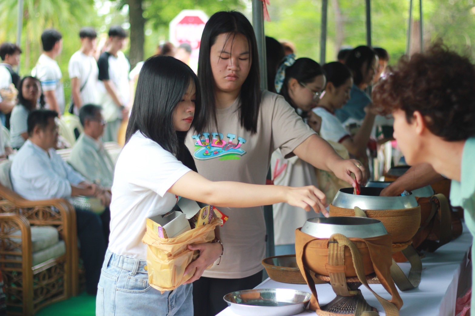 รายละเอียดกิจกรรม : สโมสรนักศึกษาคณะเกษตรศาสตร์ จัดกิจกรรมรับน้องใหม่ คณะเกษตรศาสตร์ รุ่นที่ 38 “ศรัทธาผูกผ้า หัวใจผูกพัน” โดยมี ดร.นรินทร บุญพราหมณ์ คณบดีคณะเกษตรศาสตร์ เป็นประธาน นำคณาจารย์ นักศึกษาทุกชั้นปี ร่วมทำบุญตักบาตร พระสงฆ์ 9 รูป พิธีบวงสรวงพระพรหม ผูกข้อต่อแขนน้องใหม่ และผูกผ้าคาด AGGIE#38 สัญลักษณ์ของรุ่น และรุ่นพี่ร่วมร้องเพลงและ BOOM ให้กับน้องใหม่ บรรยากาศเต็มไปด้วยความอบอุ่นและประทับใจ ณ บริเวณด้านหน้าศาลพระพรหม นอกจากนี้ รุ่นพี่นำน้องใหม่ทำความดี จิตอาสาพัฒนาพื้นที่มหาวิทยาลัยร่วมกันอีกด้วย เมื่อวันที่ 14 มิถุนายน 2568 ที่ผ่านมา กลุ่มด้านประกันคุณภาพ : 3. กิจกรรมการพัฒนานิสิตนักศึกษา จำนวน 73 ภาพ