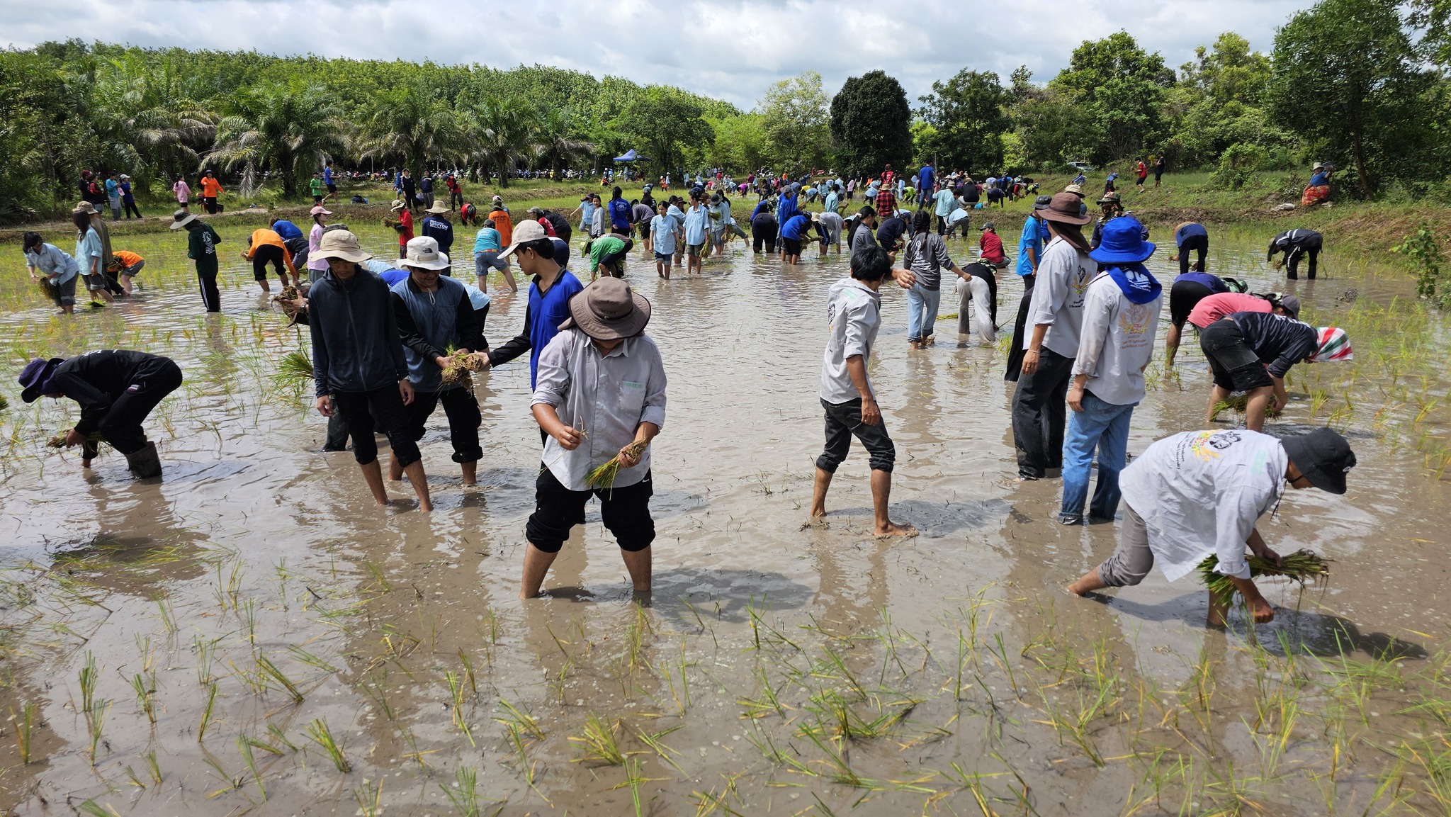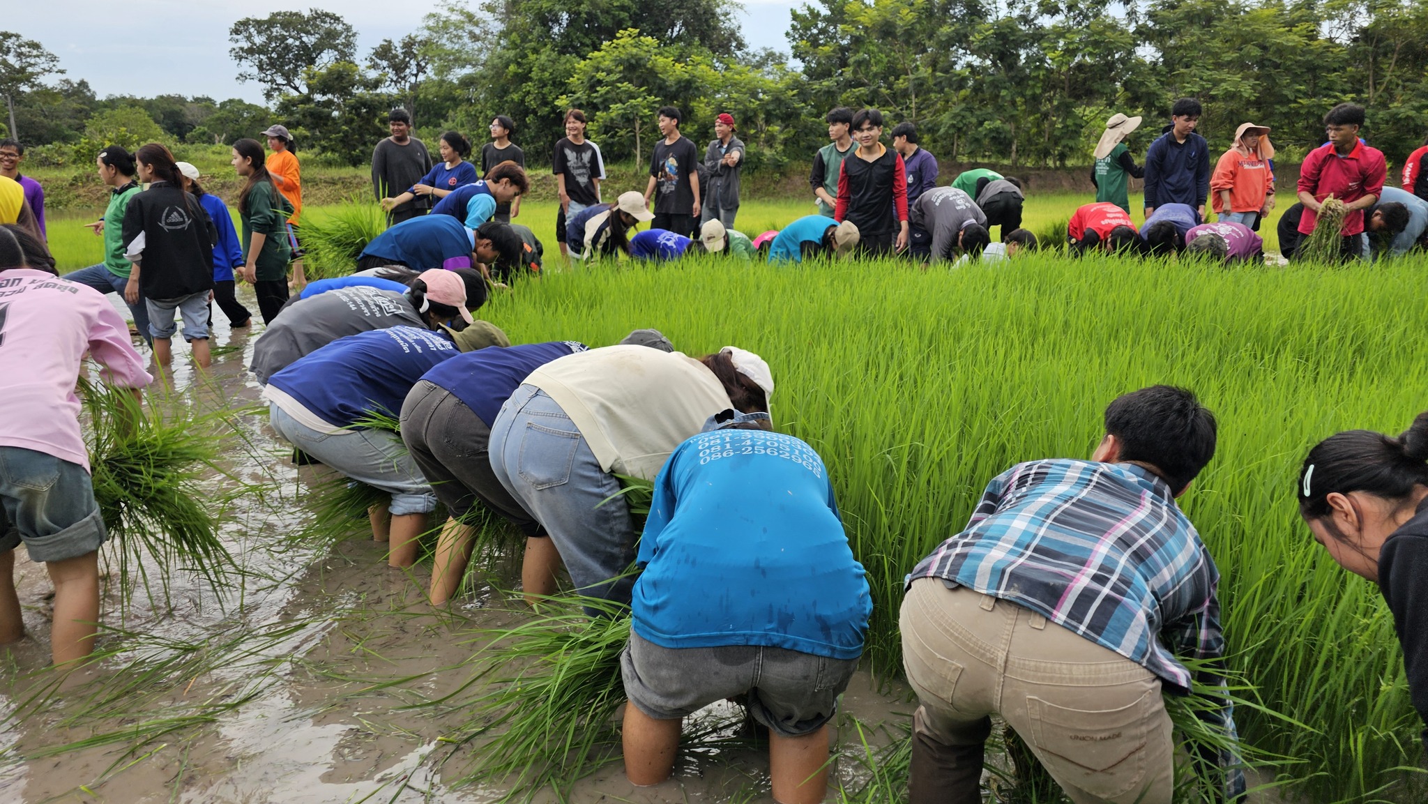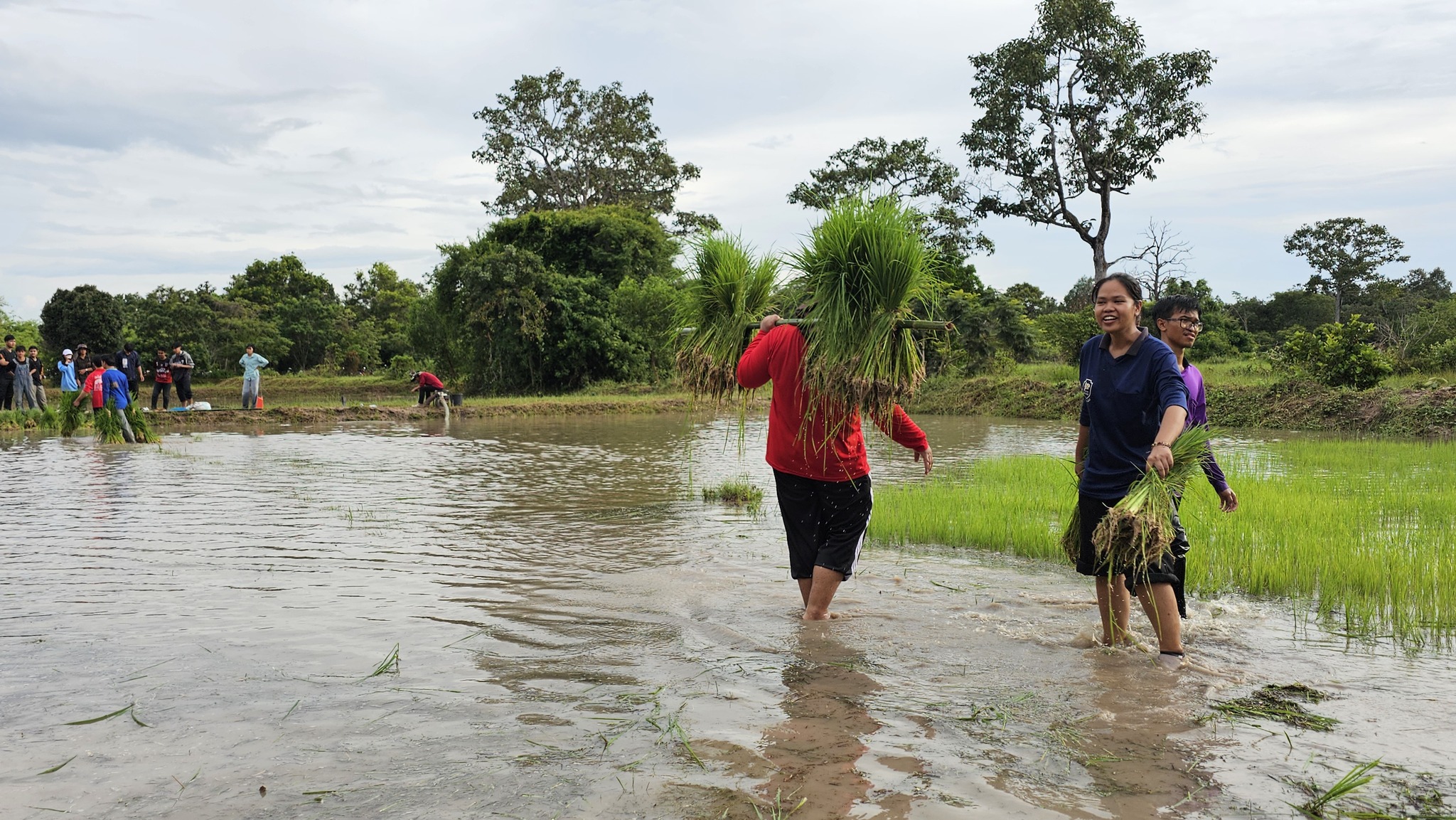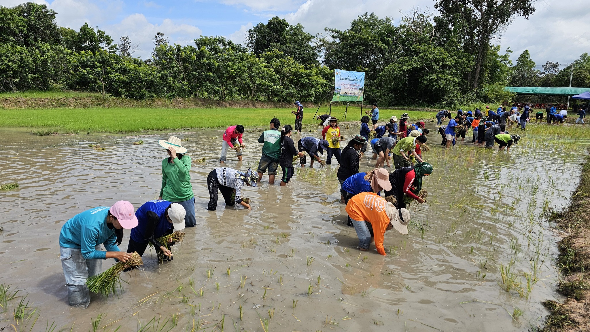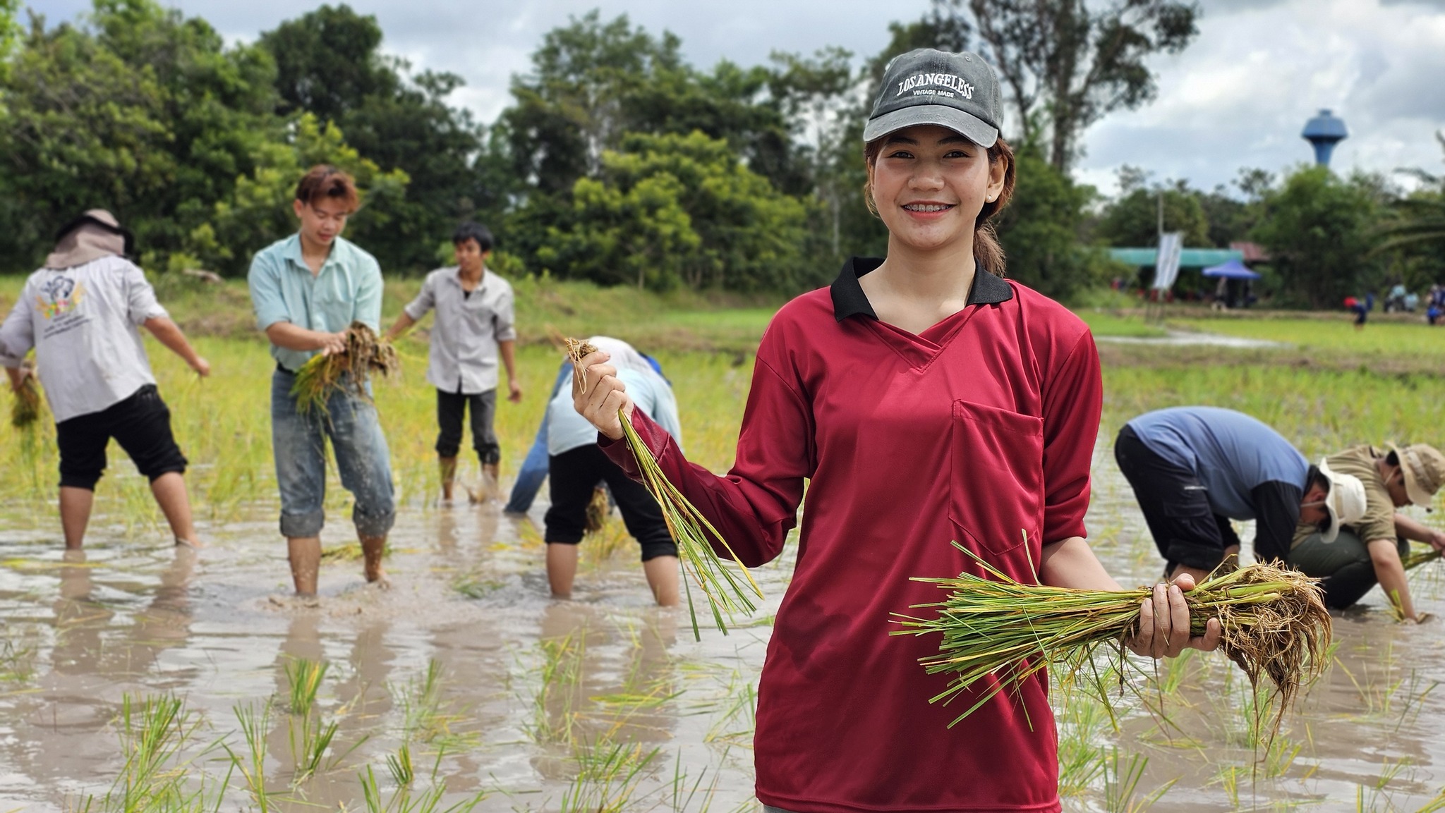รายละเอียดกิจกรรม : สโมสรนักศึกษาคณะเกษตรศาสตร์ จัดกิจกรรมต้อนรับน้องใหม่แบบสร้างสรรค์เชิงเกษตร ภายใต้โครงการมือเรียวรอเกี่ยวรวง (ระยะที่ 1 ดำนา) ประจำปีการศึกษา 2568 โดยมี ดร.นรินทร บุญพราหมณ์ คณบดีคณะเกษตรศาสตร์ เป็นประธาน ซึ่งมีอาจารย์ บุคลากร และนักศึกษา เข้าร่วมลงแขกปักดำนาจำนวน 300 คน ณ แปลงนาทดลอง (แปลงข้างสวนปาล์มน้ำมัน) คณะเกษตรศาสตร์ เมื่อวันที่ 19 กรกฎาคม 2568 ที่ผ่านมา