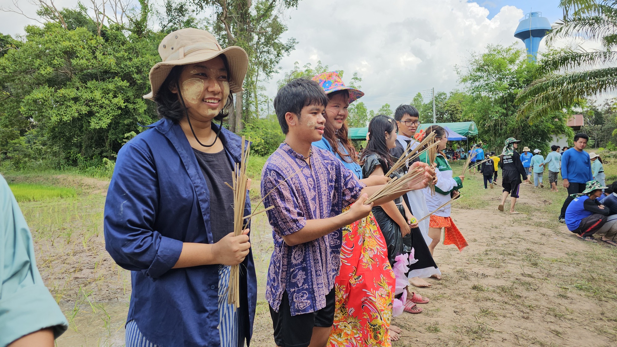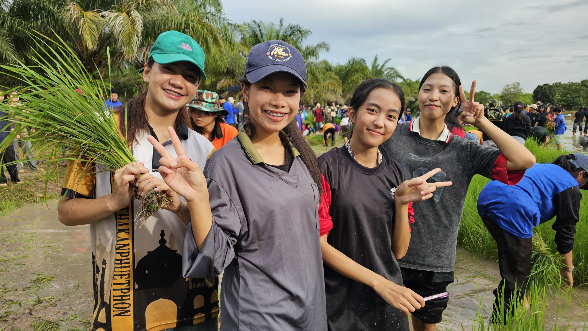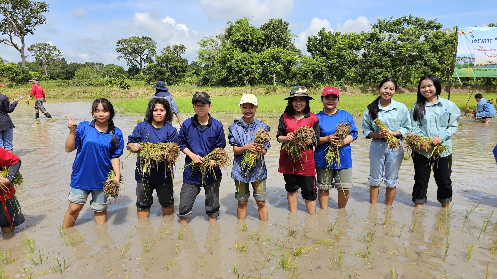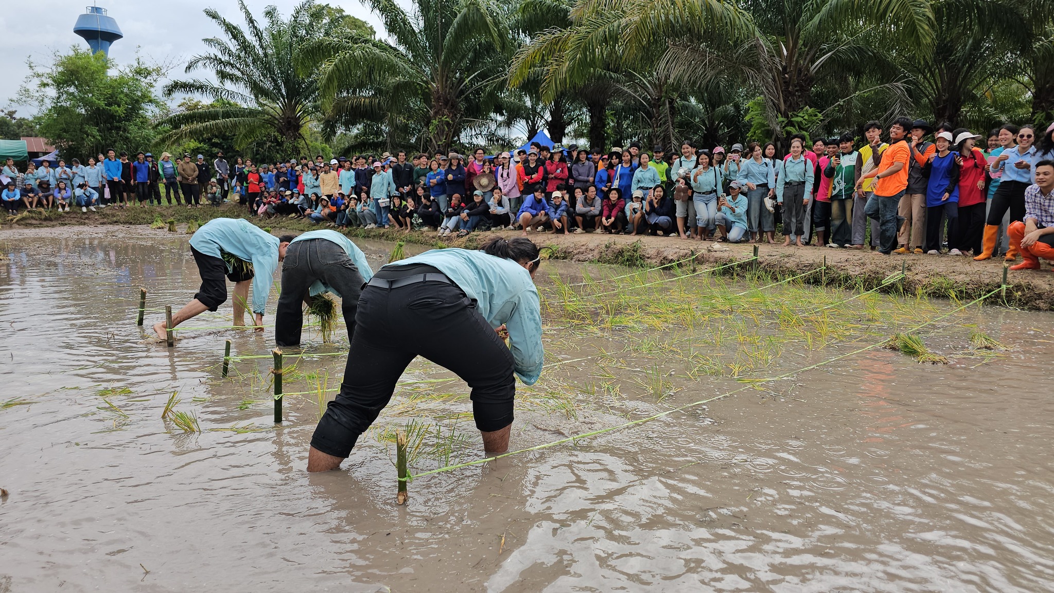 รายละเอียดกิจกรรม : สโมสรนักศึกษาคณะเกษตรศาสตร์ จัดกิจกรรมต้อนรับน้องใหม่แบบสร้างสรรค์เชิงเกษตร ภายใต้โครงการมือเรียวรอเกี่ยวรวง (ระยะที่ 1 ดำนา) ประจำปีการศึกษา 2568 โดยมี ดร.นรินทร บุญพราหมณ์ คณบดีคณะเกษตรศาสตร์ เป็นประธาน ซึ่งมีอาจารย์ บุคลากร และนักศึกษา เข้าร่วมลงแขกปักดำนาจำนวน 300 คน ณ แปลงนาทดลอง (แปลงข้างสวนปาล์มน้ำมัน) คณะเกษตรศาสตร์ เมื่อวันที่ 19 กรกฎาคม 2568 ที่ผ่านมา