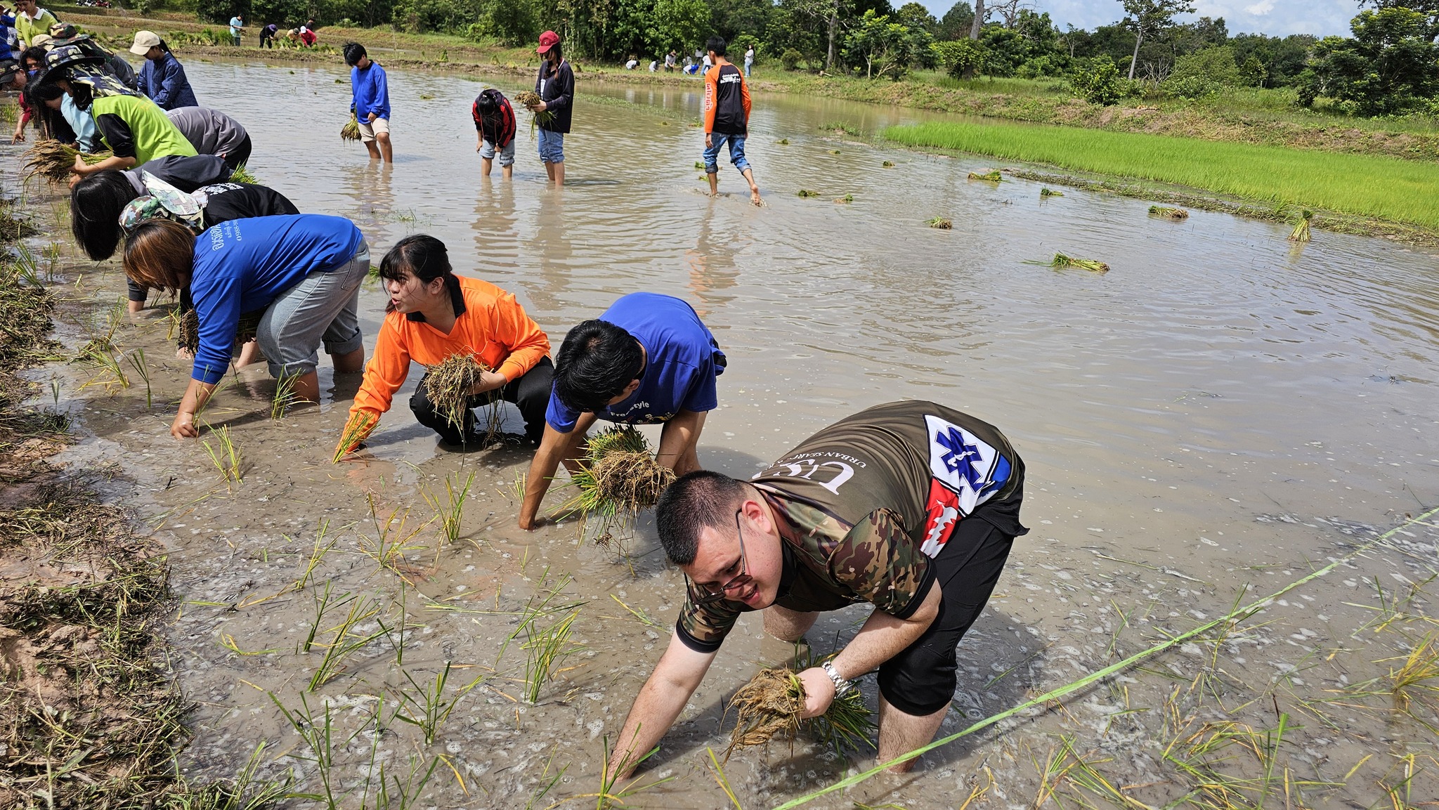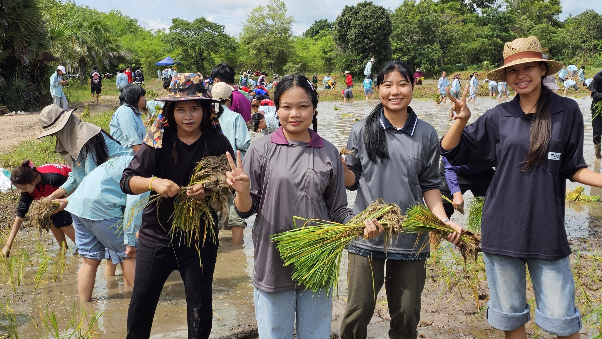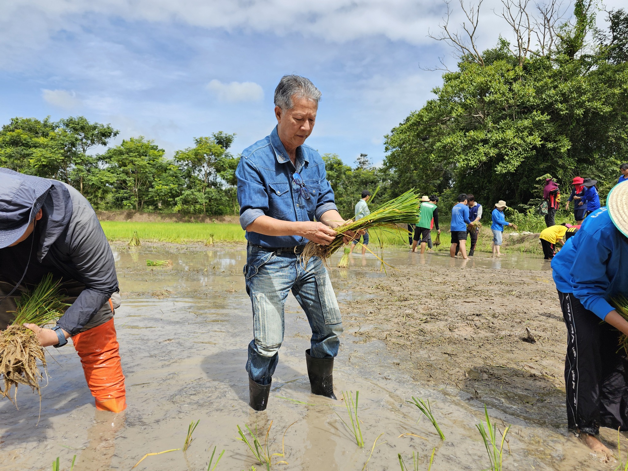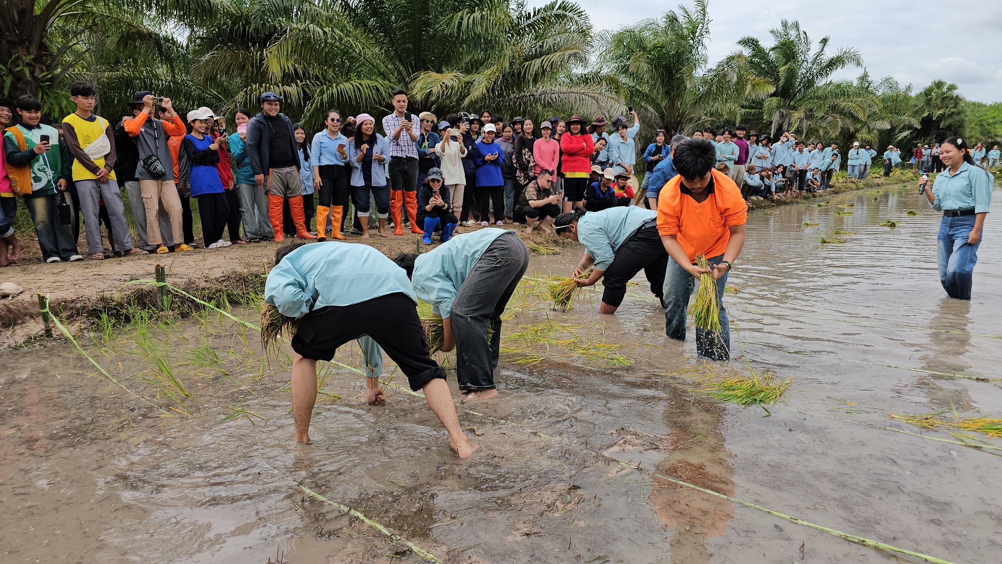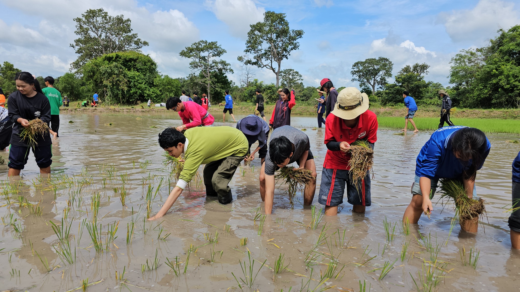 รายละเอียดกิจกรรม : สโมสรนักศึกษาคณะเกษตรศาสตร์ จัดกิจกรรมต้อนรับน้องใหม่แบบสร้างสรรค์เชิงเกษตร ภายใต้โครงการมือเรียวรอเกี่ยวรวง (ระยะที่ 1 ดำนา) ประจำปีการศึกษา 2568 โดยมี ดร.นรินทร บุญพราหมณ์ คณบดีคณะเกษตรศาสตร์ เป็นประธาน ซึ่งมีอาจารย์ บุคลากร และนักศึกษา เข้าร่วมลงแขกปักดำนาจำนวน 300 คน ณ แปลงนาทดลอง (แปลงข้างสวนปาล์มน้ำมัน) คณะเกษตรศาสตร์ เมื่อวันที่ 19 กรกฎาคม 2568 ที่ผ่านมา