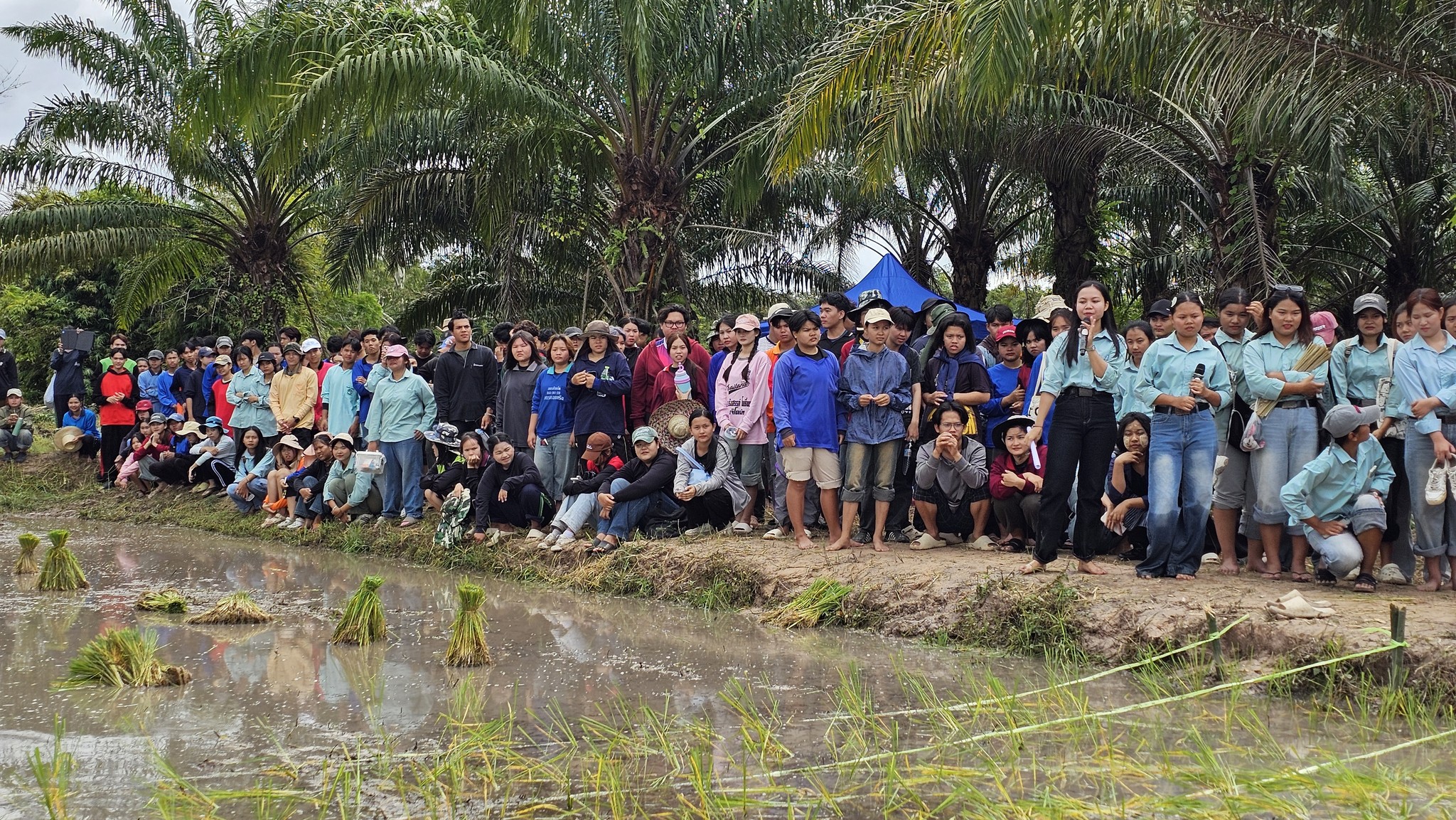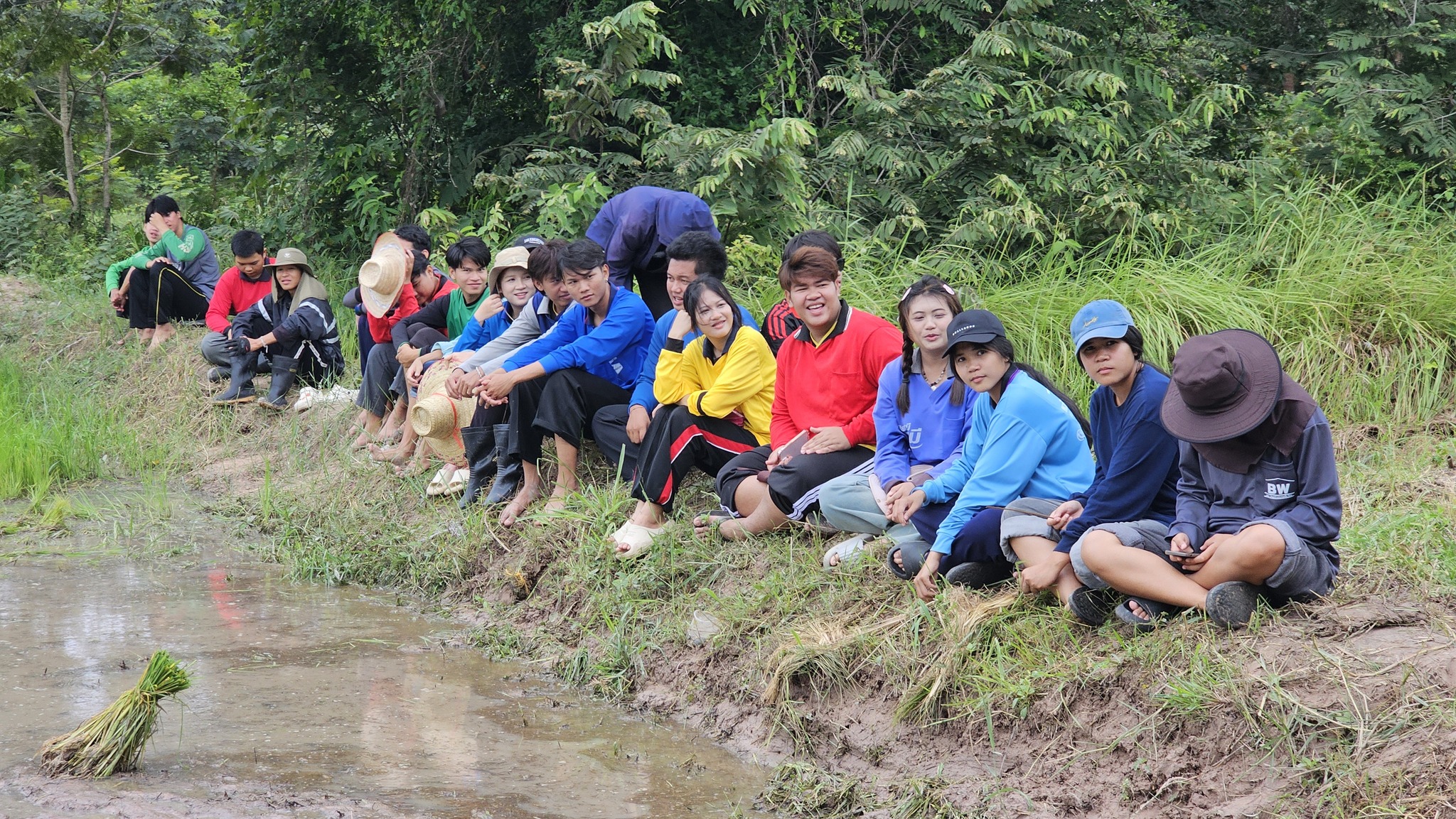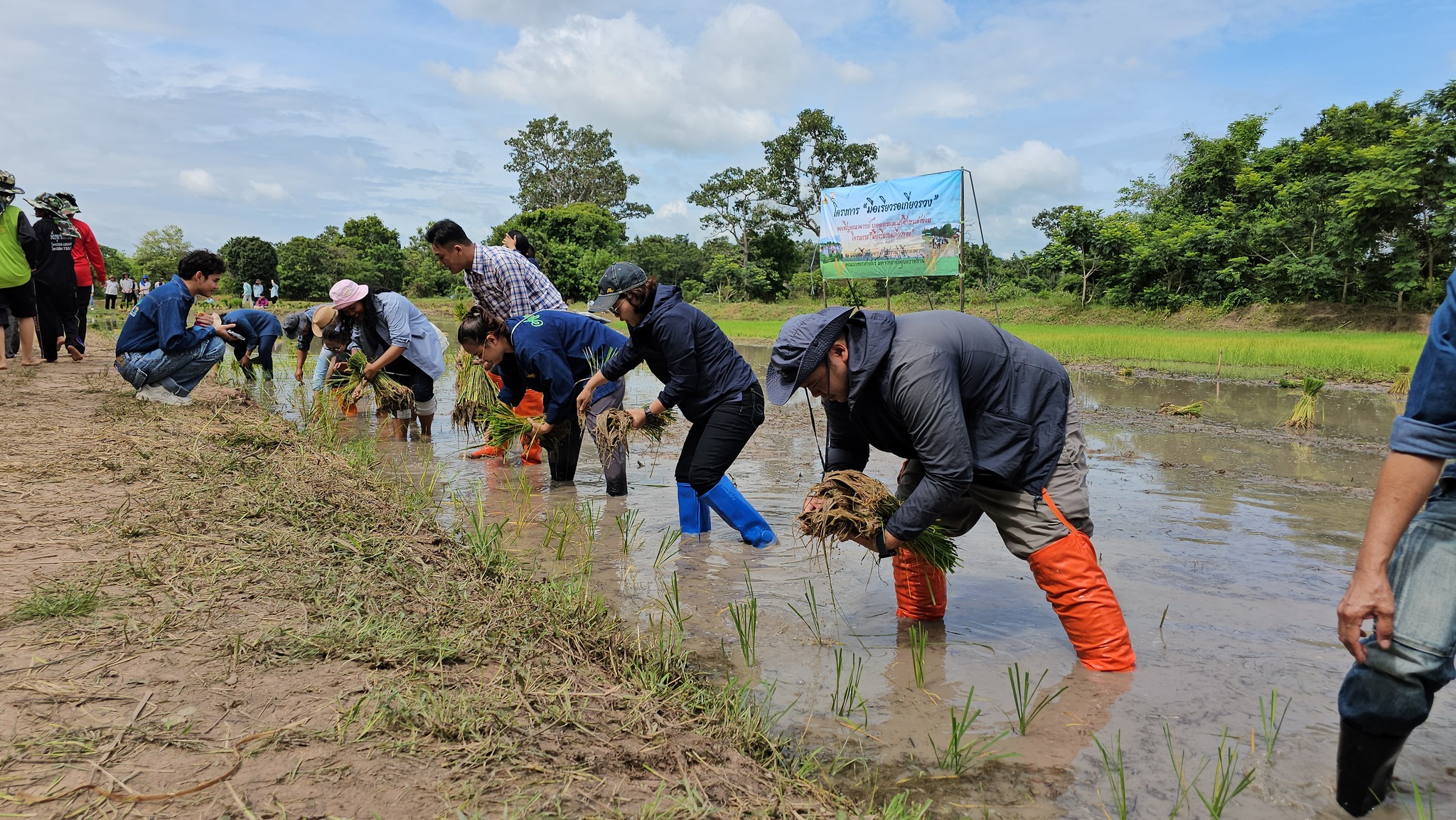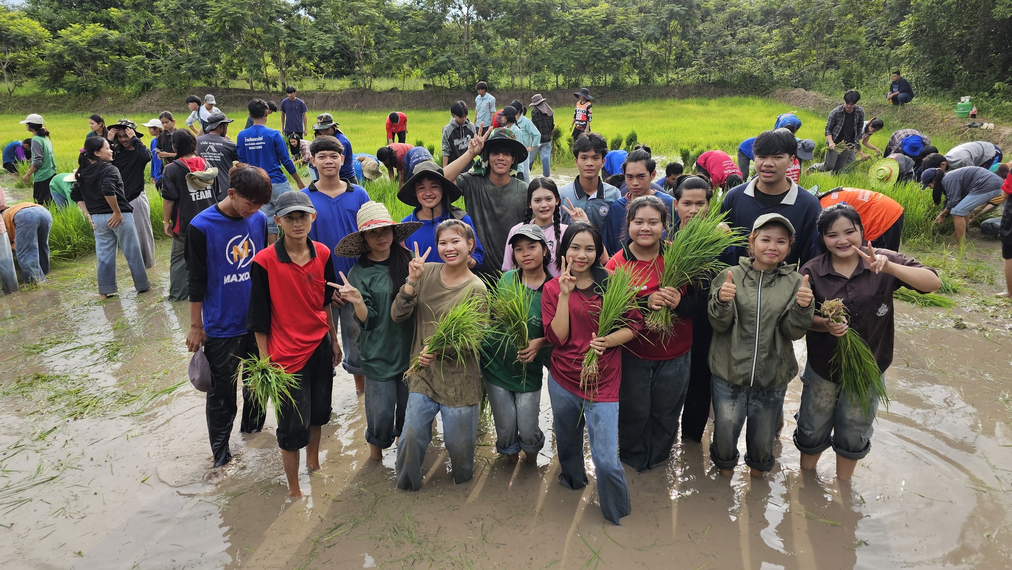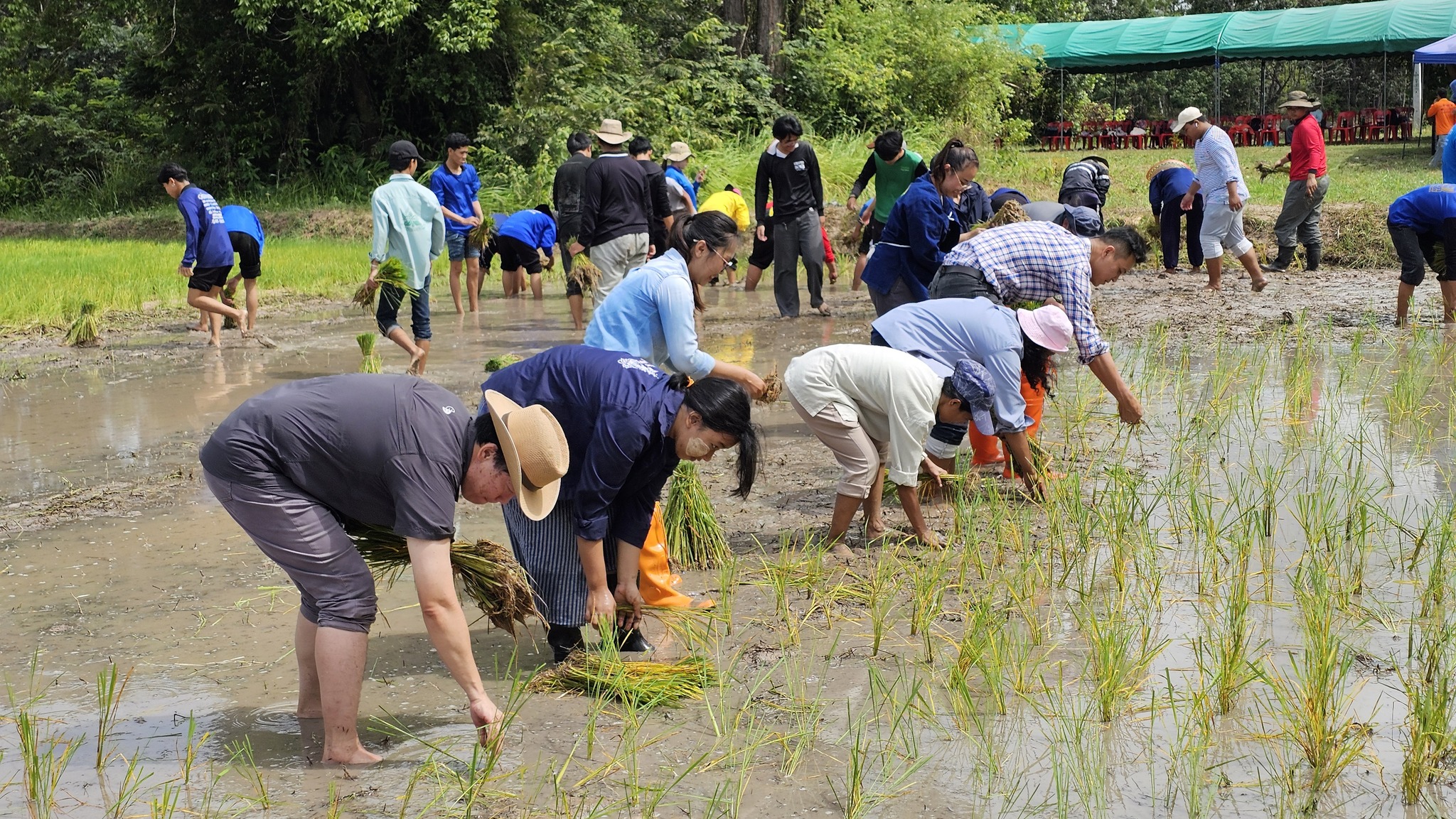 รายละเอียดกิจกรรม : สโมสรนักศึกษาคณะเกษตรศาสตร์ จัดกิจกรรมต้อนรับน้องใหม่แบบสร้างสรรค์เชิงเกษตร ภายใต้โครงการมือเรียวรอเกี่ยวรวง (ระยะที่ 1 ดำนา) ประจำปีการศึกษา 2568 โดยมี ดร.นรินทร บุญพราหมณ์ คณบดีคณะเกษตรศาสตร์ เป็นประธาน ซึ่งมีอาจารย์ บุคลากร และนักศึกษา เข้าร่วมลงแขกปักดำนาจำนวน 300 คน ณ แปลงนาทดลอง (แปลงข้างสวนปาล์มน้ำมัน) คณะเกษตรศาสตร์ เมื่อวันที่ 19 กรกฎาคม 2568 ที่ผ่านมา